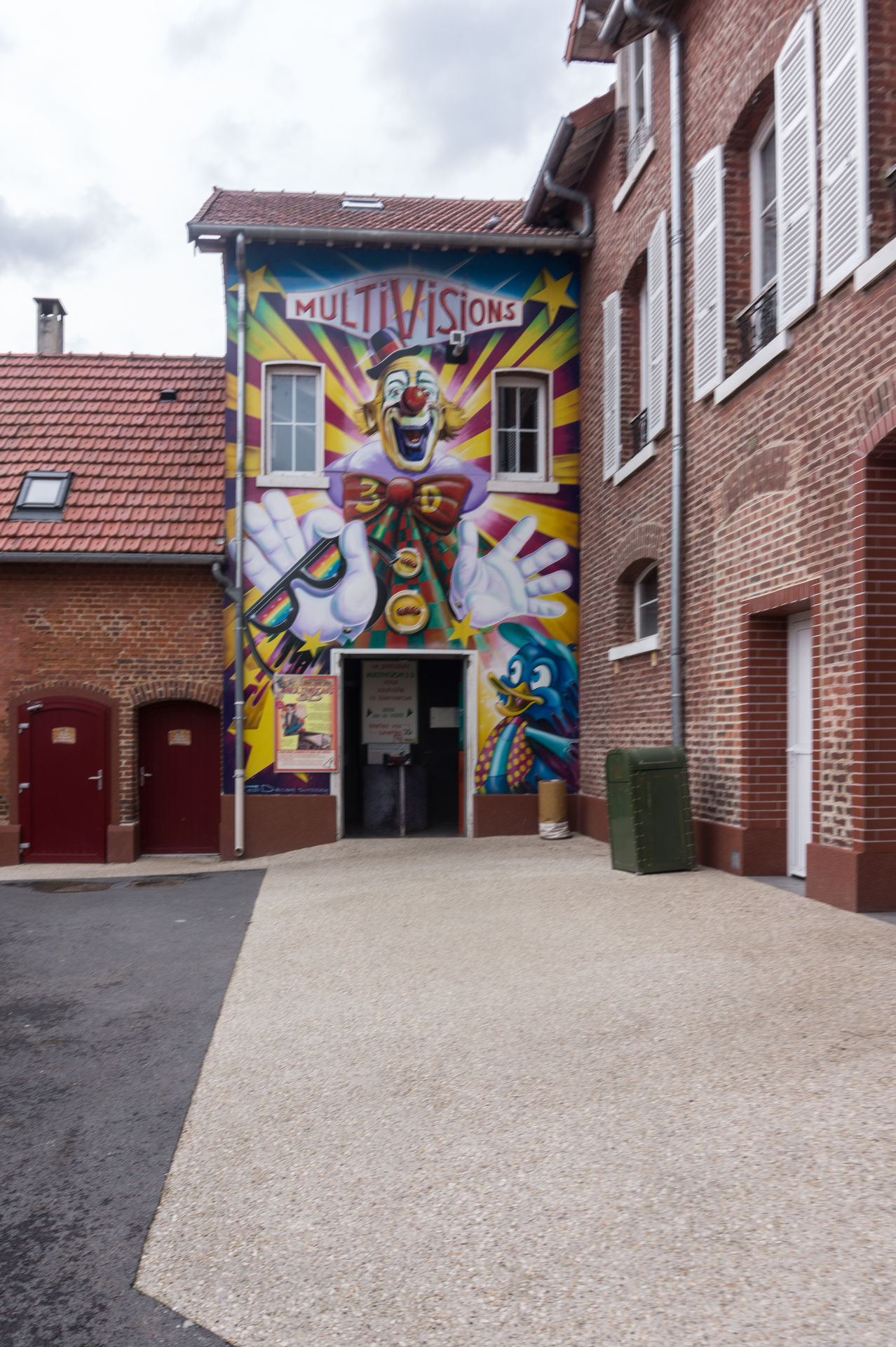 Vorbei am Riesenrad Grande Roue und den P'tits Lapins zieht es uns nun in den hinteren Bereich des Parks. In einem Anwesen und dessen Vorhof finden wir zahlreiche Laufgeschäfte, die Hauptgastronomie des Parks, sowie den Platz des Wellenfliegers Chaises Aériennes vor, der zum Zeitpunkt des Besuchs jedoch noch nicht aufgebaut war.
