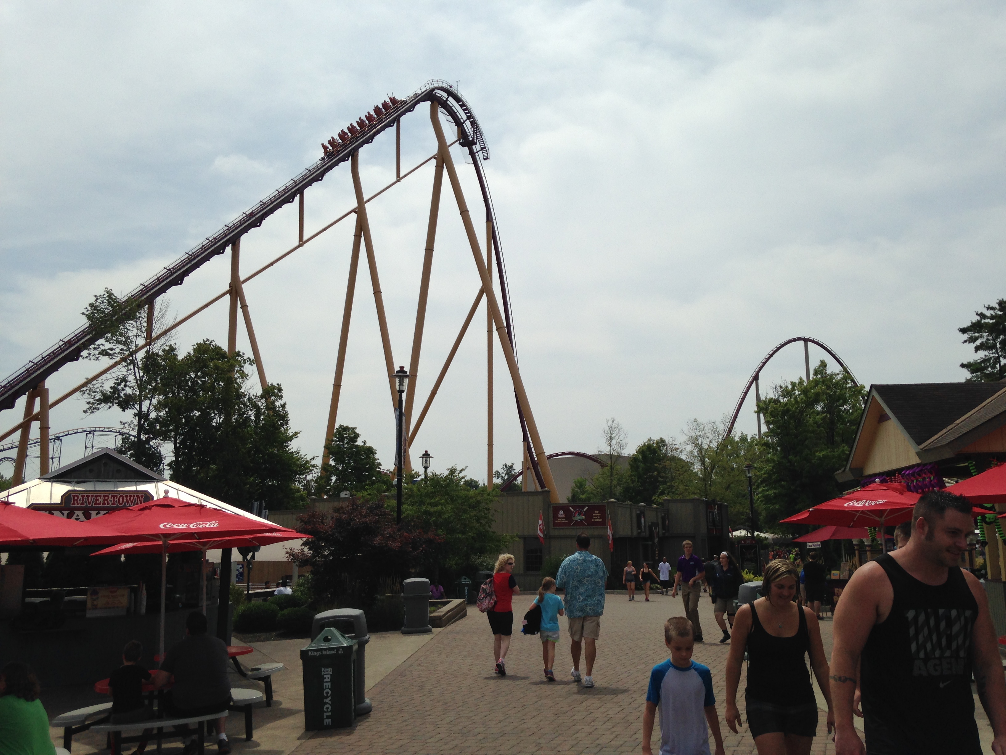 Der Park öffnete für Cedar Fair Saisonpass Kartenhalter eine halbe Stunde früher, für das normale Fußvolk um 10:00 Uhr. Keine Ahnung mehr, ob wir es zur Knoppers-Zeit geschafft hatten, aber der Park schien am heutigen Tage nicht leer zu bleiben. Bei unserem bisherigen Glück war das jedoch völlig in Ordnung und hielt sich insgesamt auch noch im Rahmen. Ansonsten wäre es nicht leicht geworden, 15 Achterbahnen zu fahren und mehrere Wiederholungsfahrten auf den Favoriten zu unternehmen.