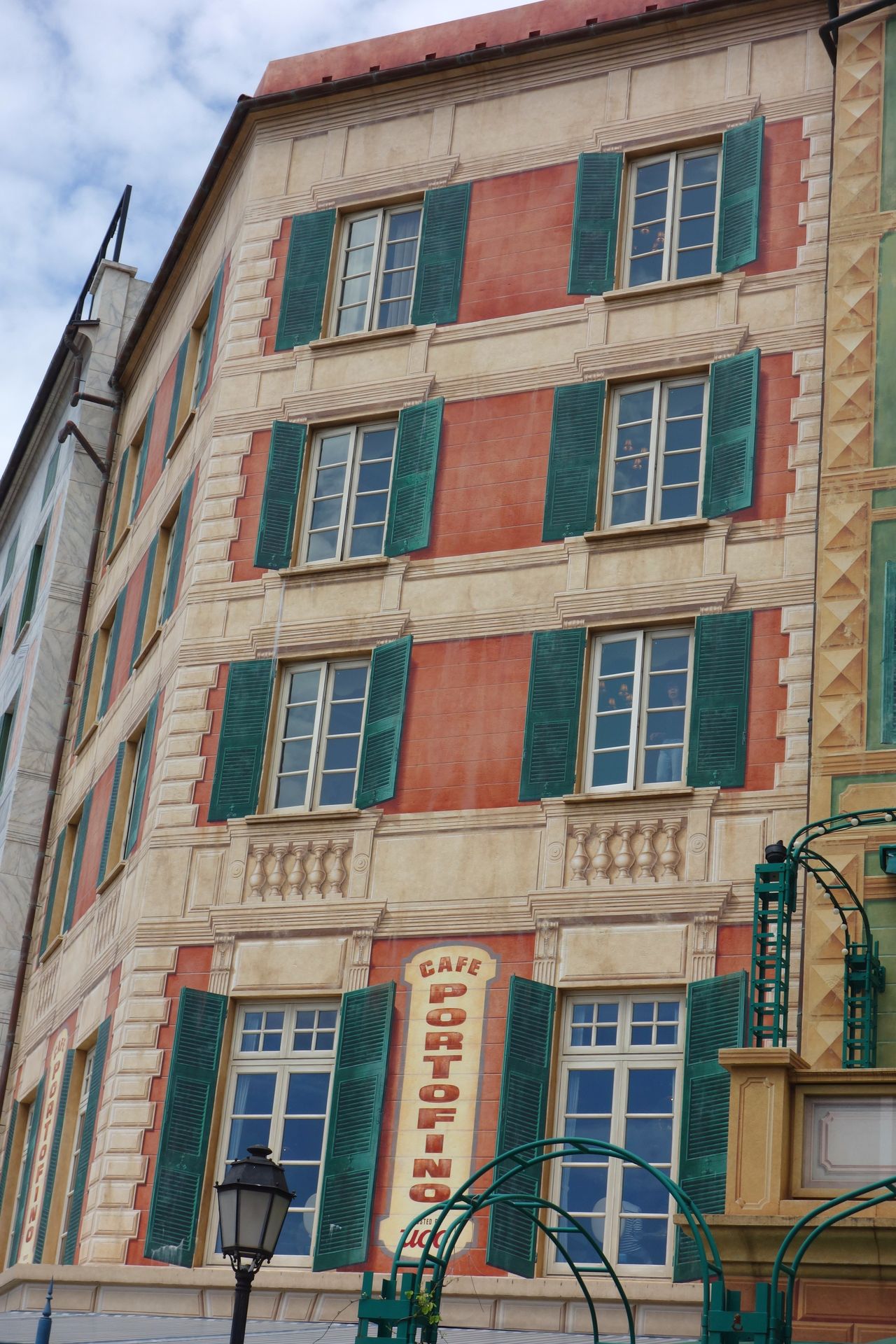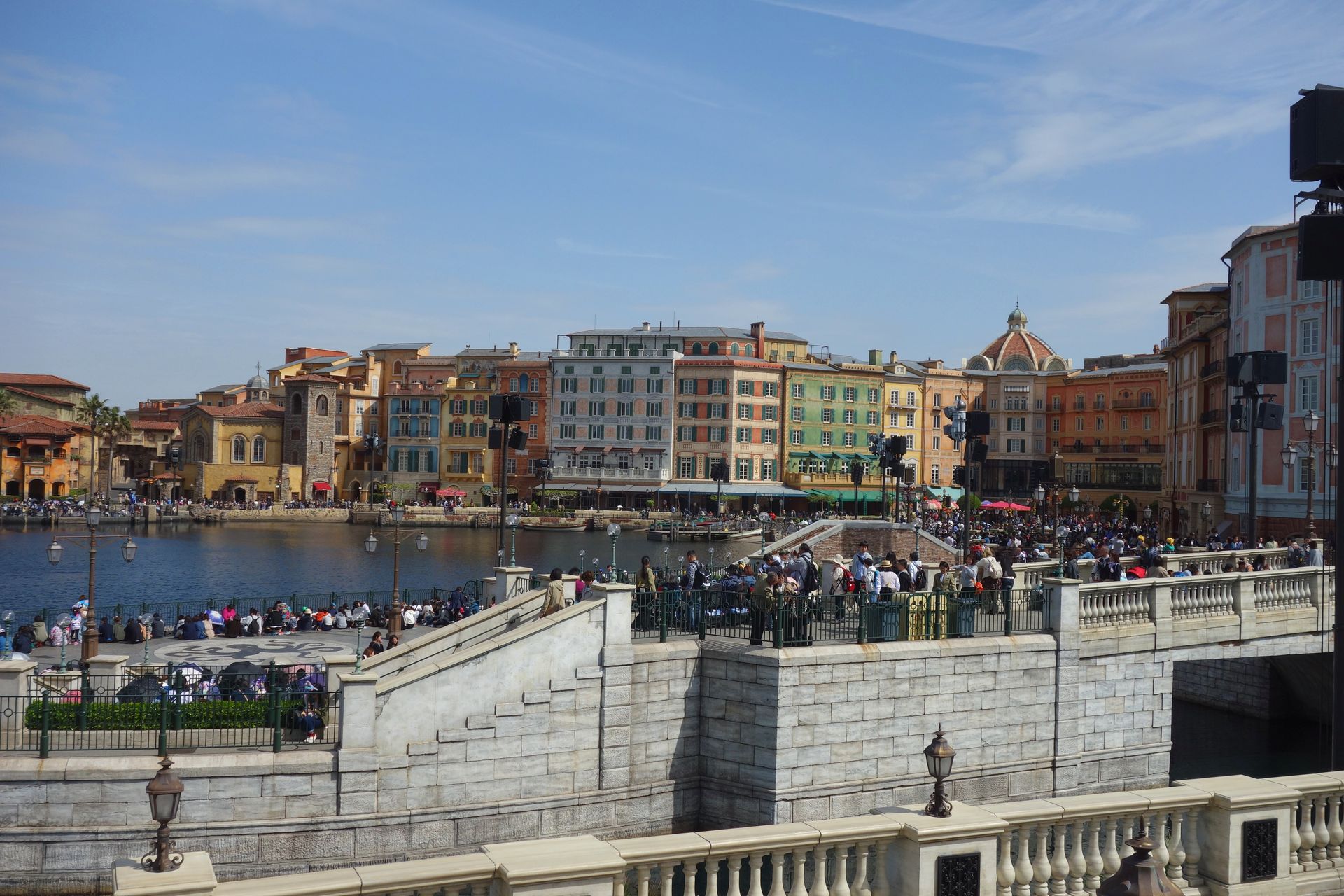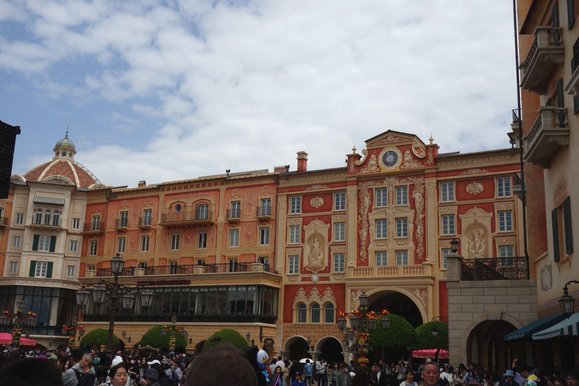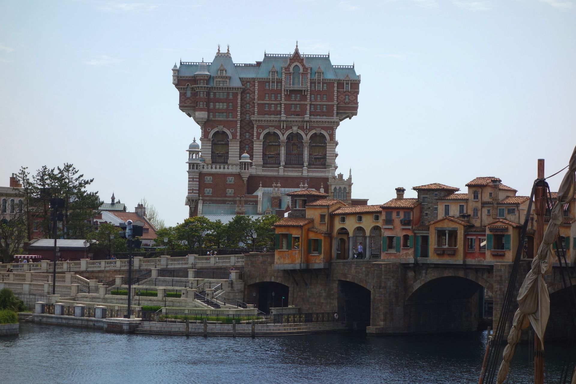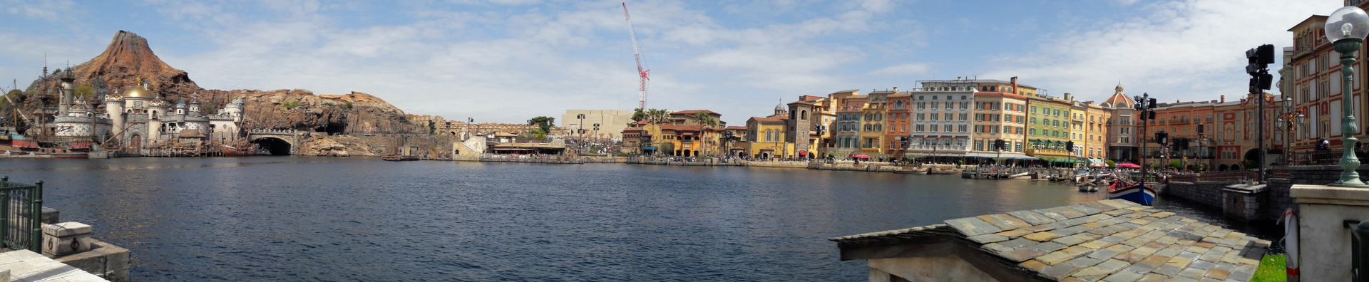 Nun sollte man noch klären, dass der Name DisneySea natürlich nicht von ungefähr kommt. Der Park ist nämlich durchzogen von einer breiten Flusslandschaft, sodass man sich ständig in der Nähe des Wassers aufhält. Entsprechend werden die einzelnen Themenbereiche als Häfen bezeichnet. Betritt man den Park, steht man direkt im Mediterranean Harbor, welcher eine italienischen Hafenstadt darstellt. Die in Richtung Plaza beziehungsweise Eingangsbereich gerichteten Zimmer des Hotels sind natürlich die günstigsten - aber trotzdem beileibe nicht billig. Diese Seite ist mit toskanischen Fassaden versehen.