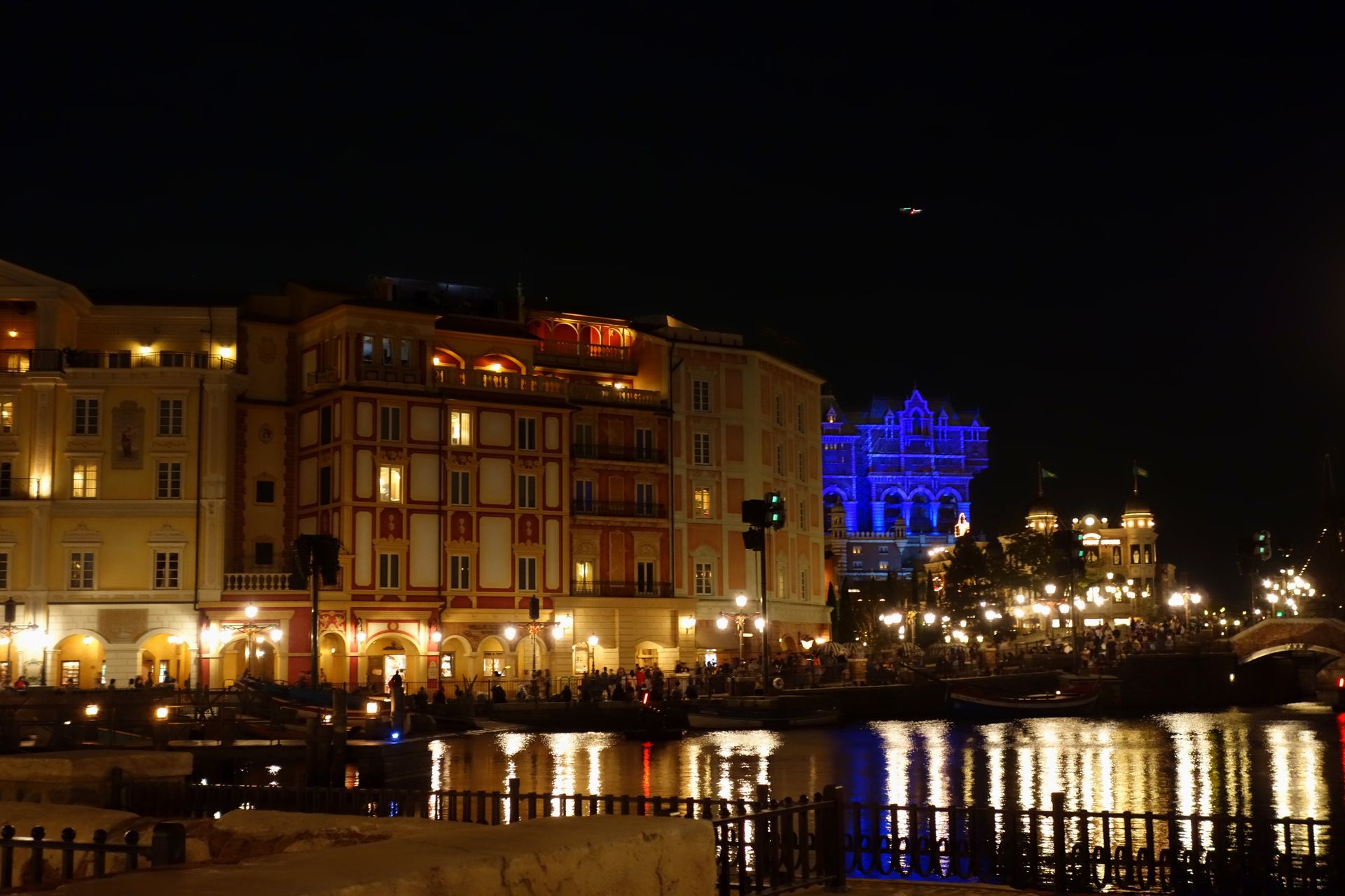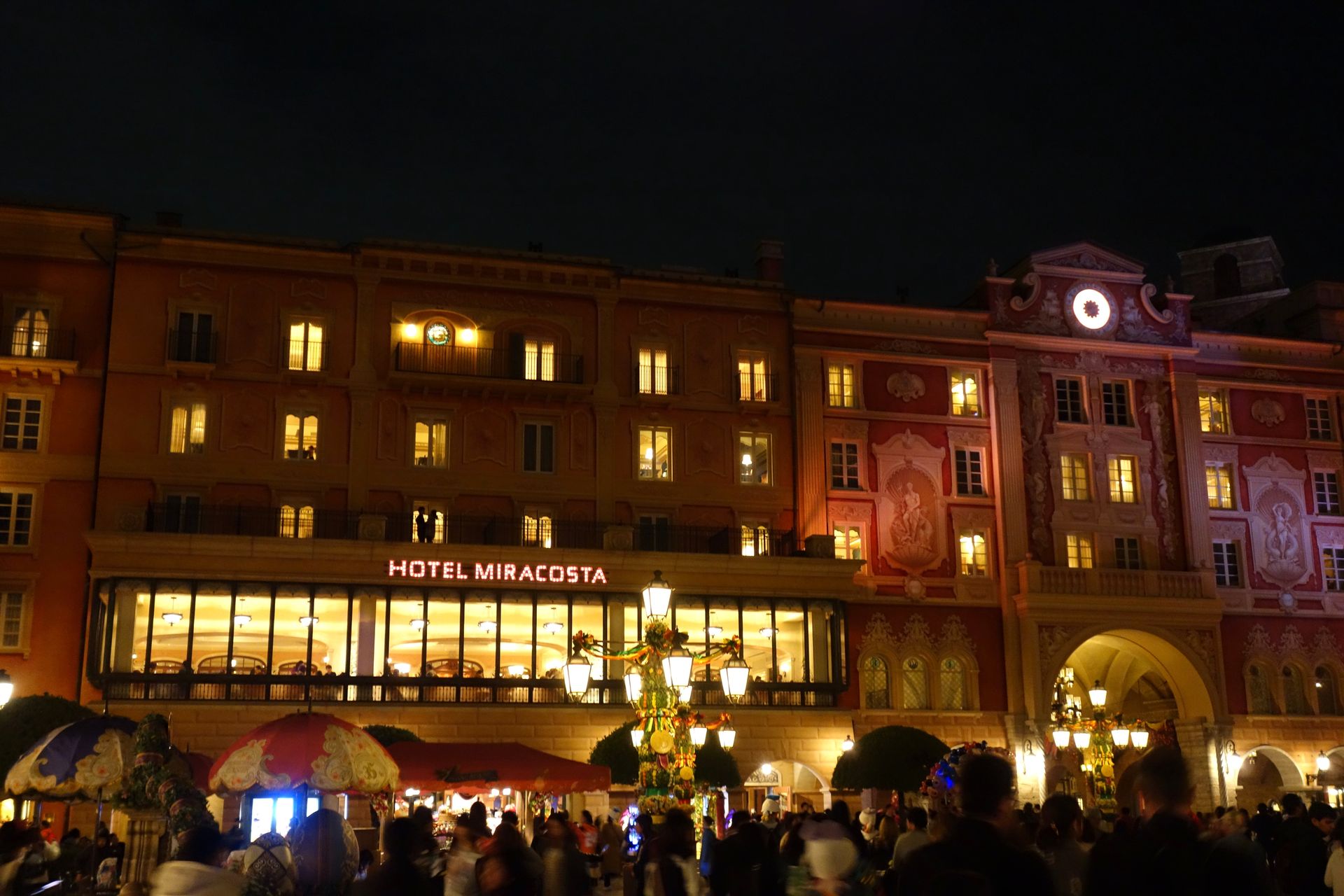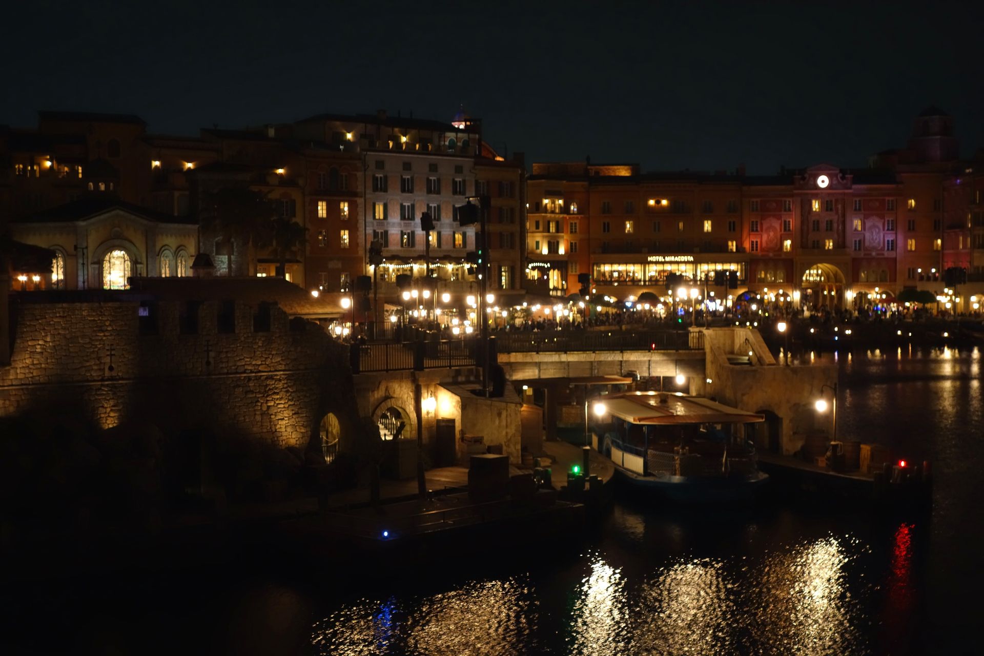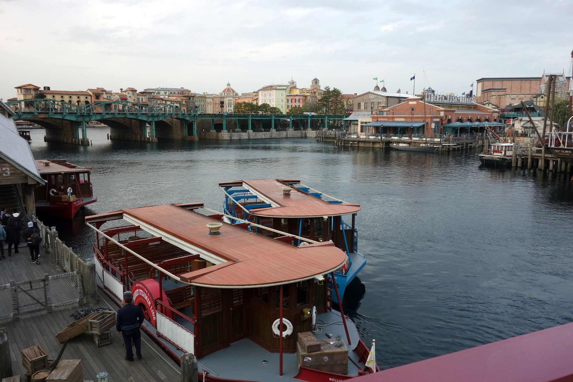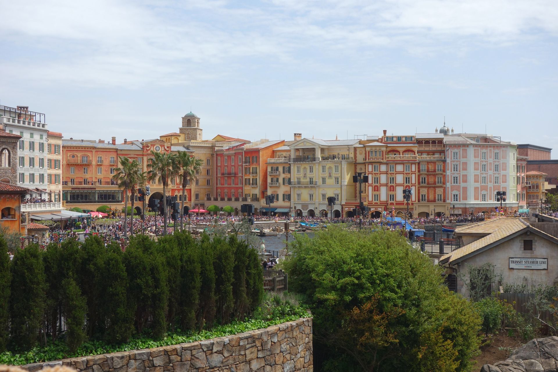 Nun sollte man noch klären, dass der Name DisneySea natürlich nicht von ungefähr kommt. Der Park ist nämlich durchzogen von einer breiten Flusslandschaft, sodass man sich ständig in der Nähe des Wassers aufhält. Entsprechend werden die einzelnen Themenbereiche als Häfen bezeichnet. Betritt man den Park, steht man direkt im Mediterranean Harbor, welcher eine italienischen Hafenstadt darstellt. Die in Richtung Plaza beziehungsweise Eingangsbereich gerichteten Zimmer des Hotels sind natürlich die günstigsten - aber trotzdem beileibe nicht billig. Diese Seite ist mit toskanischen Fassaden versehen.