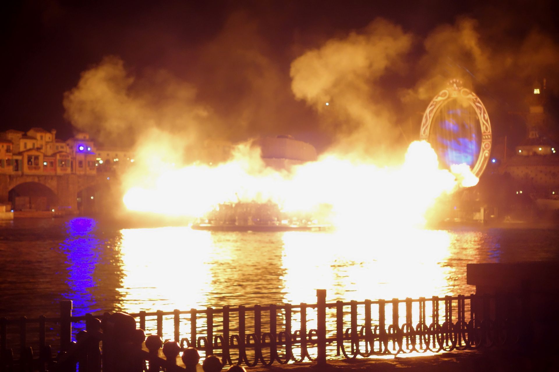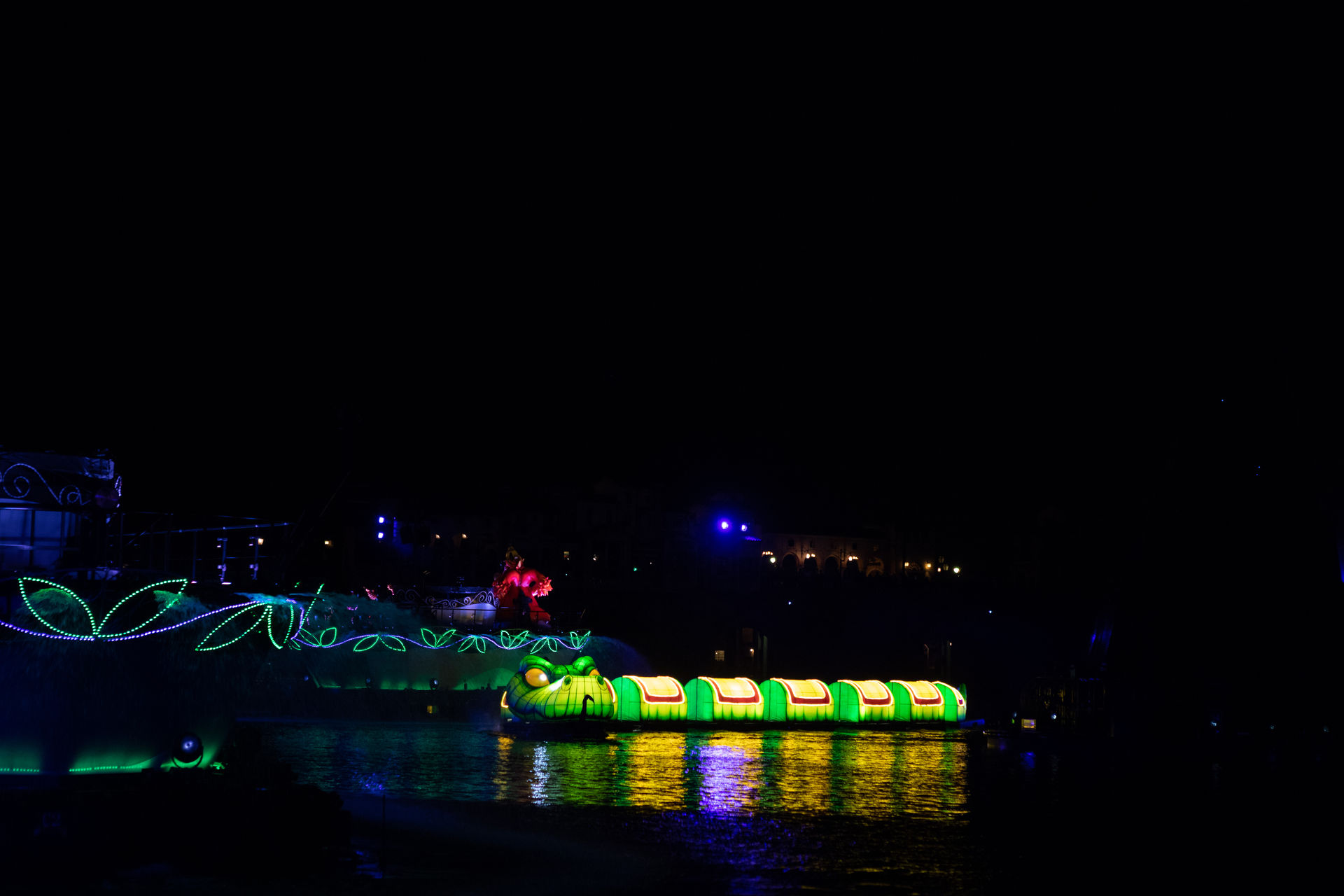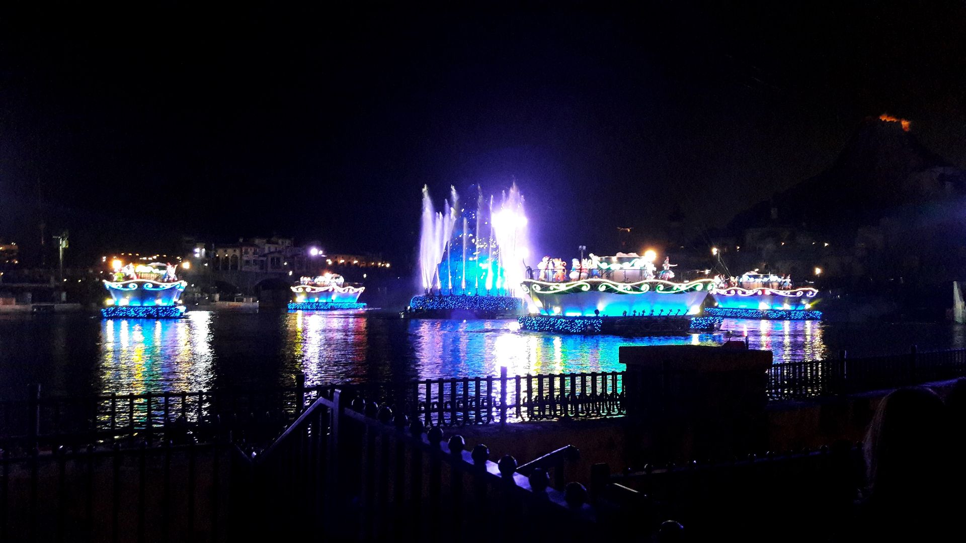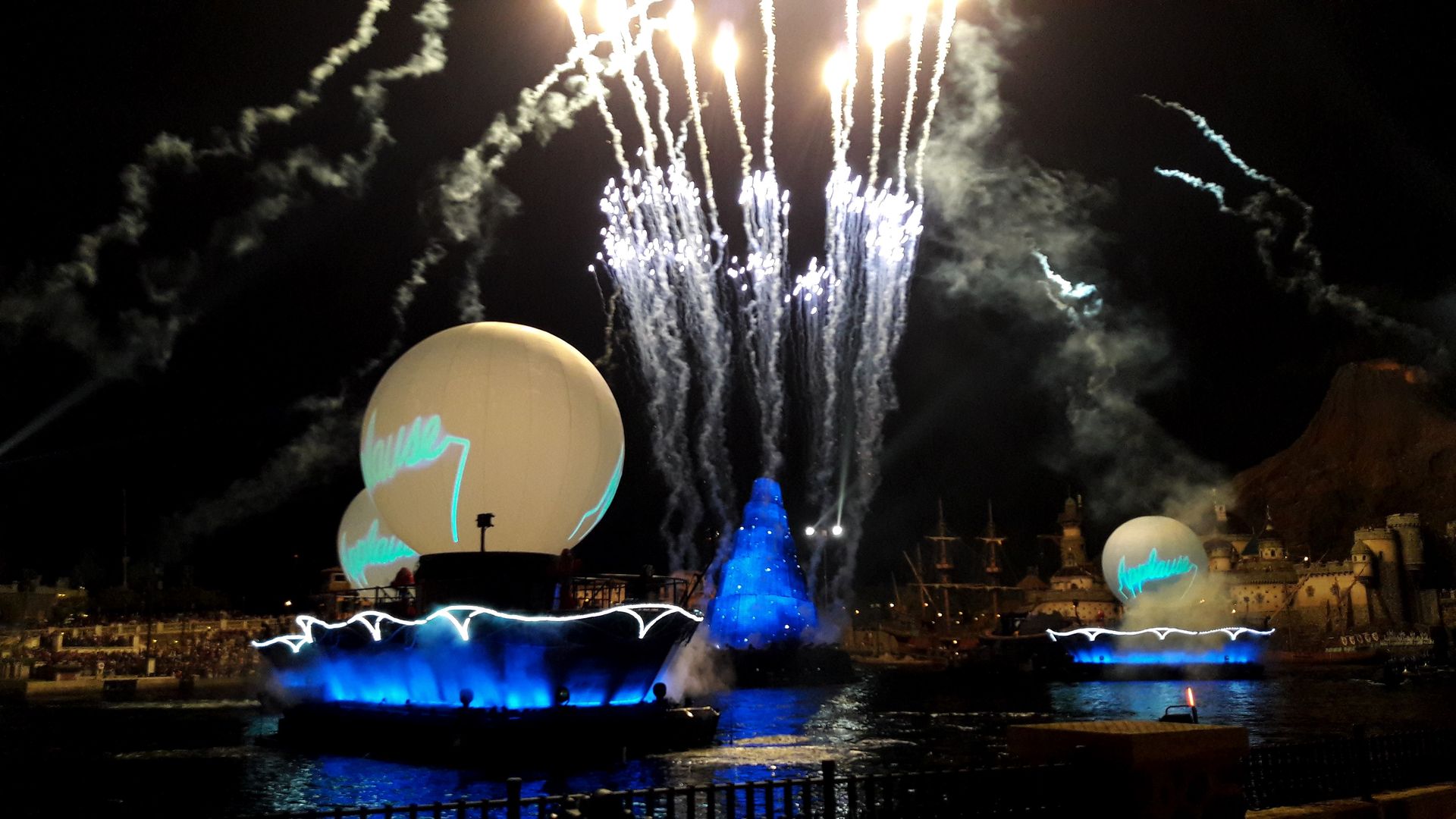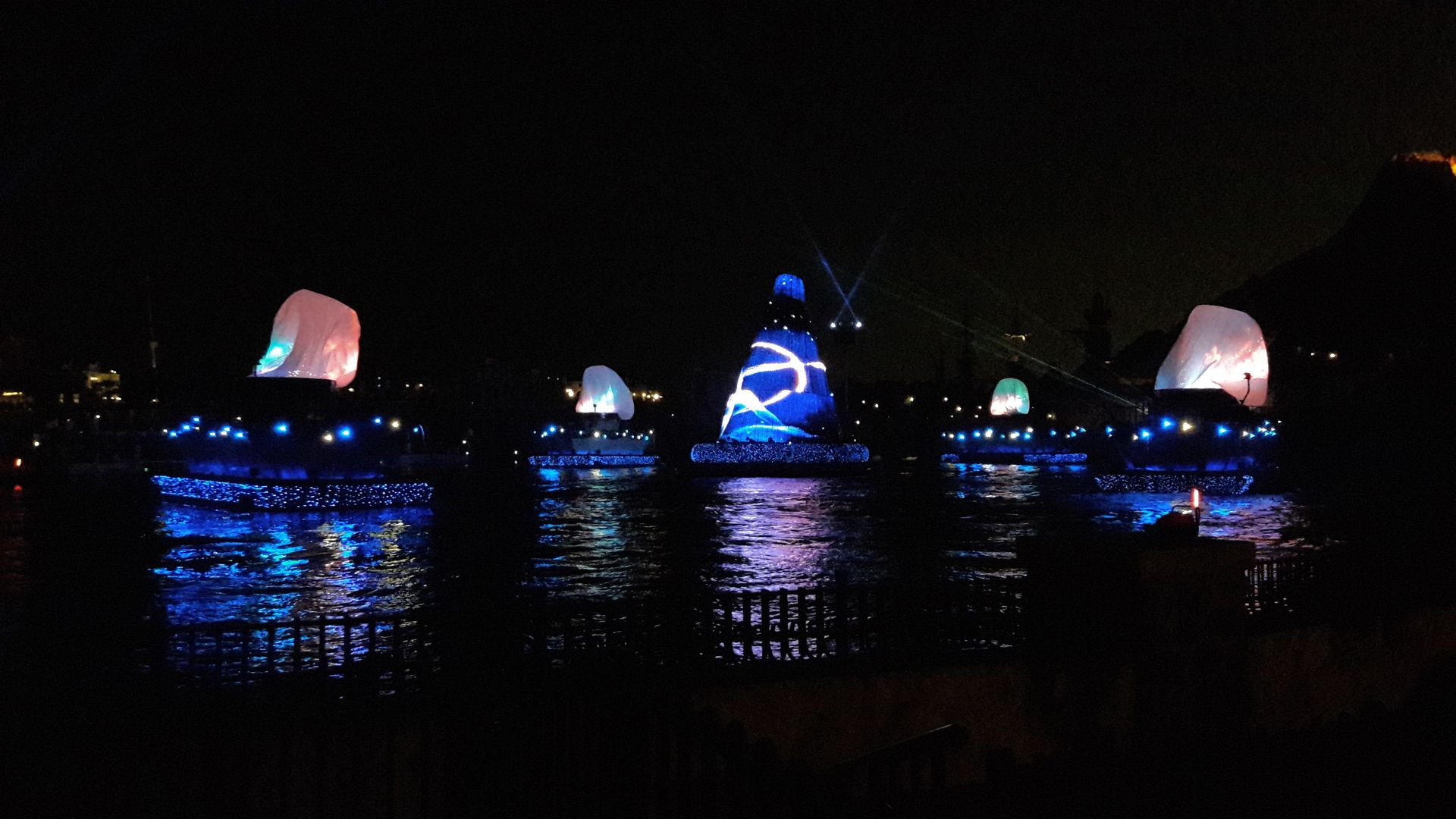 Danach wird es wieder freundlicher mit fetziger Musik, tanzenden Disney-Charakteren auf den Booten und diversen Feuerwerkskörpern.