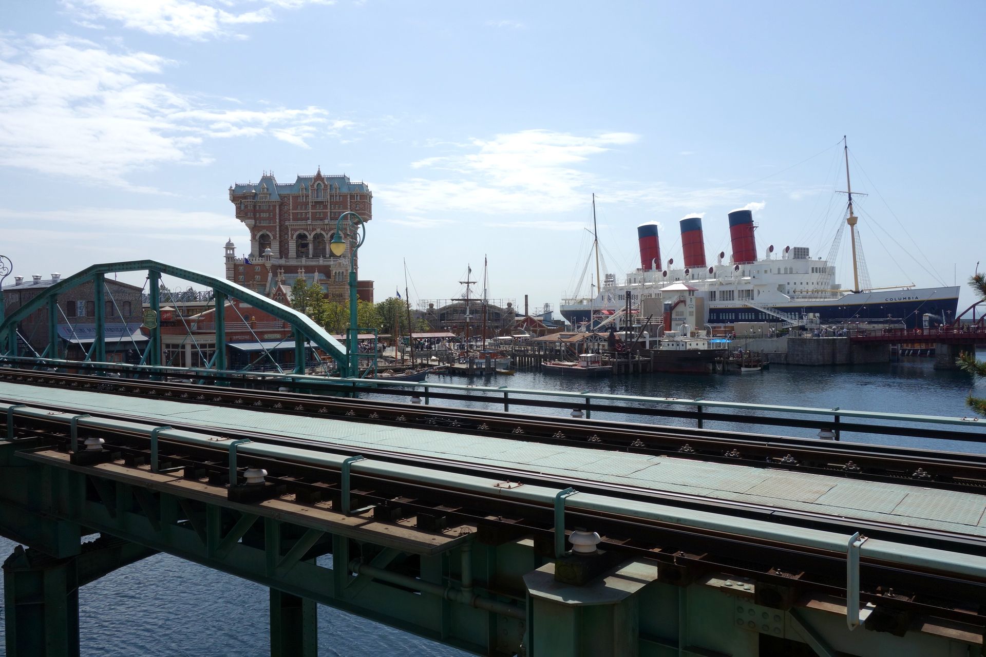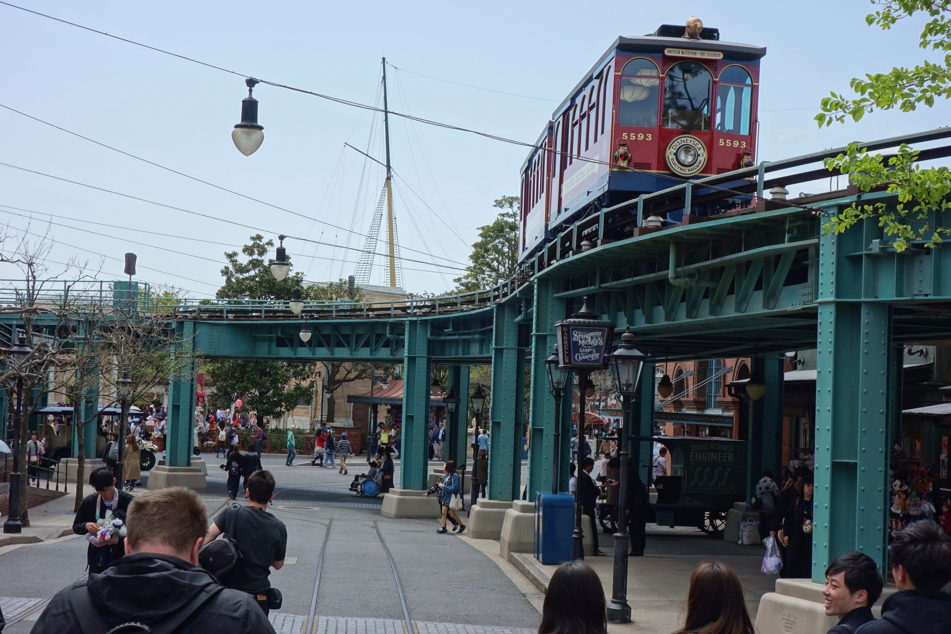 Wesentlich besser passt die DisneySea Electric Railway, eine Hochbahn mit Station mitten im New York Harbor.