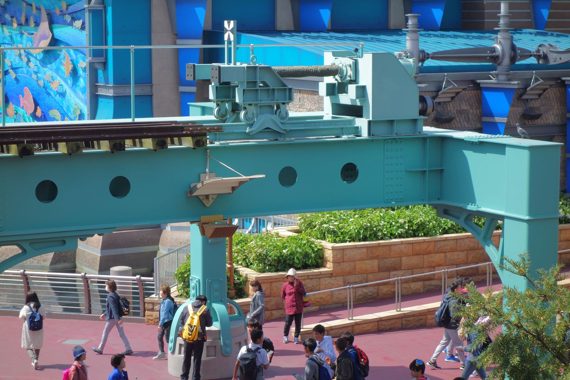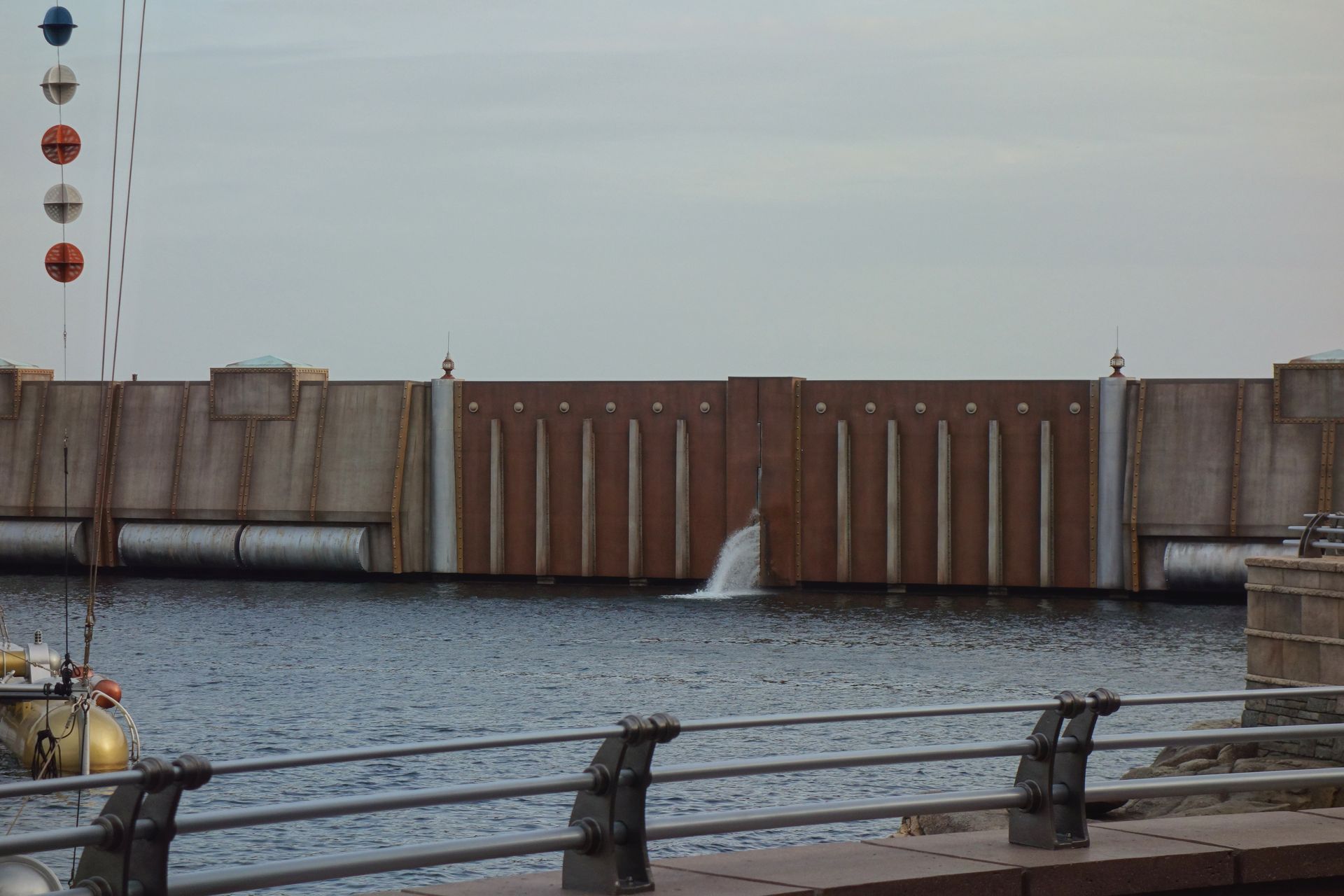 Keine Angst, DisneySea säuft nicht ab. Die Tokyo Bay liegt ein gutes Stück tiefer und hinter dem Damm verlaufen noch Straße und Monorail. Aber ein cooles Detail.