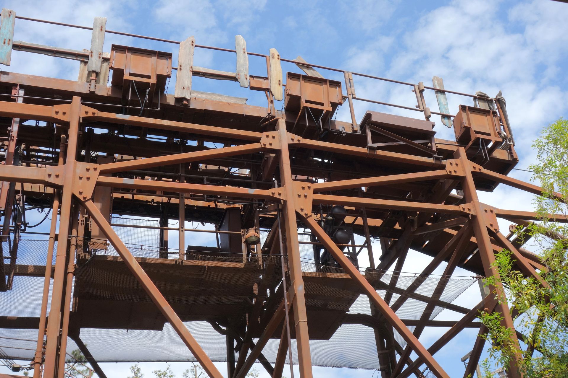 Tatsächlich konnten wir morgens direkt bis zu den Aufzügen durchlaufen, wir mussten nur kurz warten, bis man uns einem der vier Terravator zuteilte. Mit perfekt abgestimmten Licht- und Soundeffekten wird die rasante Fahrt ins Innere der Erde simuliert. Ich hätte mir höchstens noch eine etwas mehr wackelnde Kabine gewünscht, für das angegebene Tempo und die doch eher grobe Technik war mir das etwas zu smooth. Immerhin geht es 440 nautische Fäden (etwas über 800 Meter) in die Tiefe bei einer Geschwindigkeit von 14,5 nautischen Fäden pro Sekunde (etwa 26,5 Meter pro Sekunde oder gut 95 km/h). Und ja, die "Fahrtdauer" passt natürlich zu diesen Angaben. In Wirklichkeit sind die geothermisch betriebenen Terravator natürlich stinknormale Aufzüge und die Base Station befindet sich auch nicht fast einen Kilometer unter der Erdoberfläche, sondern tatsächlich oberhalb des bisherigen Wartebereichs. Dass man eigentlich nach oben fährt, merkt man aber wie gesagt überhaupt nicht, die Illusion ist nahezu perfekt. Die Basisstation besteht aus einer langen Rampe, die sich um diverse große Pumpen, Transformatoren und dergleichen herum zur Einstiegsplattform des Darkrides windet.