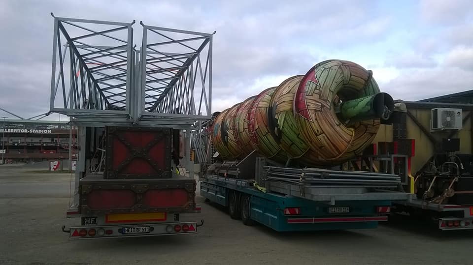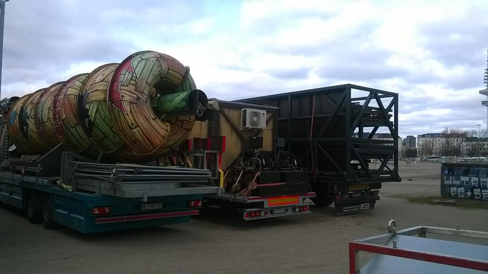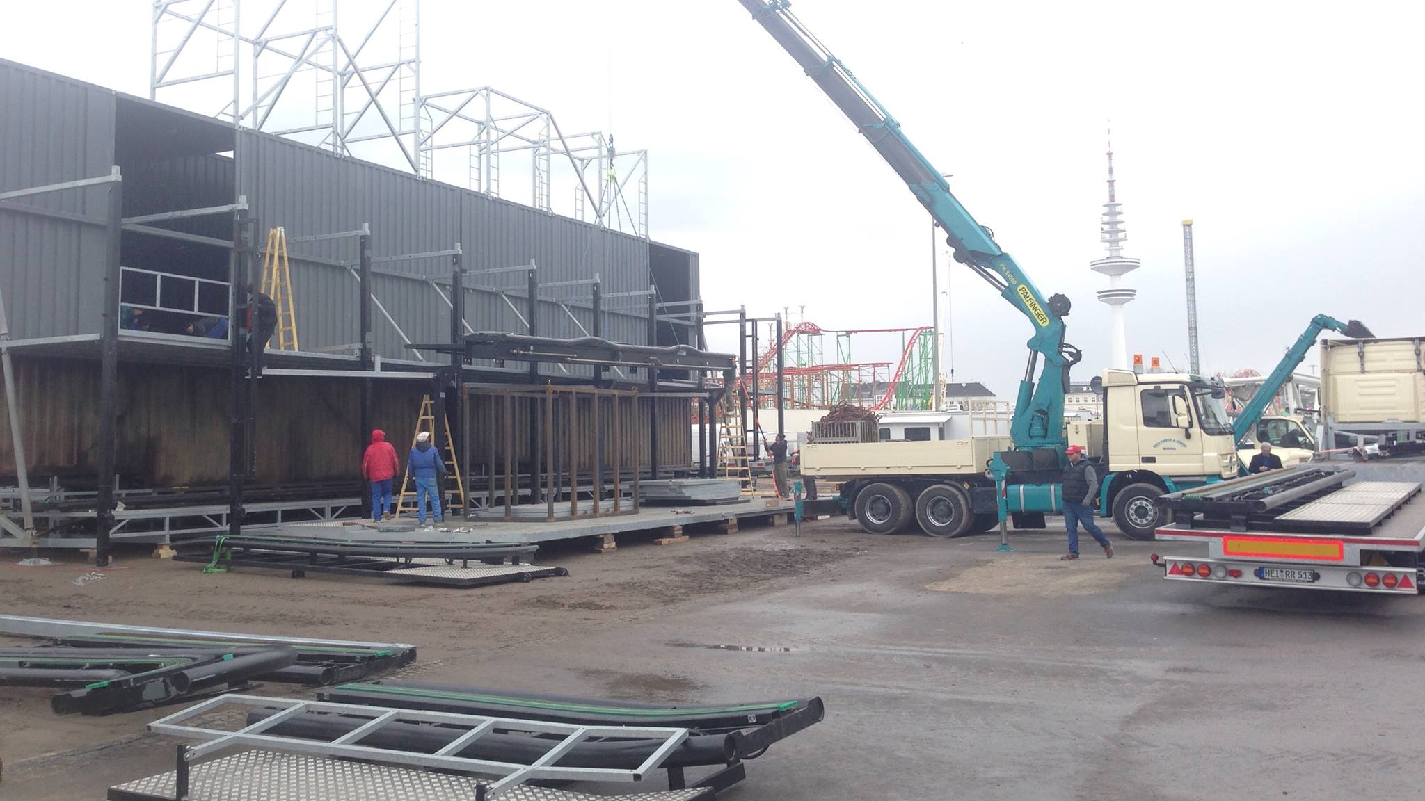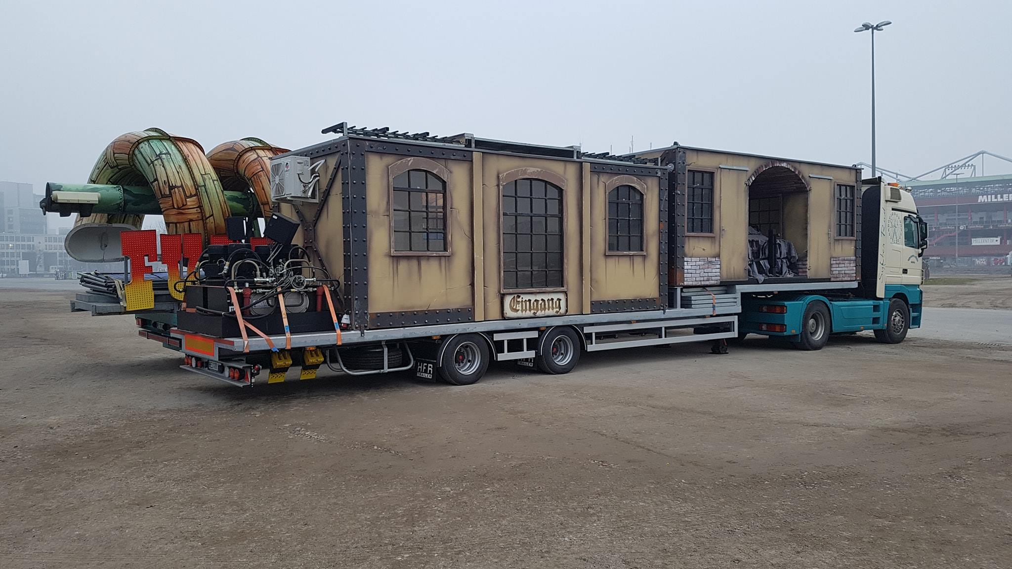 Der erste Transport mit Teilen der "Geisterfabrik" ist auf dem Heiligengeistfeld in Hamburg angekommen!