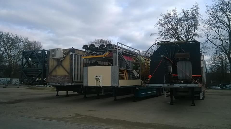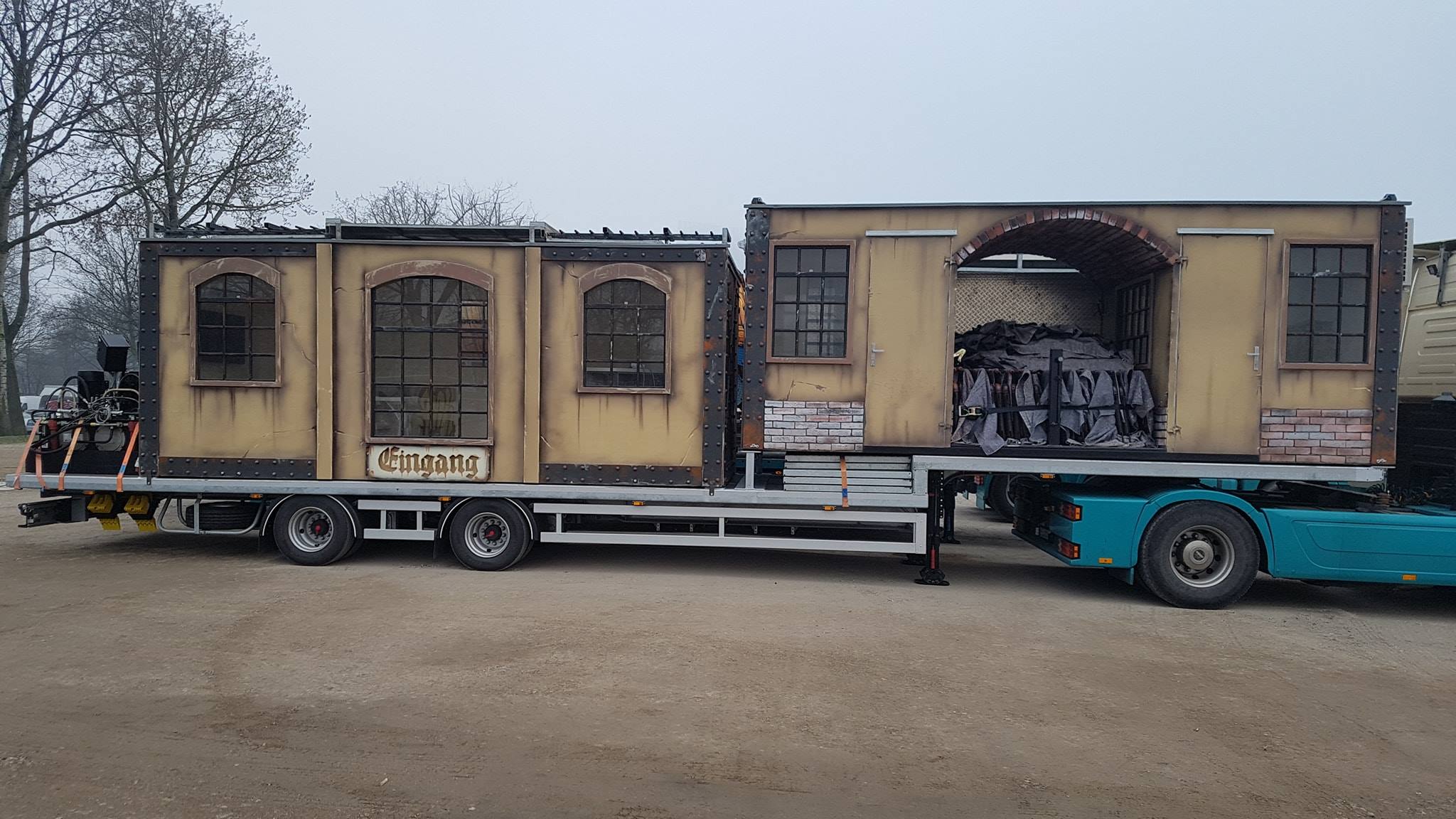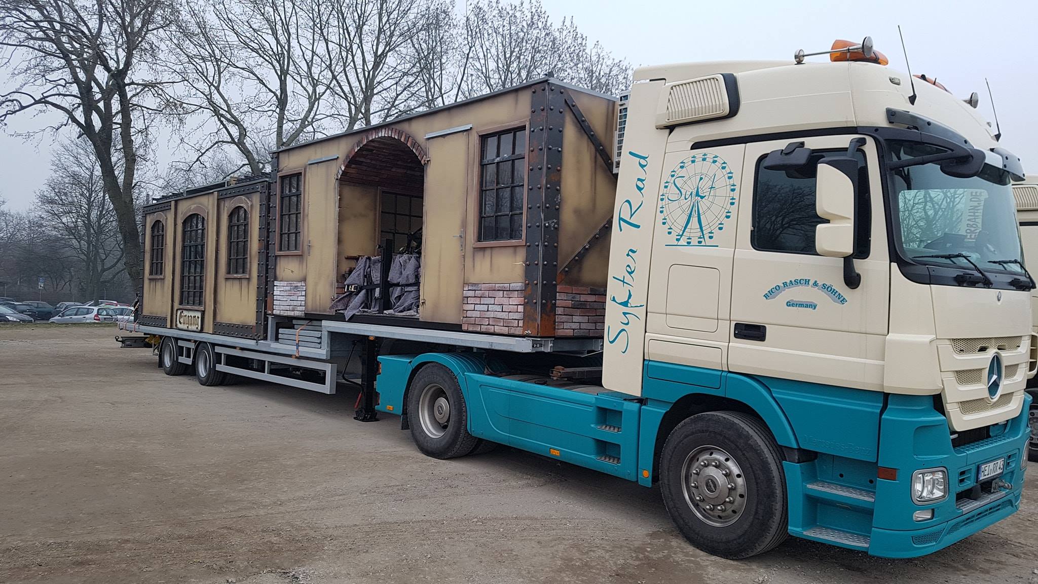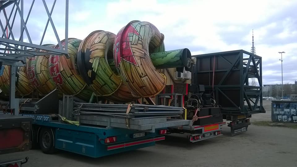 Der erste Transport mit Teilen der "Geisterfabrik" ist auf dem Heiligengeistfeld in Hamburg angekommen!