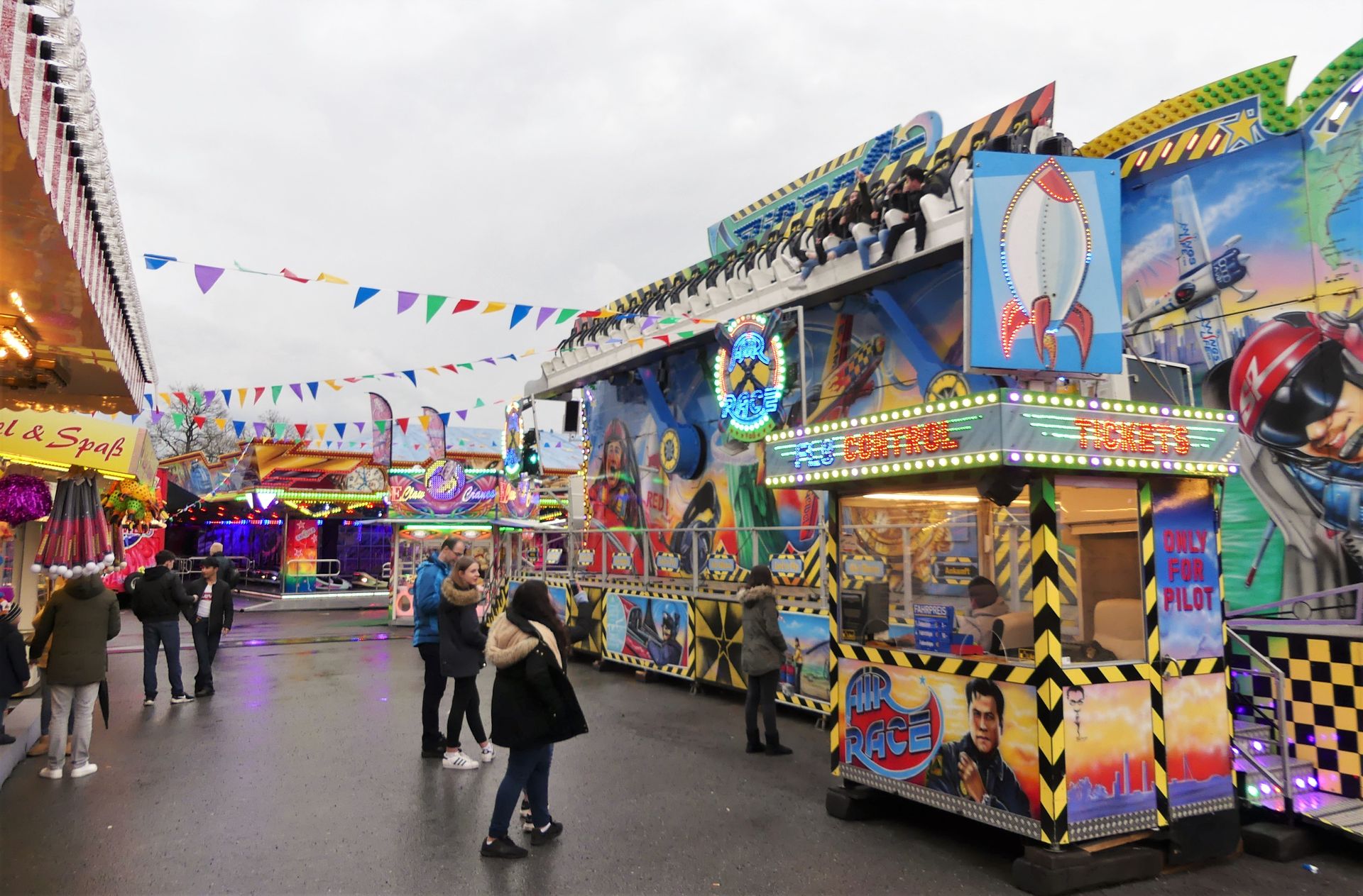 In dem kompakten Rundlauf finden auch einige Fahr- und Unterhaltungsgeschäfte ihren Platz. Direkt am Eingang steht der (erste) Air Race von Voß.