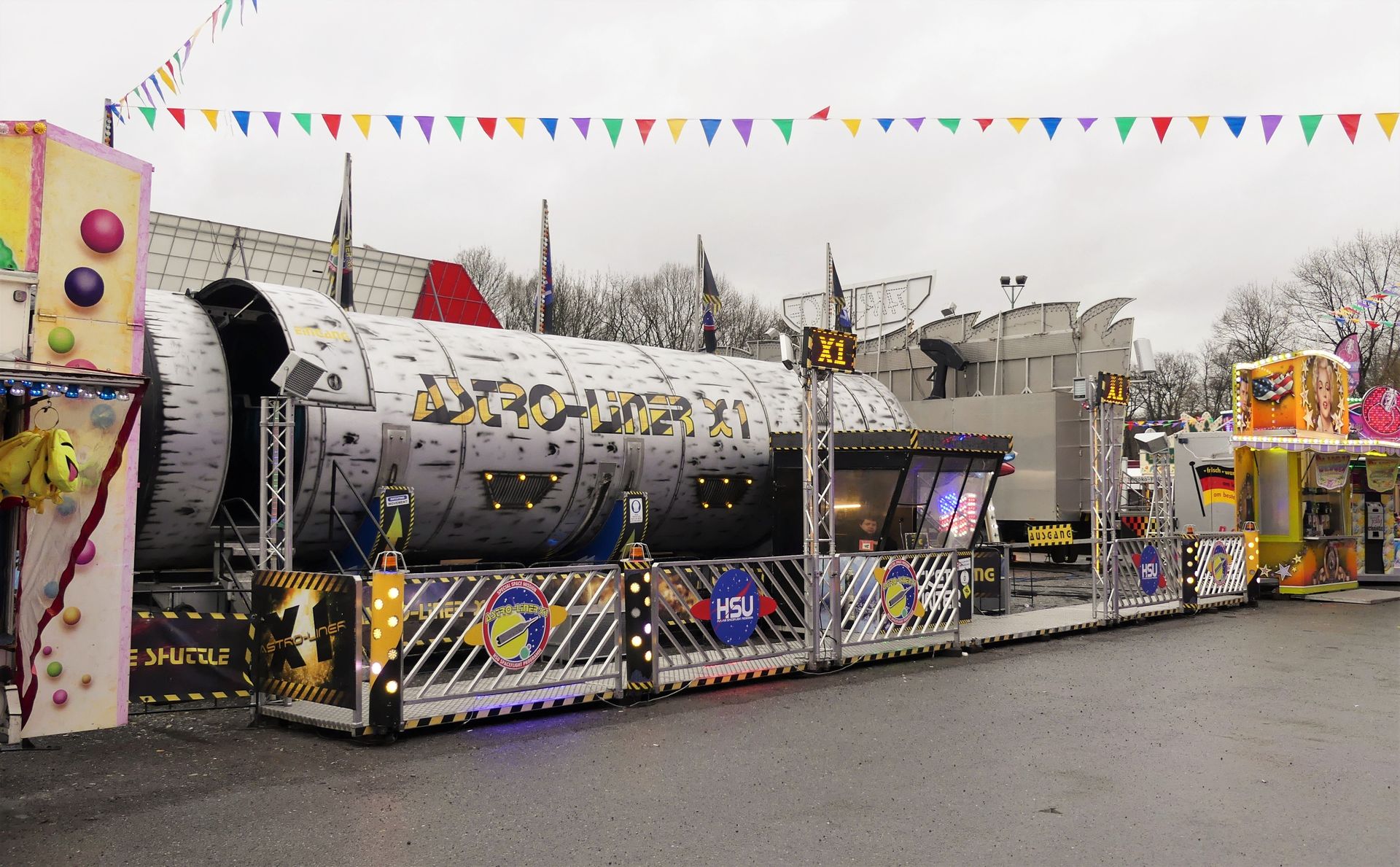 Gegenüber vom Autoscooter steht Suckerts Filmrakete den Kirmesbesuchern zur Verfügung.