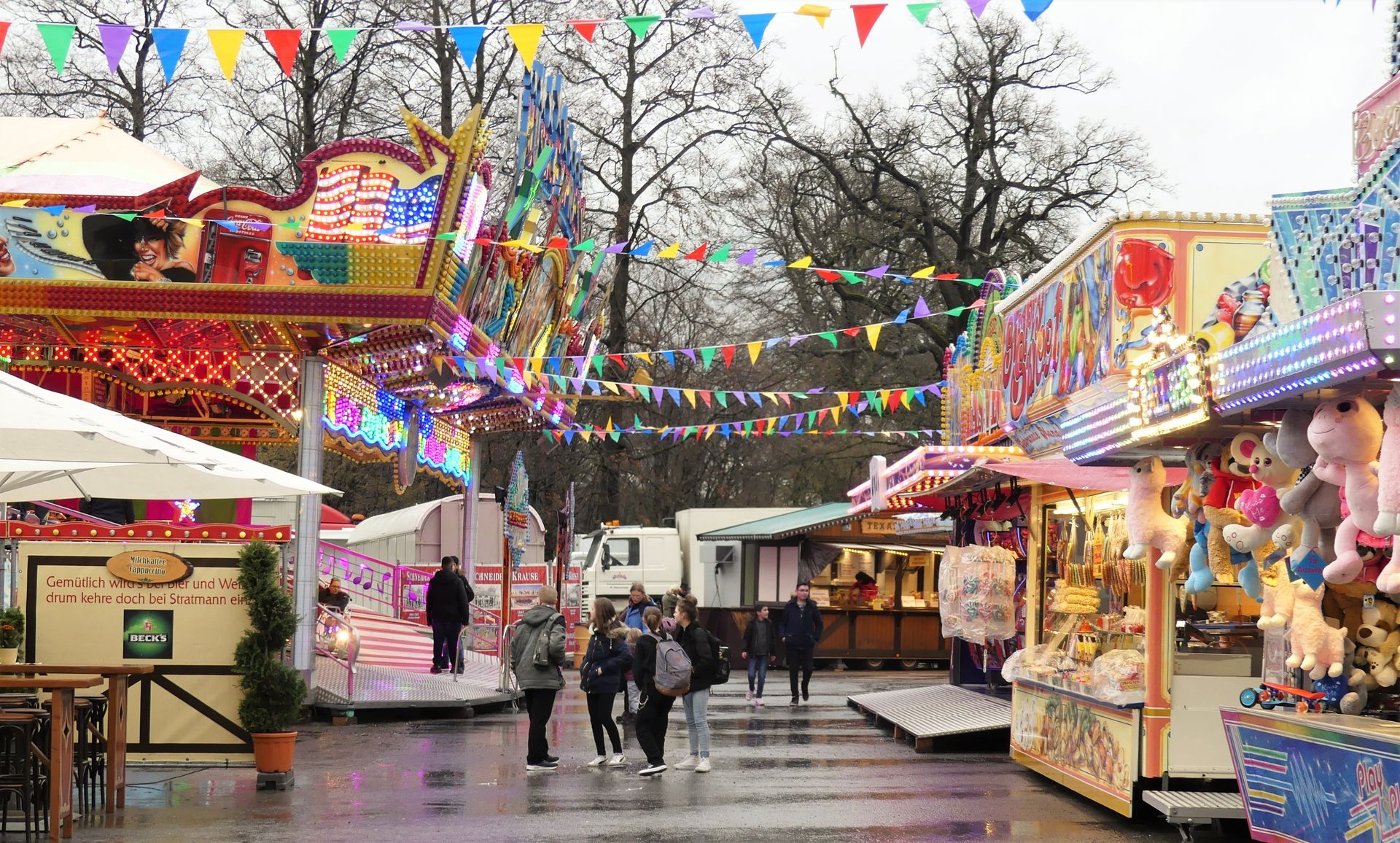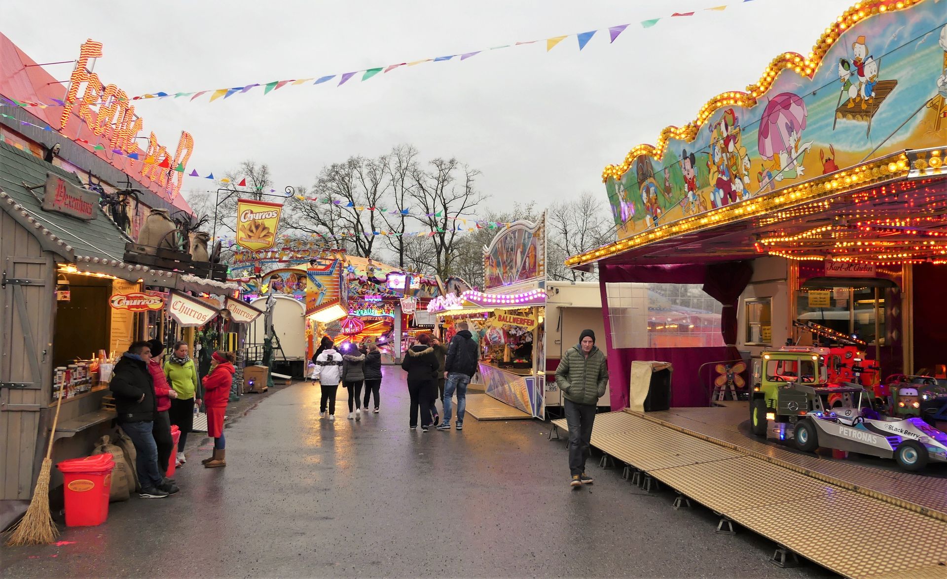 Immerhin muss man in diesem Jahr von Ikea aus den Festplatz betretend nicht über einen großen komplett frei gelassenen Bereich gehen, der schnell deprimierend wirkt, da er an frühere, goldene Zeiten der Kirmessen im Gleisdreieck erinnert, in denen noch der komplette zur Verfügung stehende Platz bebaut wurde. In diesem Jahr ist die Kirmes quasi komplimentär zum Aufbau der Vorjahre gestaltet. Der Weg von Zufahrt zum Festplatz bis zur Eisenbahnbrücke, entlang dessen sich die Veranstaltung bei ihren letzten Ausgaben ausbreiten durfte, dient nun als kostenloser Parkplatz für die Besucher. Die Frühjahrskirmes selbst findet nun – als kompakter Rundlauf gestaltet – auf dem vorderen Bereich des Areals statt, was dem Flair der sympathischen Veranstaltung (selbst bei Schmuddelwetter) wirklich gut tut. Bleibt nur zu hoffen, dass irgendwann auch die Besucher kommen, welche die in diesem Jahr deutlich stimmungsvoller gestaltete Frühjahrskirmes in Bielefeld-Brackwede verdient hätte.