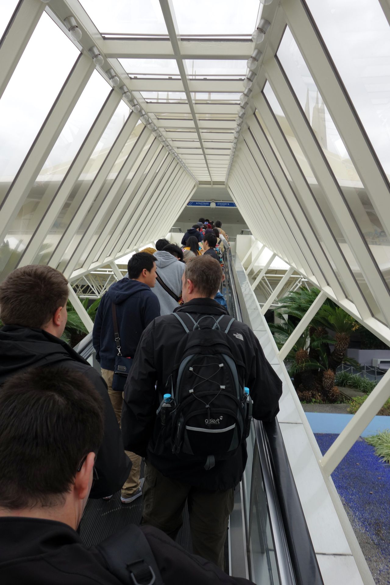 Die Outdoor-Queue fand dabei keine Verwendung, es ging direkt per Rolltreppe nach oben zum eigentlichen Wartebereich.