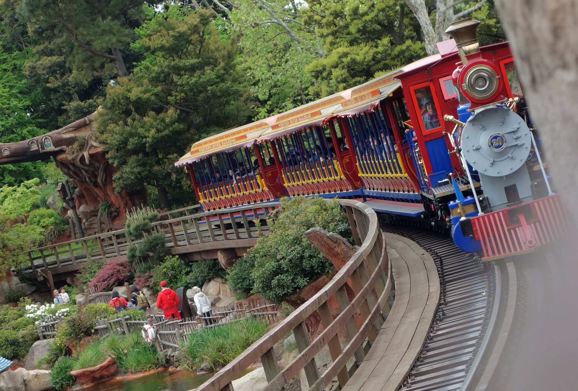 Zum Einen hat man eine noch kleinere Spurbreite gewählt, zum Anderen verläuft die Strecke gerademal um Adventureland und Westernland herum - und an Critter Country vorbei. Außerdem besitzt die Parkbahn nur eine Station, weshalb sie als Transportmittel nicht wirklich taugt. Hätte man die Bahn mit zwei oder gar noch mehr Stationen in Betrieb genommen, hätte man damals einen offiziellen Fahrplan aufstellen (und einhalten) und Fahrpreise erheben müssen. Das entsprechende Gesetz wurde erst ein paar Jahre später geändert, deswegen war die zweite Station bei der DisneySea Electric Railway kein Problem mehr.