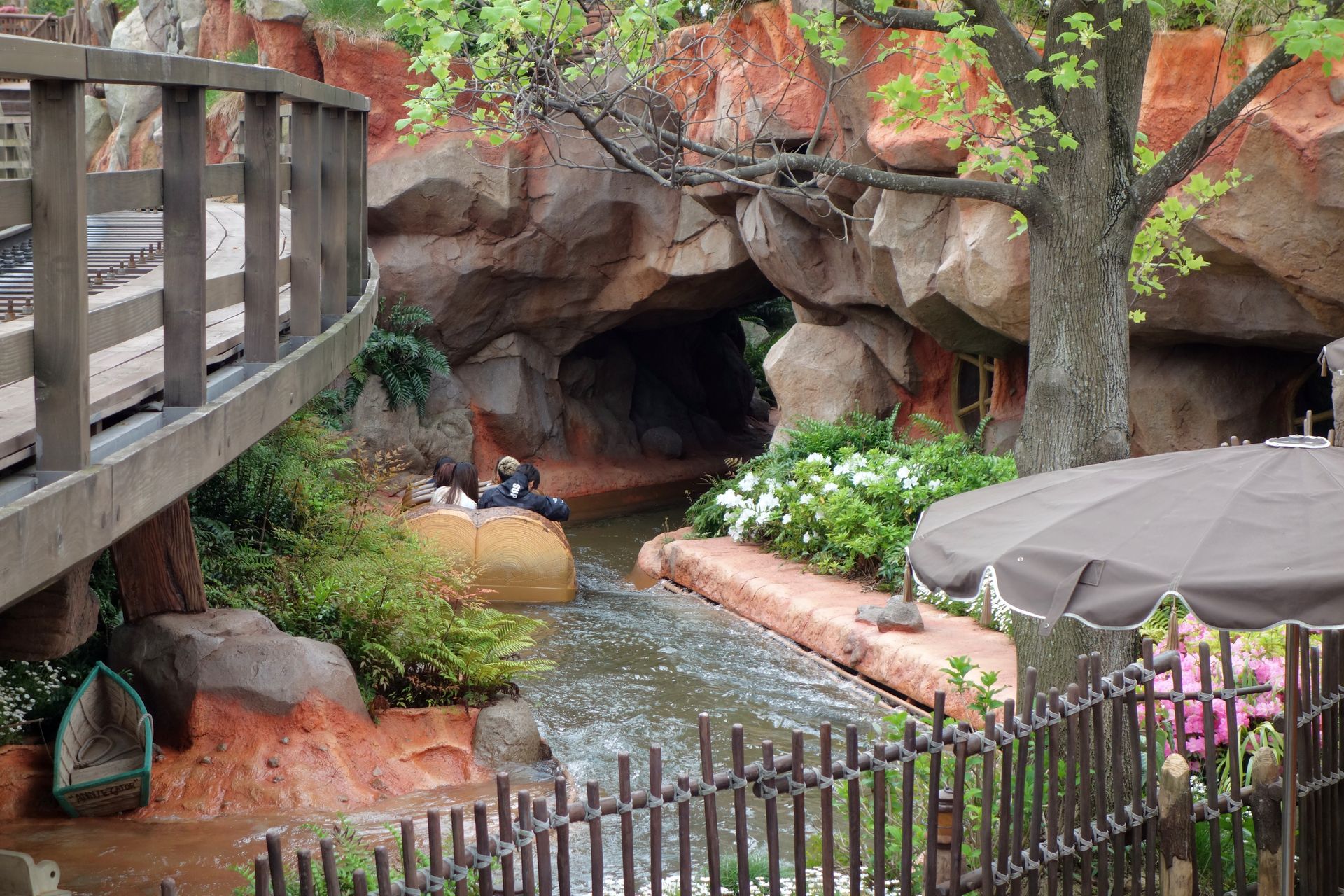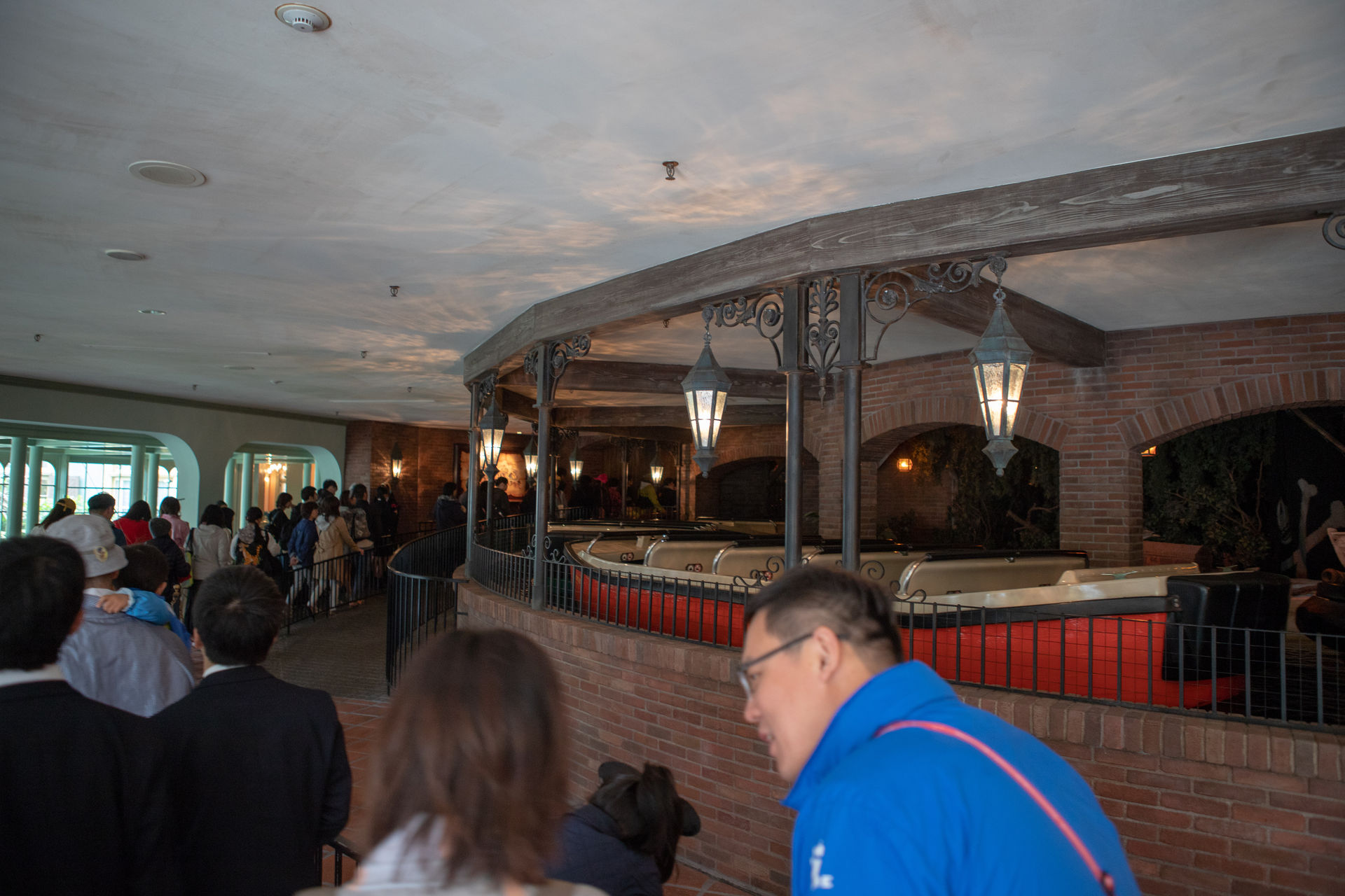 Die Version in Tokio hat also insgesamt 4 Drops und damit einen mehr als das Original in Anaheim. In Orlando gibt es offenbar sogar noch einen fünften Mini-Drop (wenn man das überhaupt Drop nennen kann, ich war ja noch nicht selbst dort), dafür hat man in Tokio mit über 850 Metern die längste Strecke. Leider sind die 8-sitzigen Boote - man sitzt in vier Reihen jeweils zu zweit nebeneinander - mit Beckenbügeln ausgestattet. Man hat aber immerhin mehr als genug Platz, nicht so wie bei Chiapas...