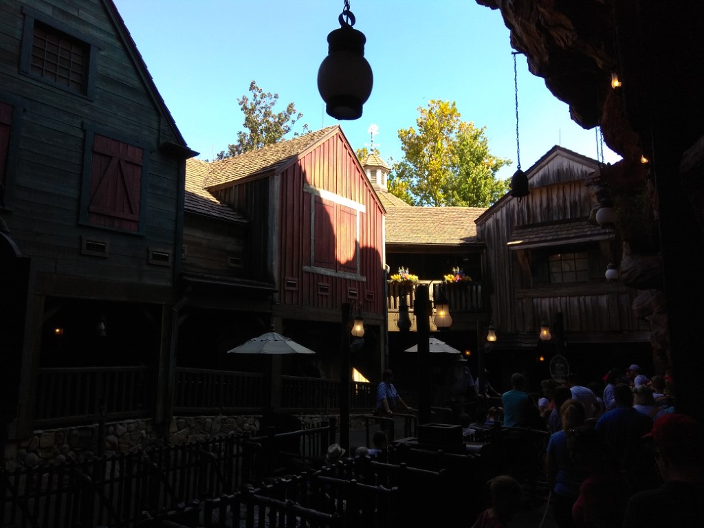 Diese ist wie eigentlich alle Queues in Walt Disney World sehr liebevoll gestaltet und bahnt ihren Weg durch Holzhütten und einen Steintunnel in die Station. Unterwegs vergisst man, das diese Bahnen eigentlich Ungetüme aus Stahl und Beton sind.
