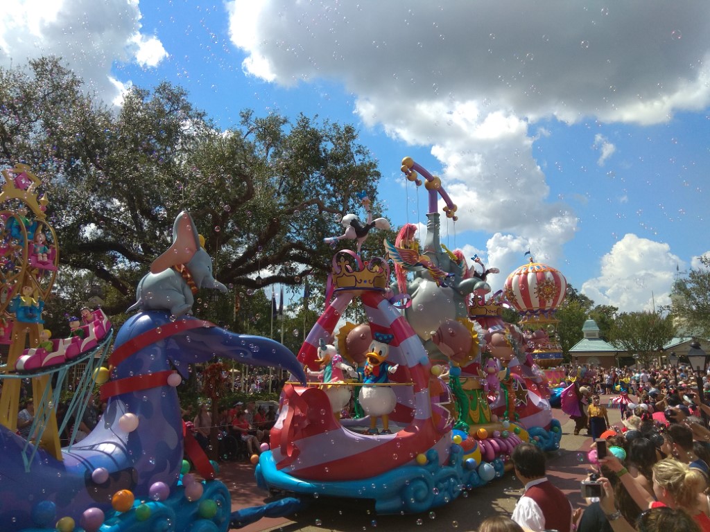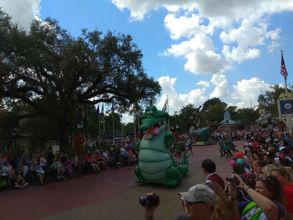 Direkt am Ausgang der Hall of Presidents fanden wir einen relativ guten Platz für Festival of Fantasy - Im Vorfeld konnten wir den Hype um die Paraden nur bedingt verstehen. Was wir aus vor allem Deutschland kannten war (subjektiv) meistens ziemlich zum fremdschämen. Aus irgendeinem Grund funktioniert die Mischung aus Tanzveranstaltung und Karnevalsumzug im Disneykontext jedoch sehr gut. Man freut sich auf bekannte Charaktere und ist von der Gestaltung der Floats beeindruckt, es wird mit Gerüchen gearbeitet und das gesamte Konzept geht einfach auf – besonders faszinierend ist der nicht merkbare Übergang zwischen den verschiedenen Themesongs zu den Filmen und dem Lied der Parade „Festival of Fantasy“ im wahrscheinlich größten Surroundsystem der Welt.