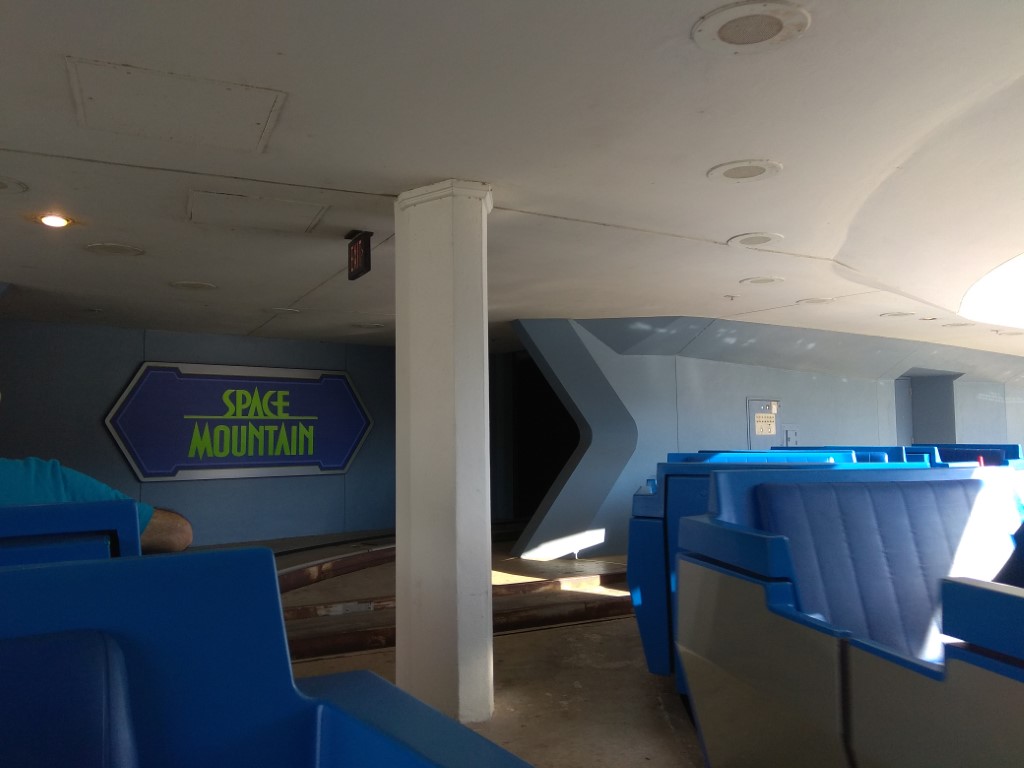 Als nächstes brachte uns der Peoplemover in die Eingeweide von Space Mountain. Man sieht im Dunkeln wenig von der Strecke, kann aber einen Blick auf die Lifthills und kleinen Drops daneben erhaschen.