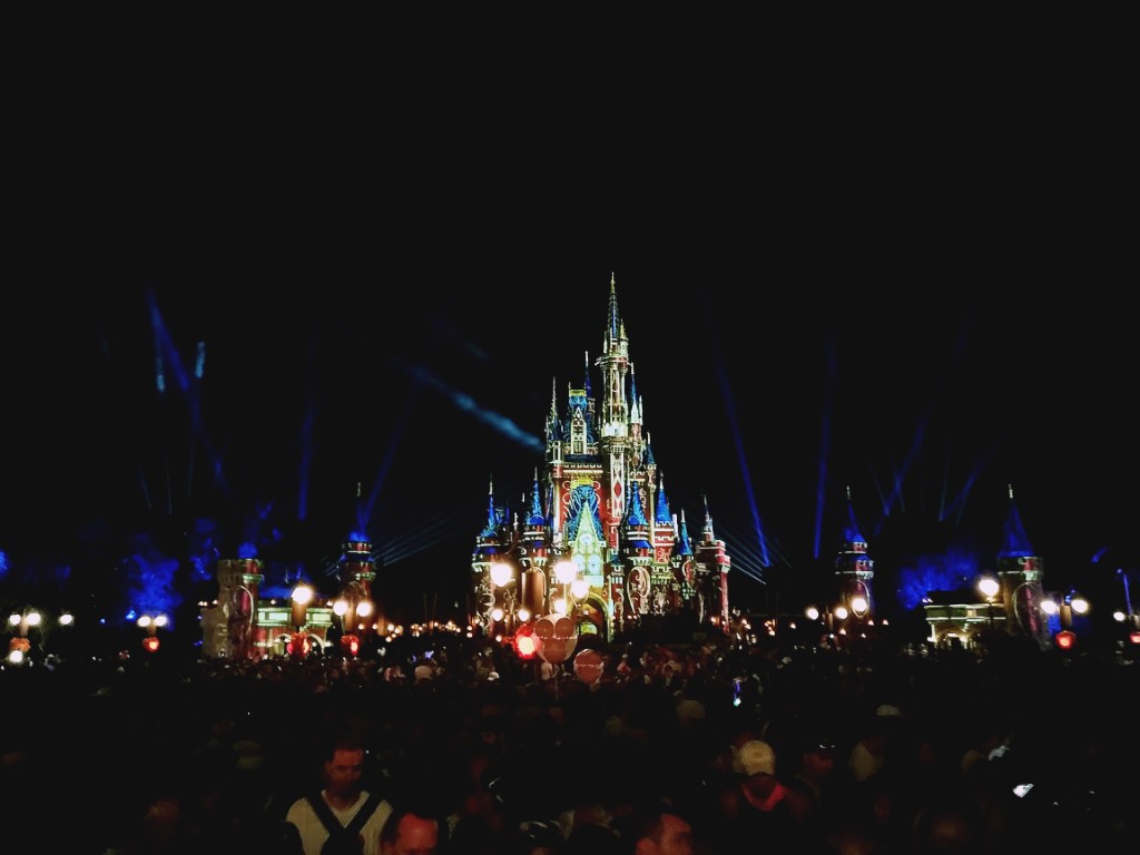 Es war Zeit für unsere erste Abendshow in einem Park, das 'Happily ever After' Feuerwerk. Es wird ein bombastischer Mix aus Projection Mapping, Pyro, Licht und Sound geboten, der sich durch den kompletten Disneykatalog wühlt.