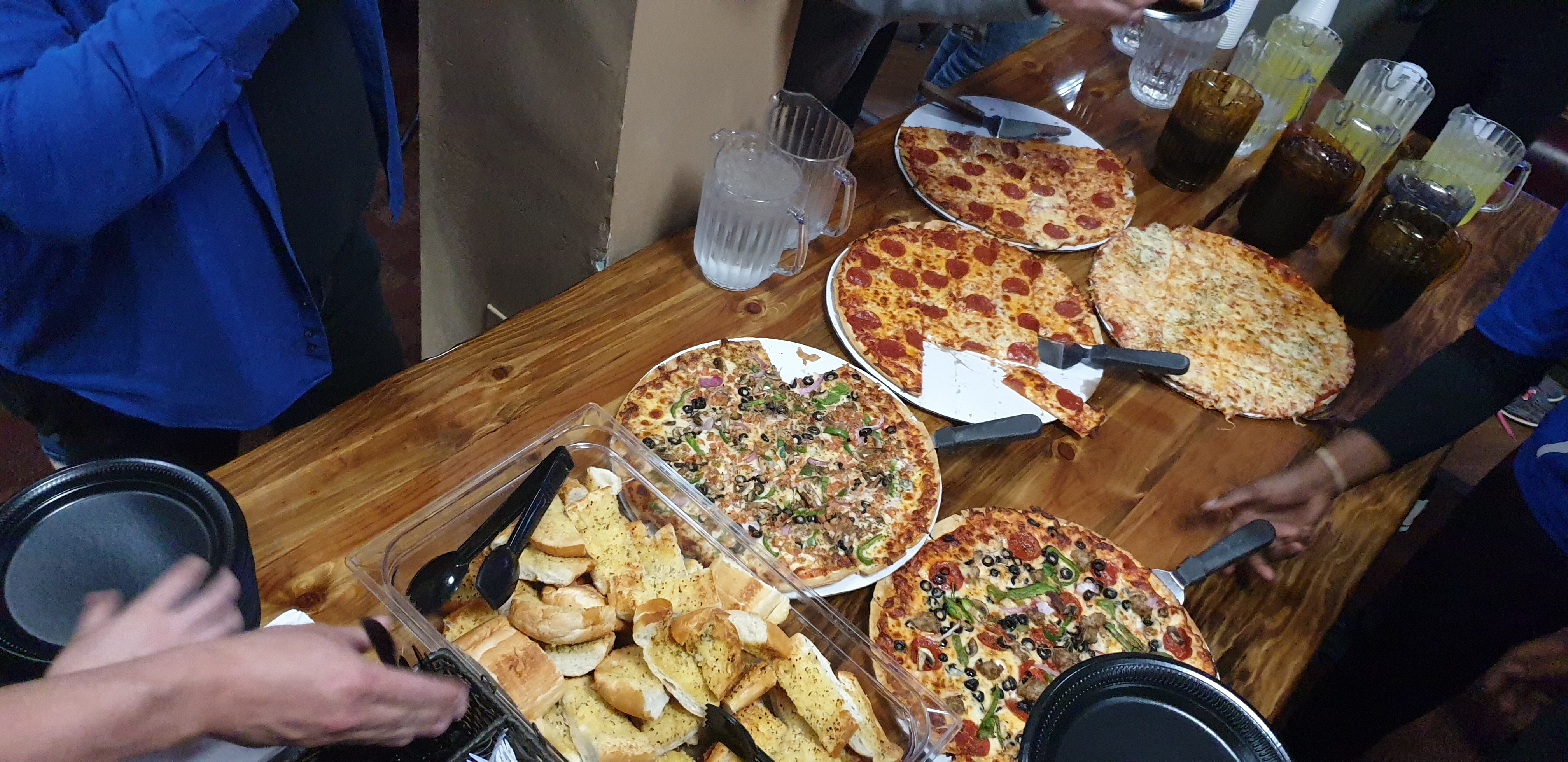 Und damit damit wir da nicht gleichzeitig mit über 50 Leuten anstehen, gab's zeitgleich noch 3 Stunden an sämtlichen 10 Bowlingbahnen und ein Pizzabuffet mit (für Parkverhältnisse) ganz ordentlicher Pizza.