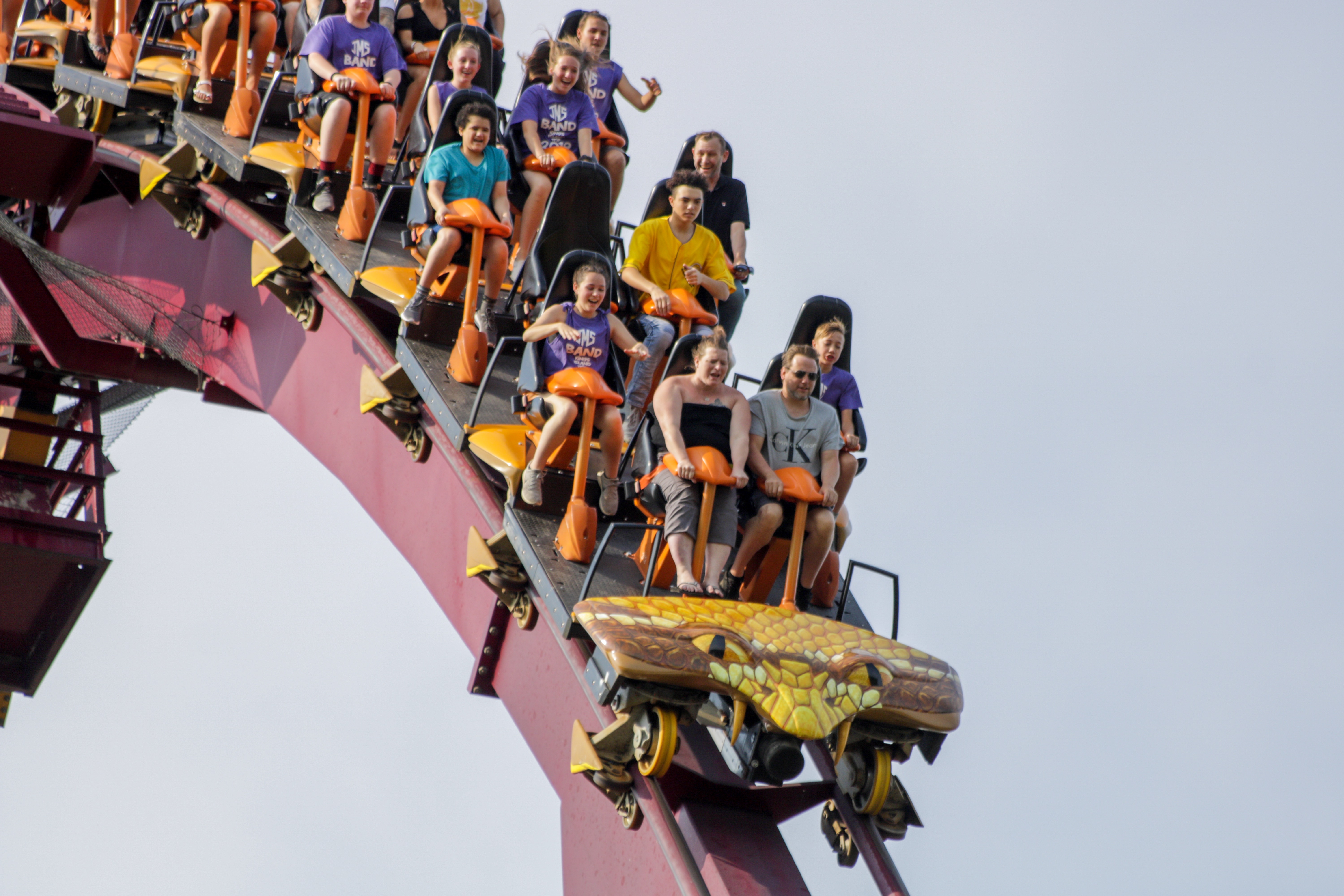 Diamondback ist eine echt spaßige Anlage und reiht sich in meinem persönlichen Ranking noch vor Behemoth ein. Liegt einfach daran, dass die Bahn zwar auch stark gebremst ist, allerdings die