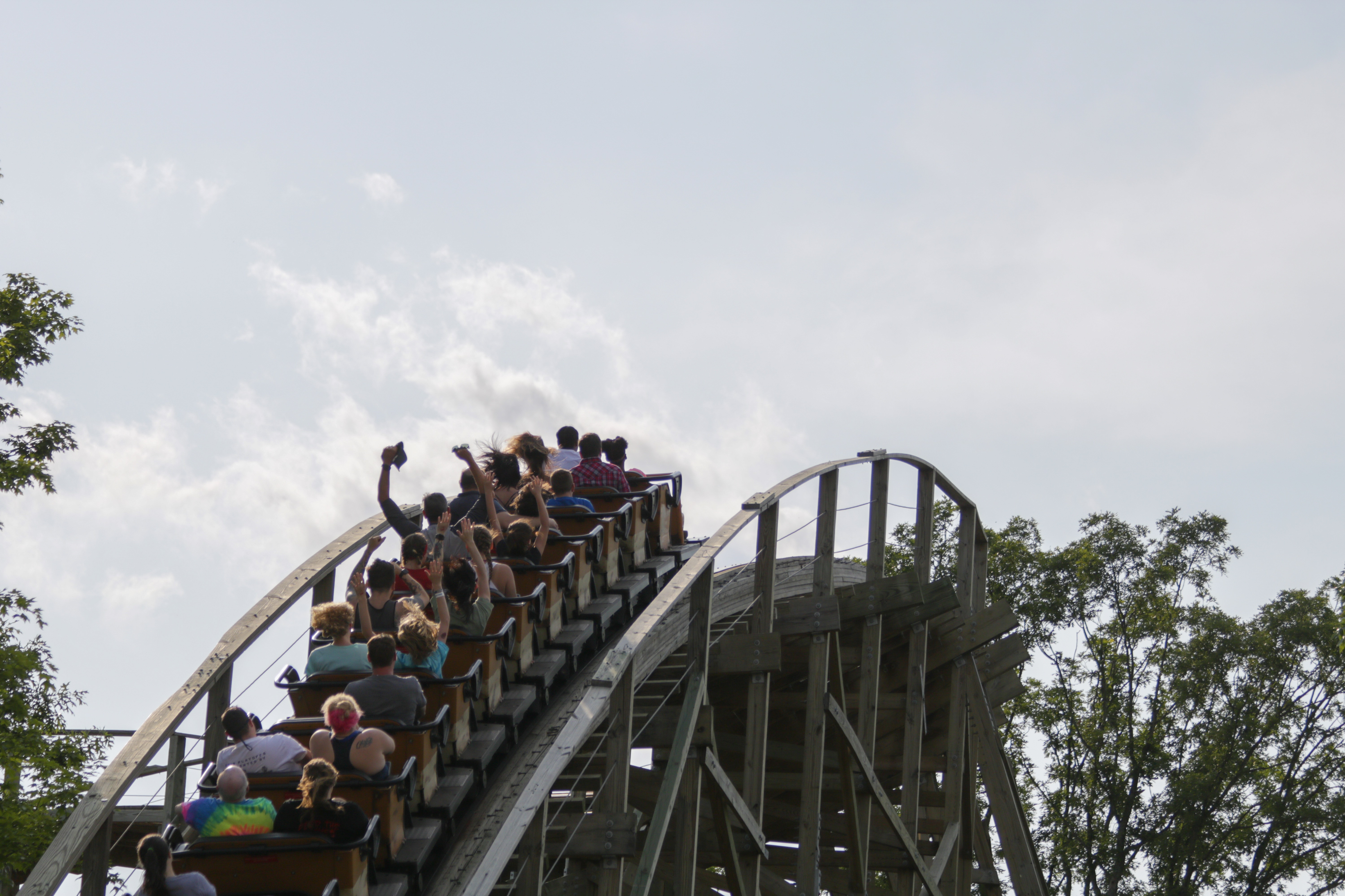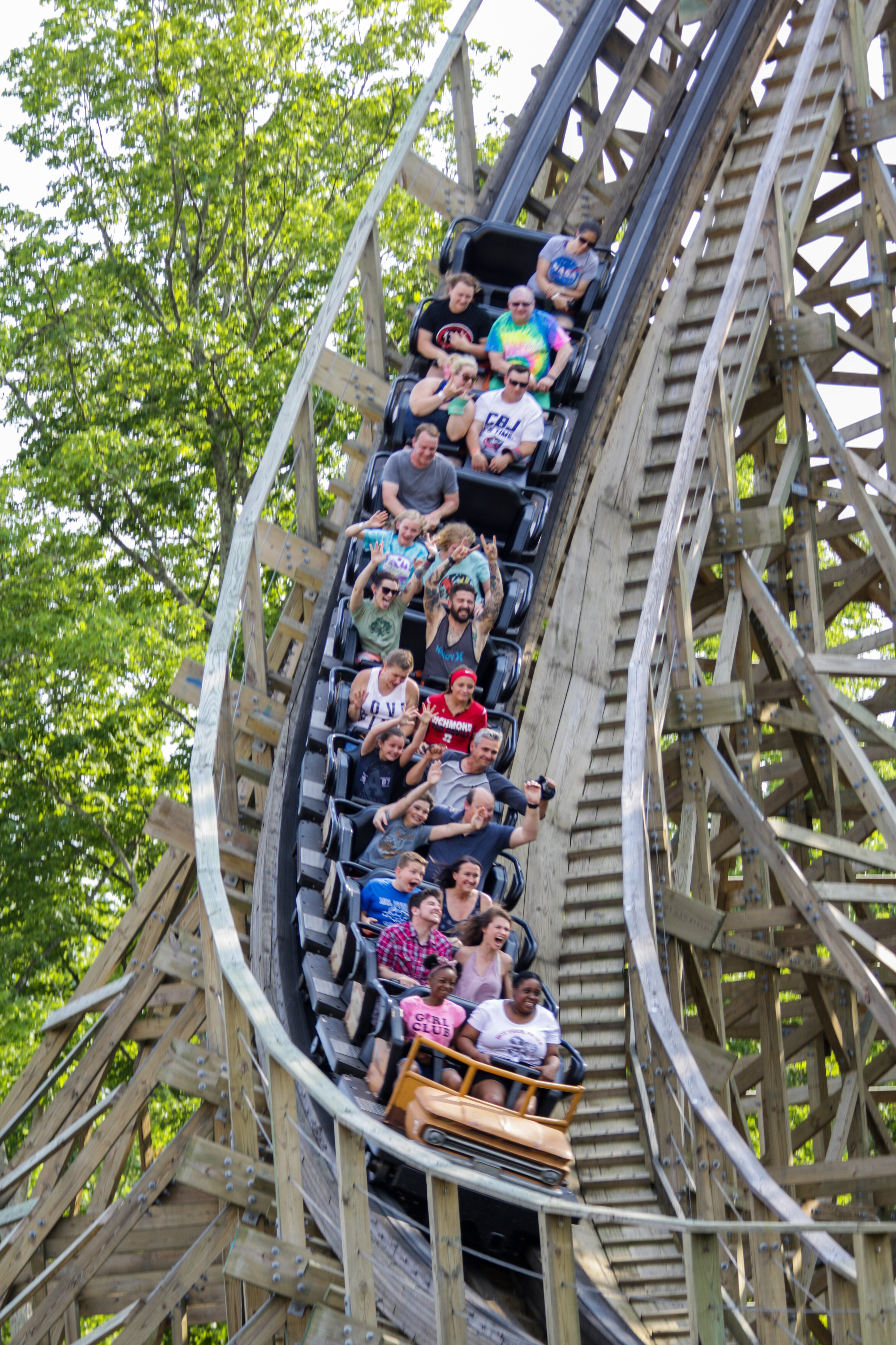 Airtime Hill. Schön bescheuert, ja mit geraden Strecken, die irgendwie sinnlos sind, aber trotzdem wirklich spaßig. Direkt nach dem zweiten Lift kommt auch die geilste Stelle der Bahn. Sehr lustig und für mich die beste Holzachterbahn im Park (ja auch vor dem Racer).