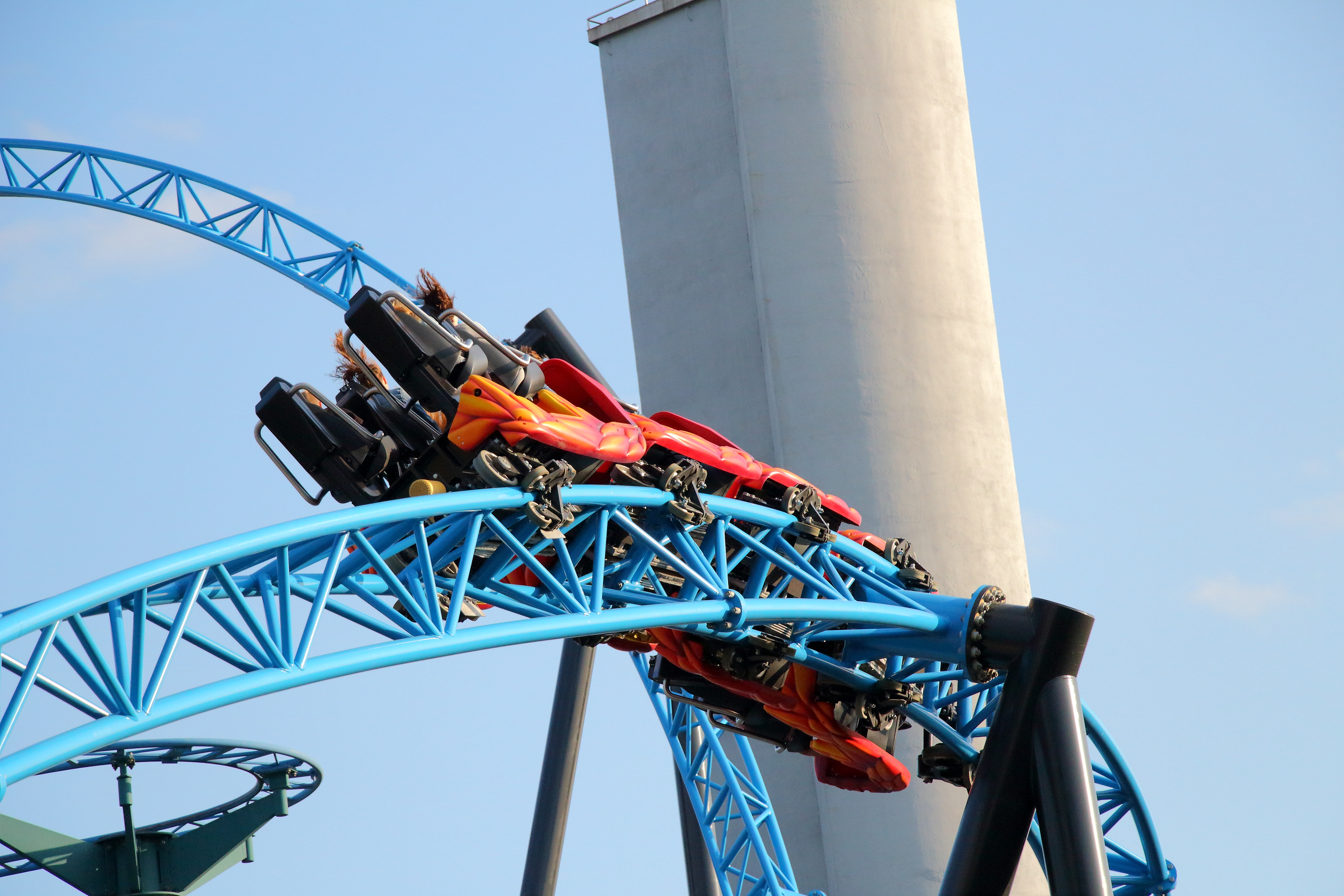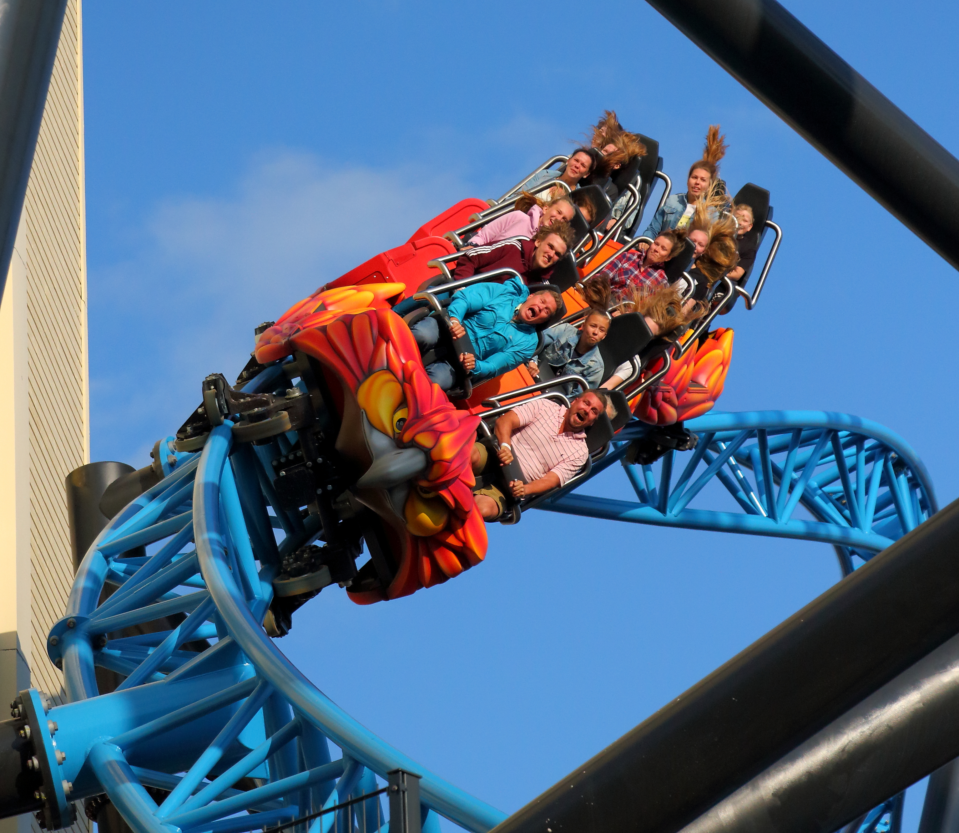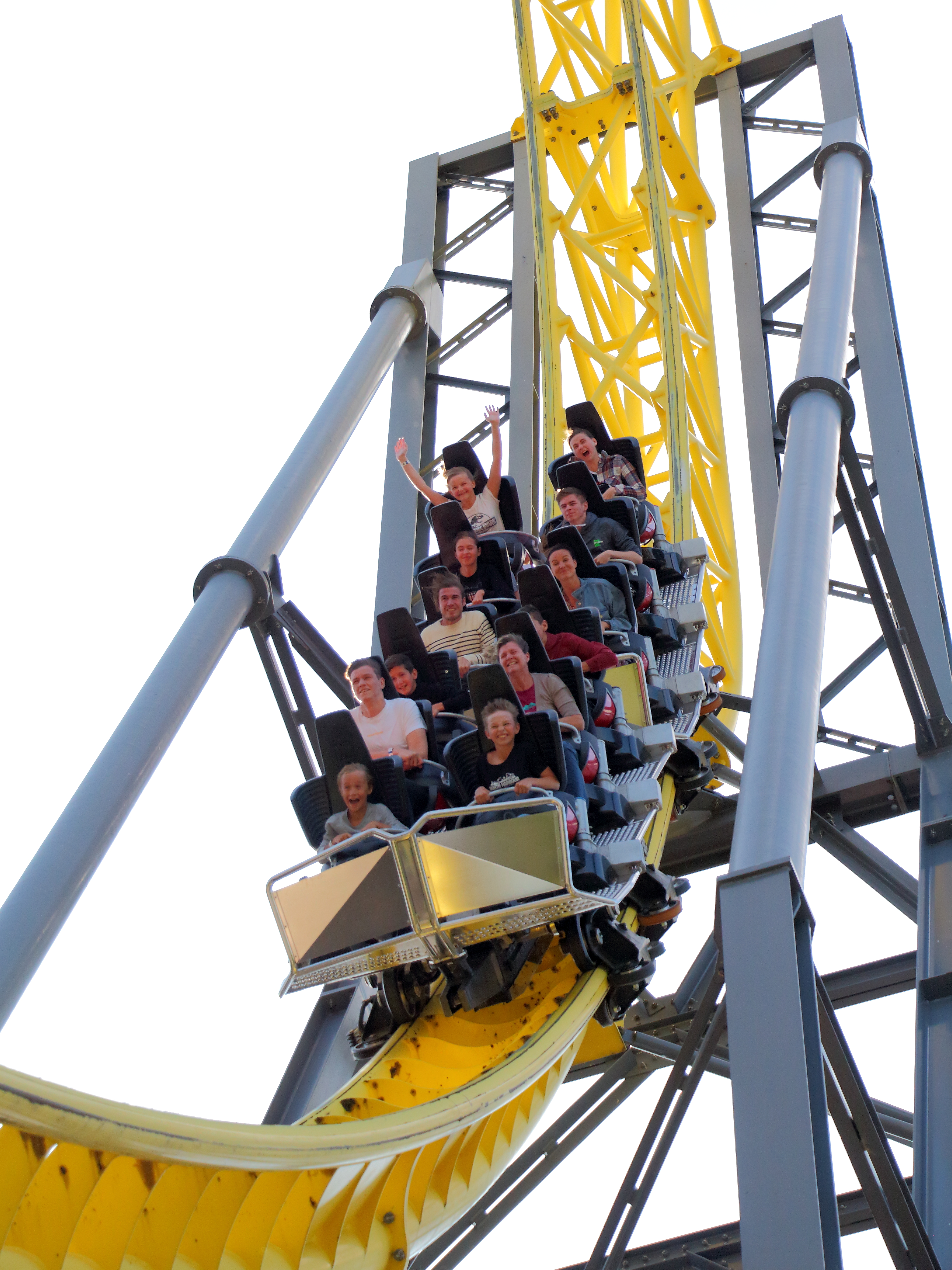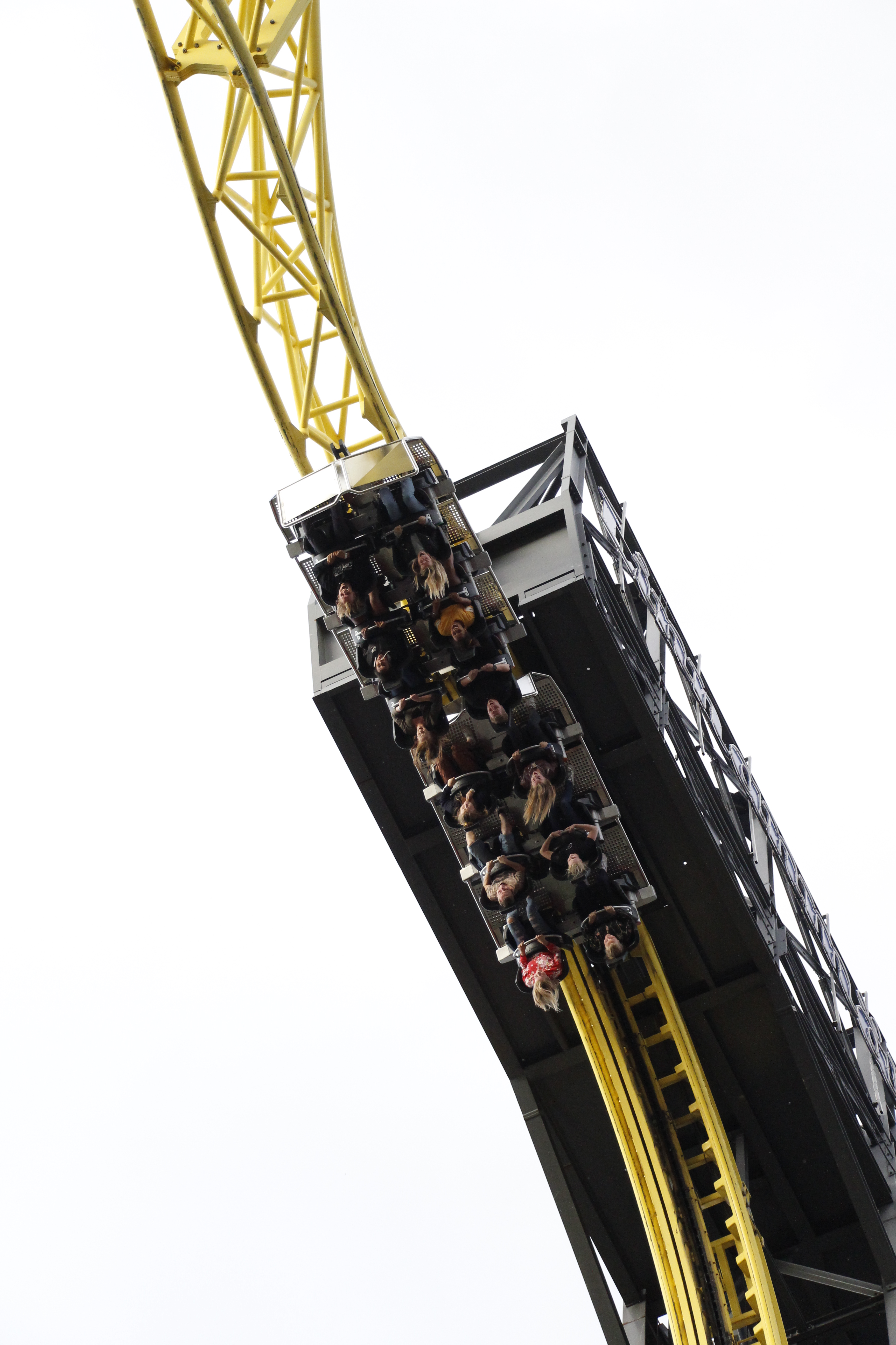 Wenn auch im Vergleich zu Insane leider schon die erste Abfahrt ausgebremst wird. Trotzdem immer wieder lustig auf die verschwindende Schiene zuzufahren, wenn auch der freie Fall nicht so krass wie erwartet ausfällt.