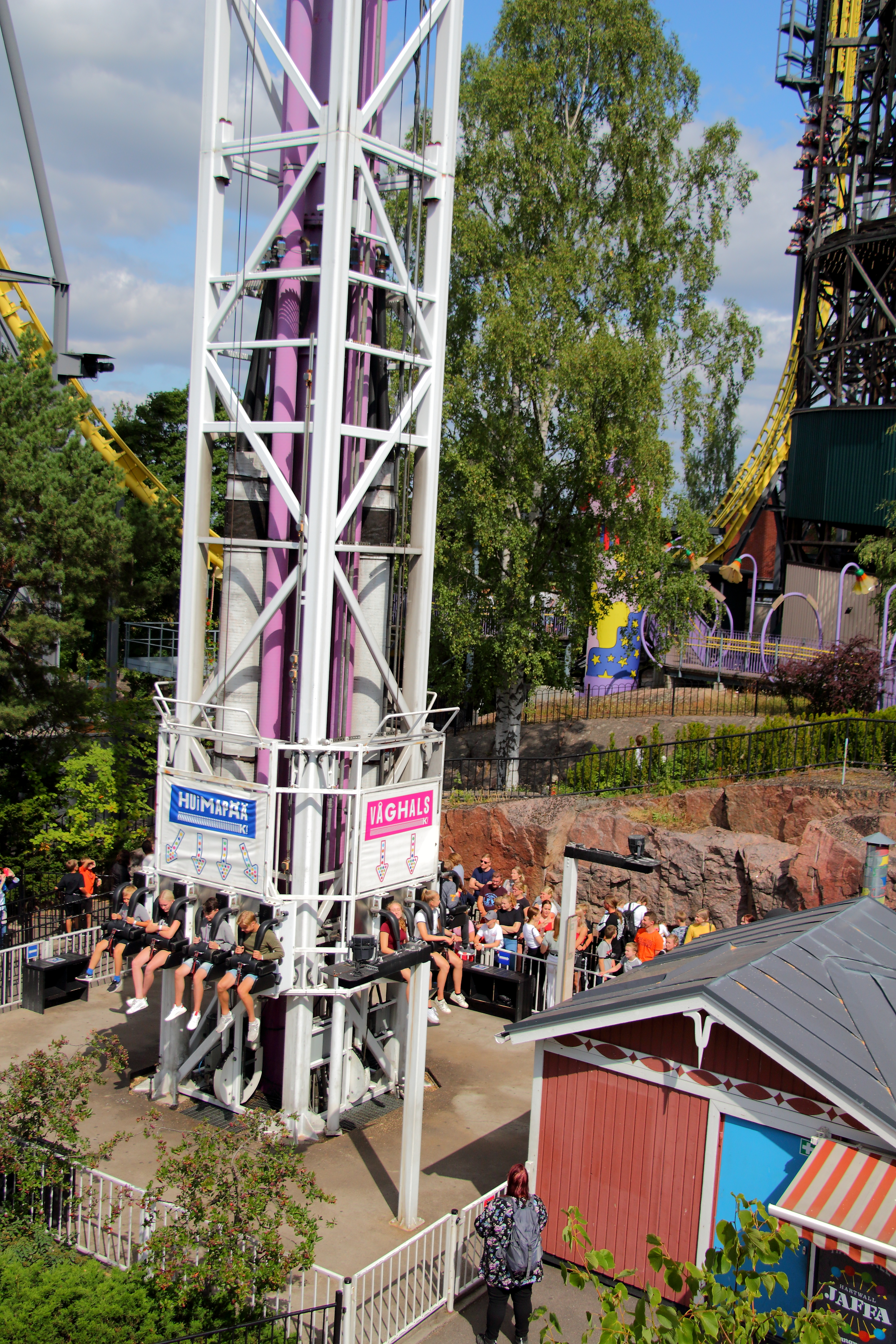 Warum wohl? Auf dem Gestell von Raketti steht so schön "Vaghals". Die Wartezeit war uns einfach zu waghalsig. Trotzdem würde ich nach den Fahrten auf den restlichen Freifalltürmen behaupten, dass die gute alte