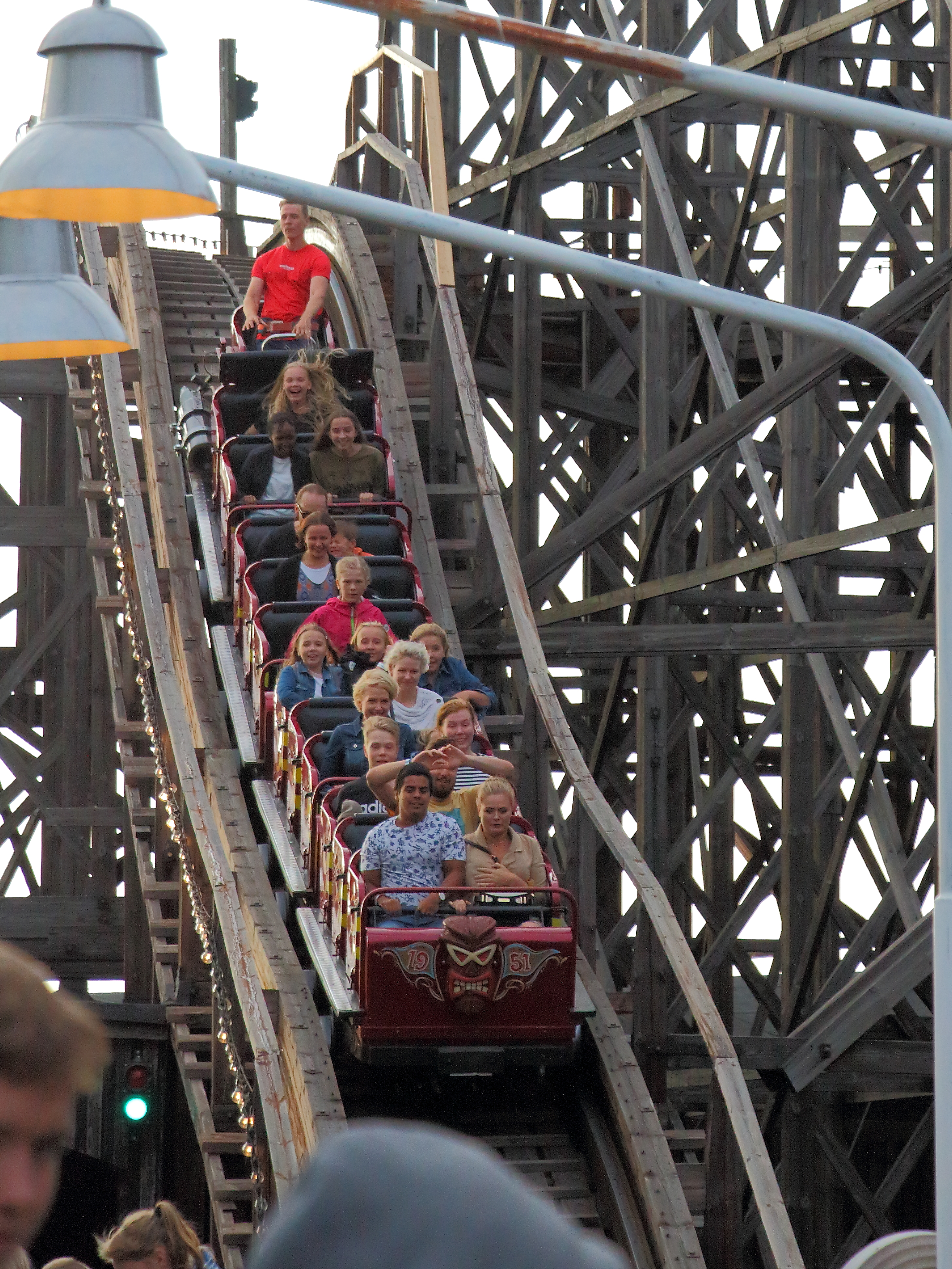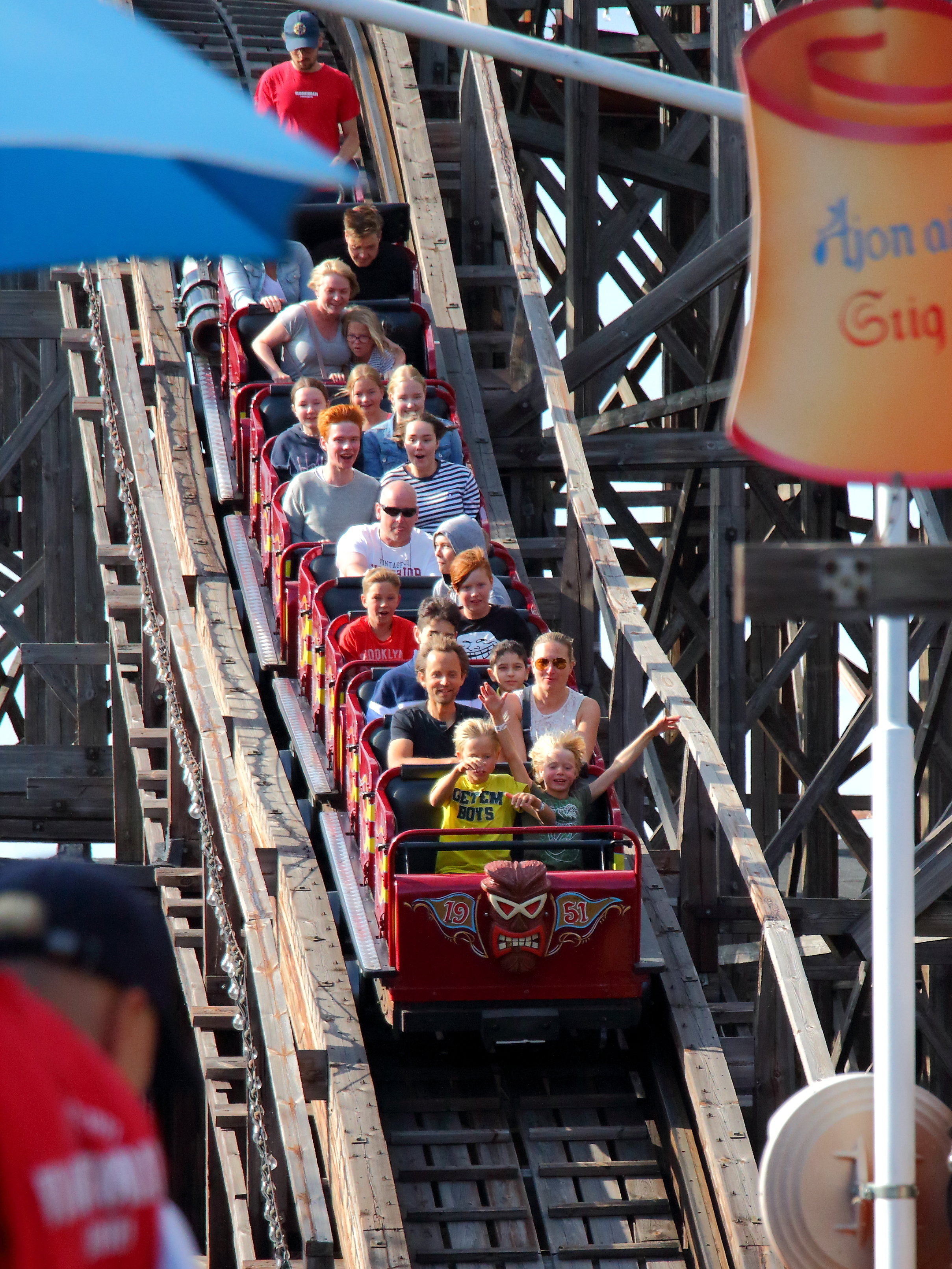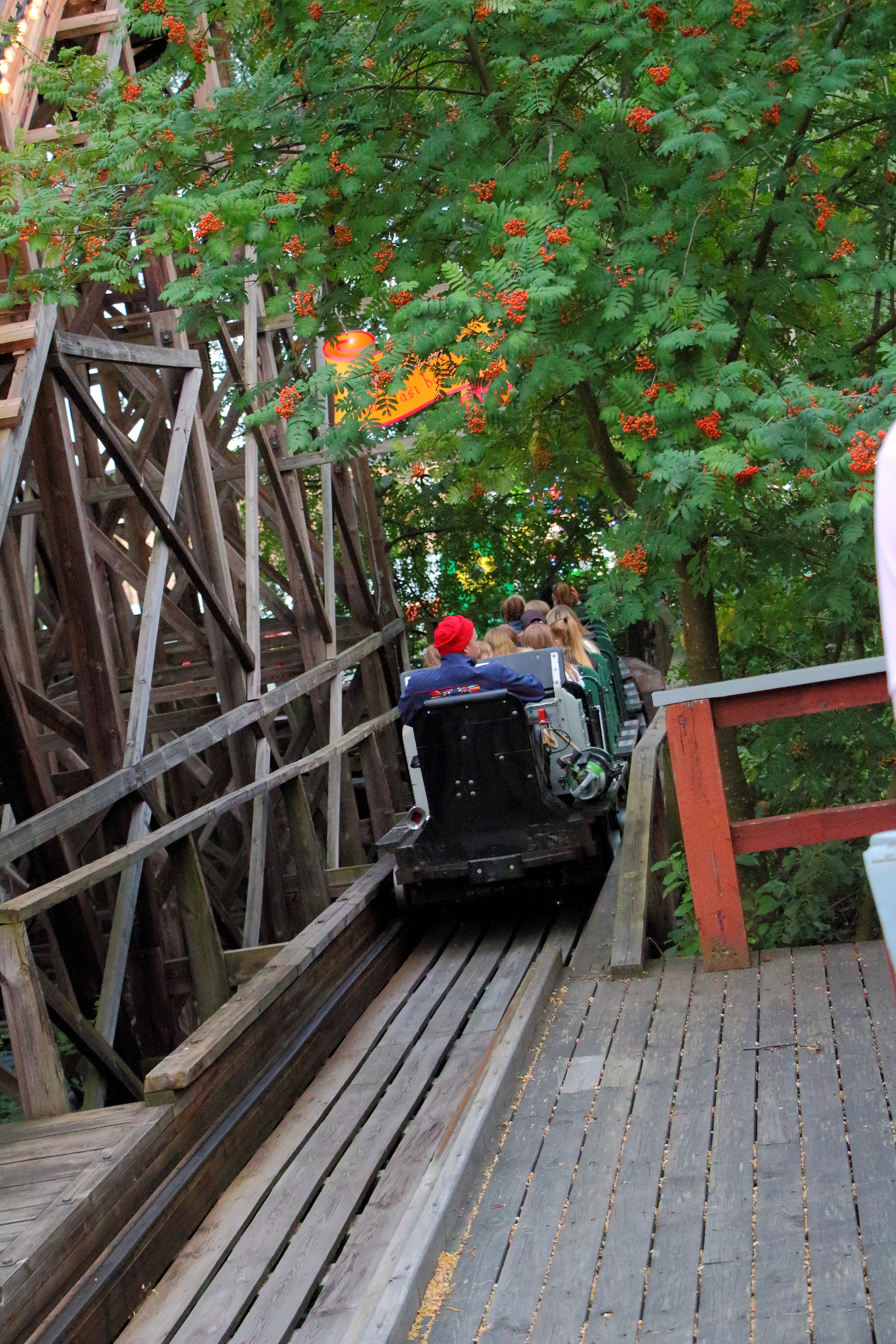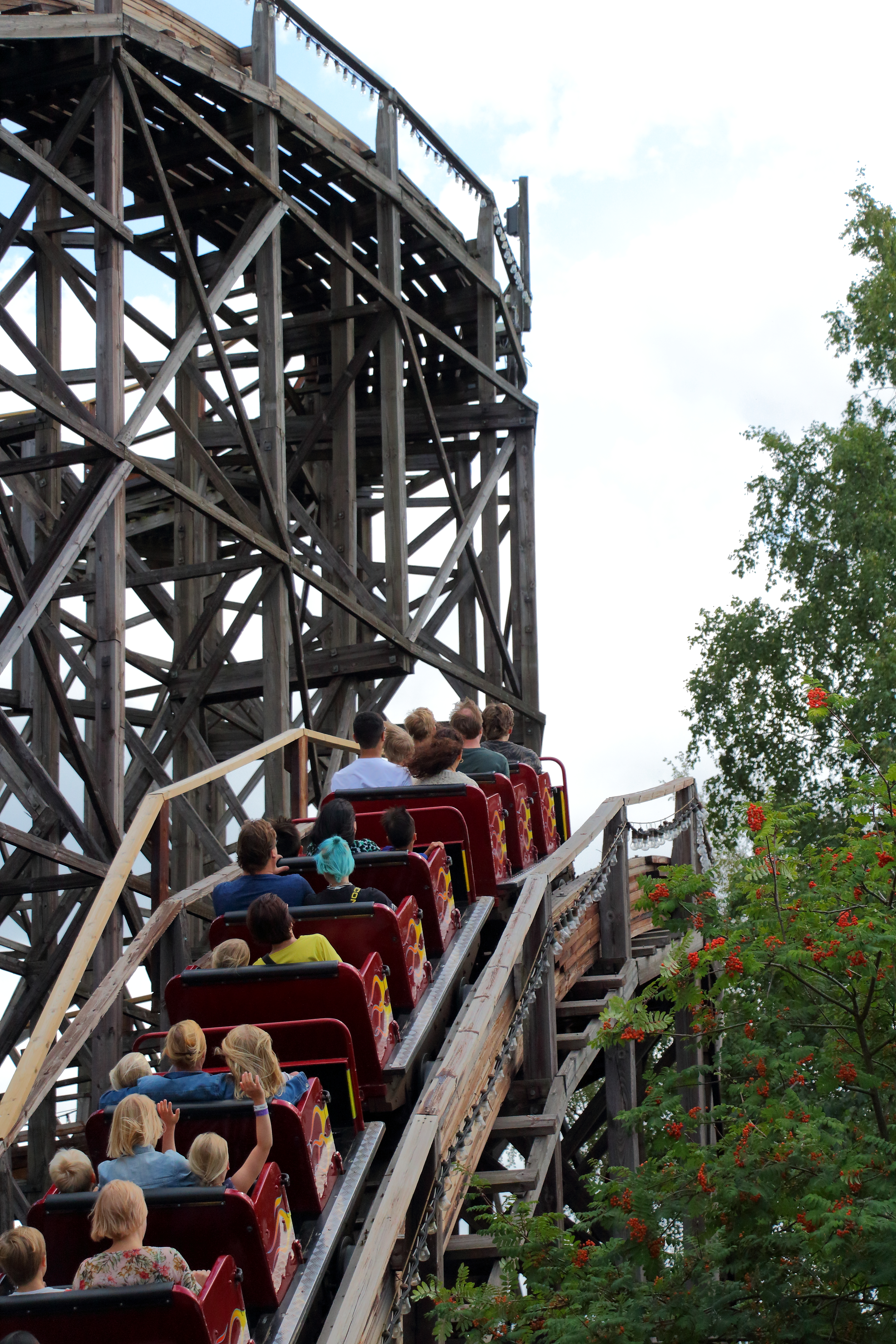 Die Warteschlange reichte bei unserem Besuch meist bis zum Eingang von Ukko, jedoch sind wir immer nach ziemlich genau zehn Minuten im Zug gesessen. Unglaublich, was das Ding für Menschen schluckt. Sehr schade, dass sich Bakken für den Umbau entschieden hat. Sowohl kapazitätstechnisch, als auch für das Fahrerlebnis. Während die beiden Rutschebanen in Kopenhagen Backseatcoaster sind, ist der hiesige Woodie ganz klar ein Frontrow-Woodie. Sehr schade, dass ich die Bahn nicht öfters als nur 5x gefahren bin. Das heimliche Highlight im Park, wenn auch etwas ruppiger als das Bakkensche Modell. Sehr schöne Backstagebilder mit Erklärung mancher technischer Aspekte gibt es übrigens in