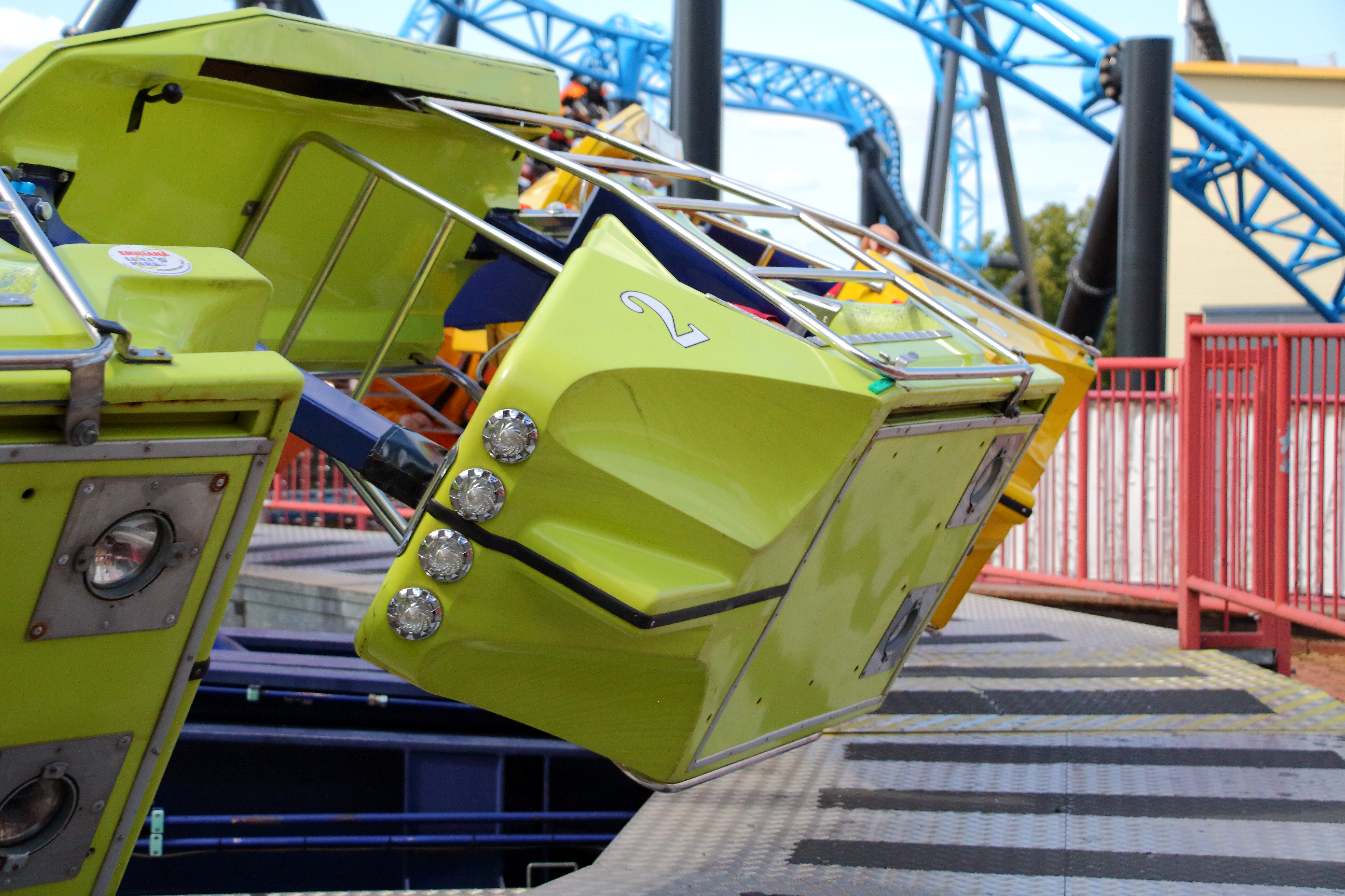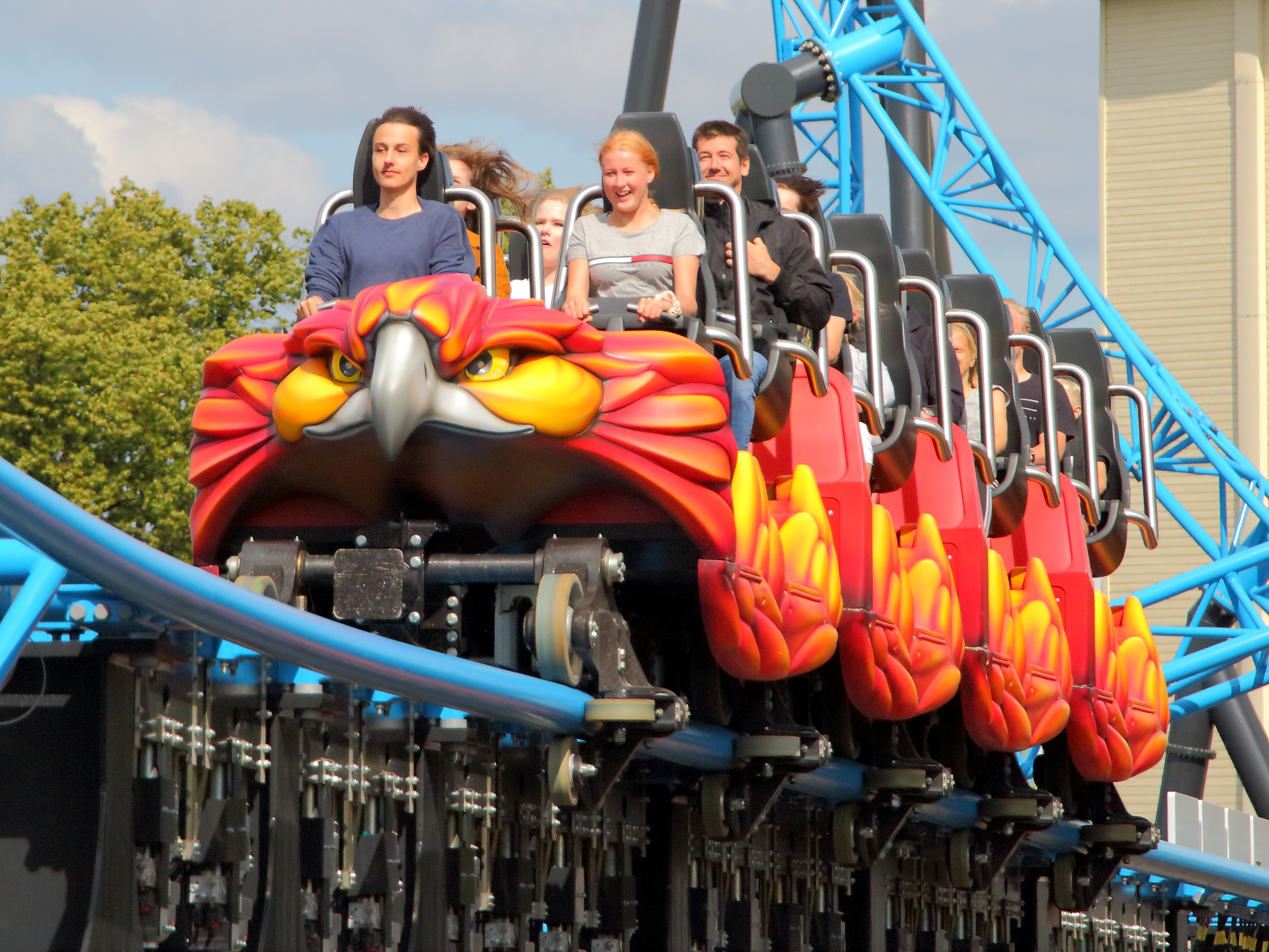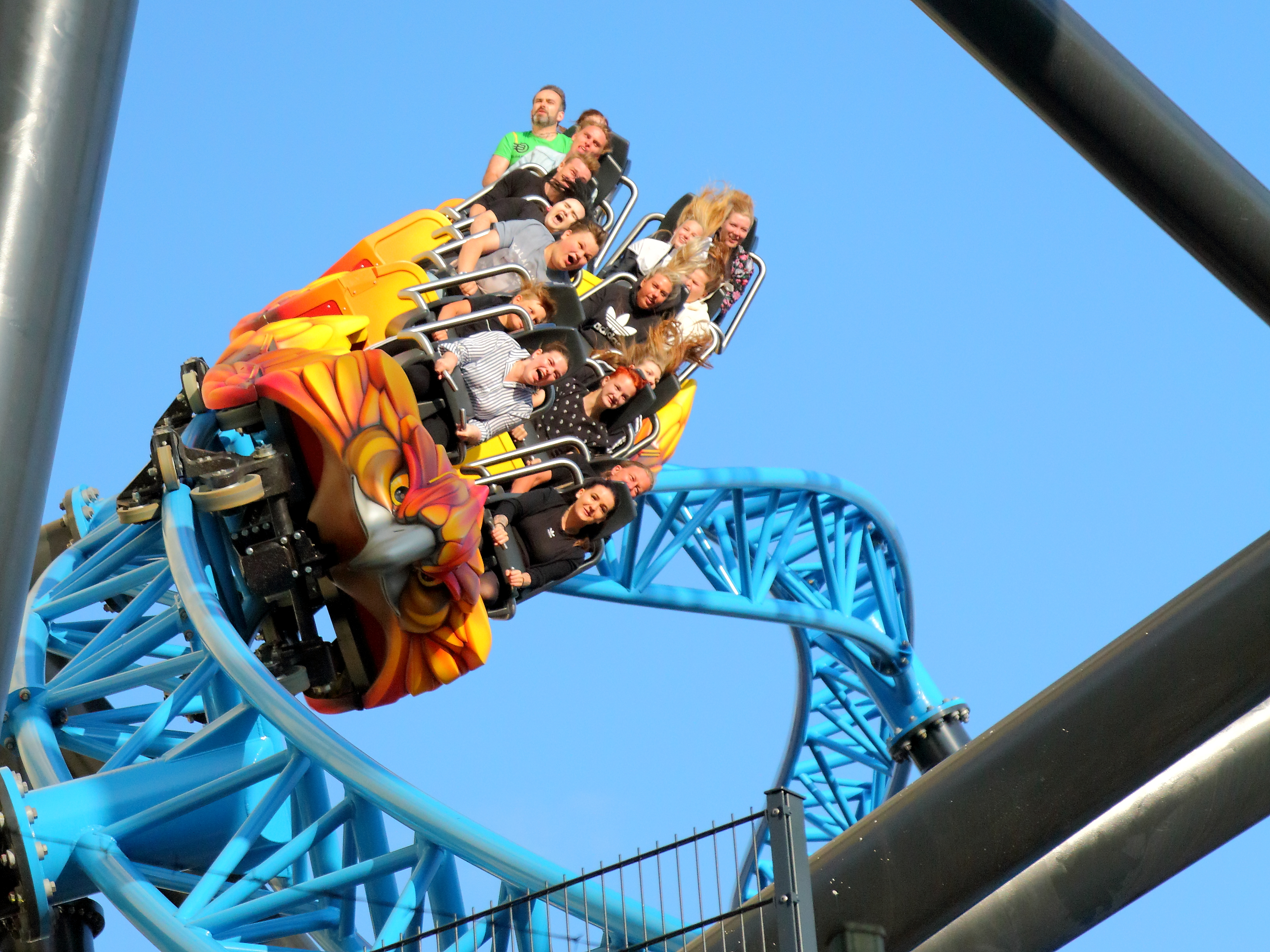 Airtime liefert. Daher haben wir uns für die ersten Fahrten die hintersten Reihe herausgesucht. Die erste Abfahrt bietet dann einen ganz seichten abhebenden Moment. Im Tal schüttelt es dafür ein wenig.
