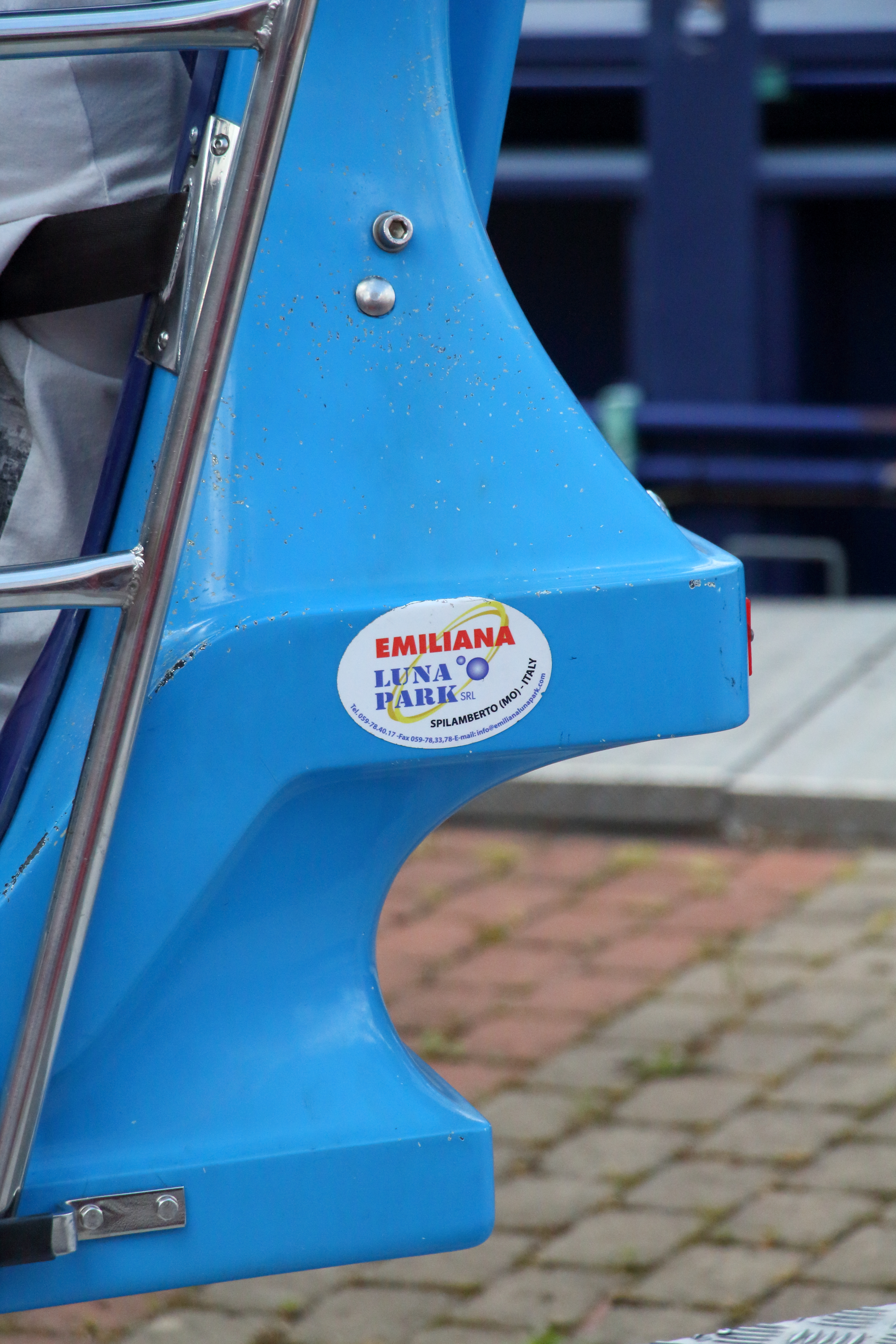 Die Bahn selbst ist mir schon aus dem Skyline Park bekannt, wenn auch nicht mit solch grellen Farben.