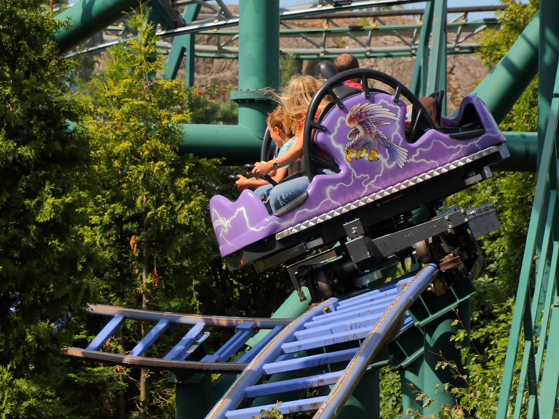 Airtime ein, die bis hinunter ins Tal anhält. Aber genau in der Dosis, dass es mir nicht zu heftig wird. Da stellt es auch schon mal einen Pferdeschwanz im 90° Winkel auf, aber eben nur auf den hinteren linken Plätzen, während die Haare rechts eher durchgewirbelt werden.