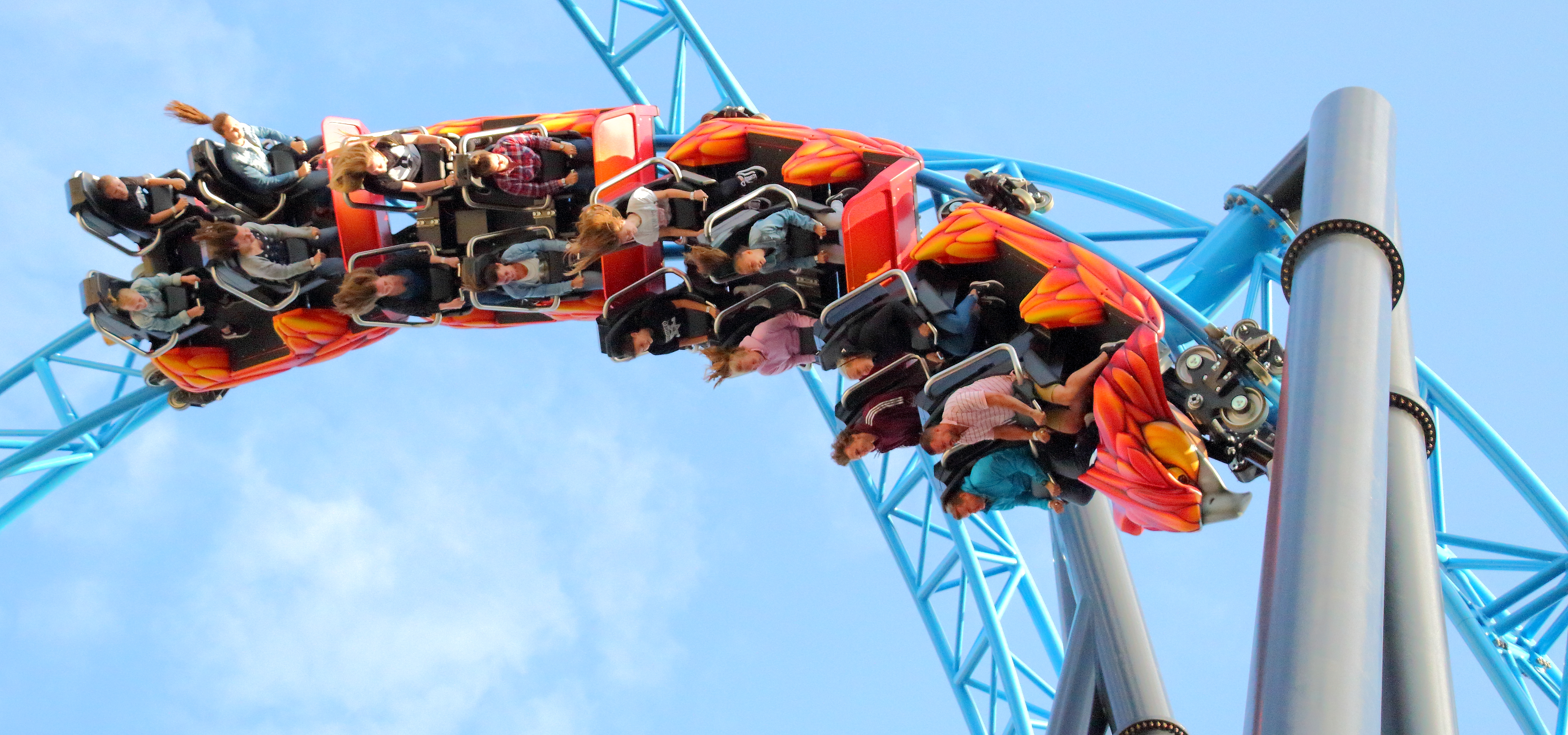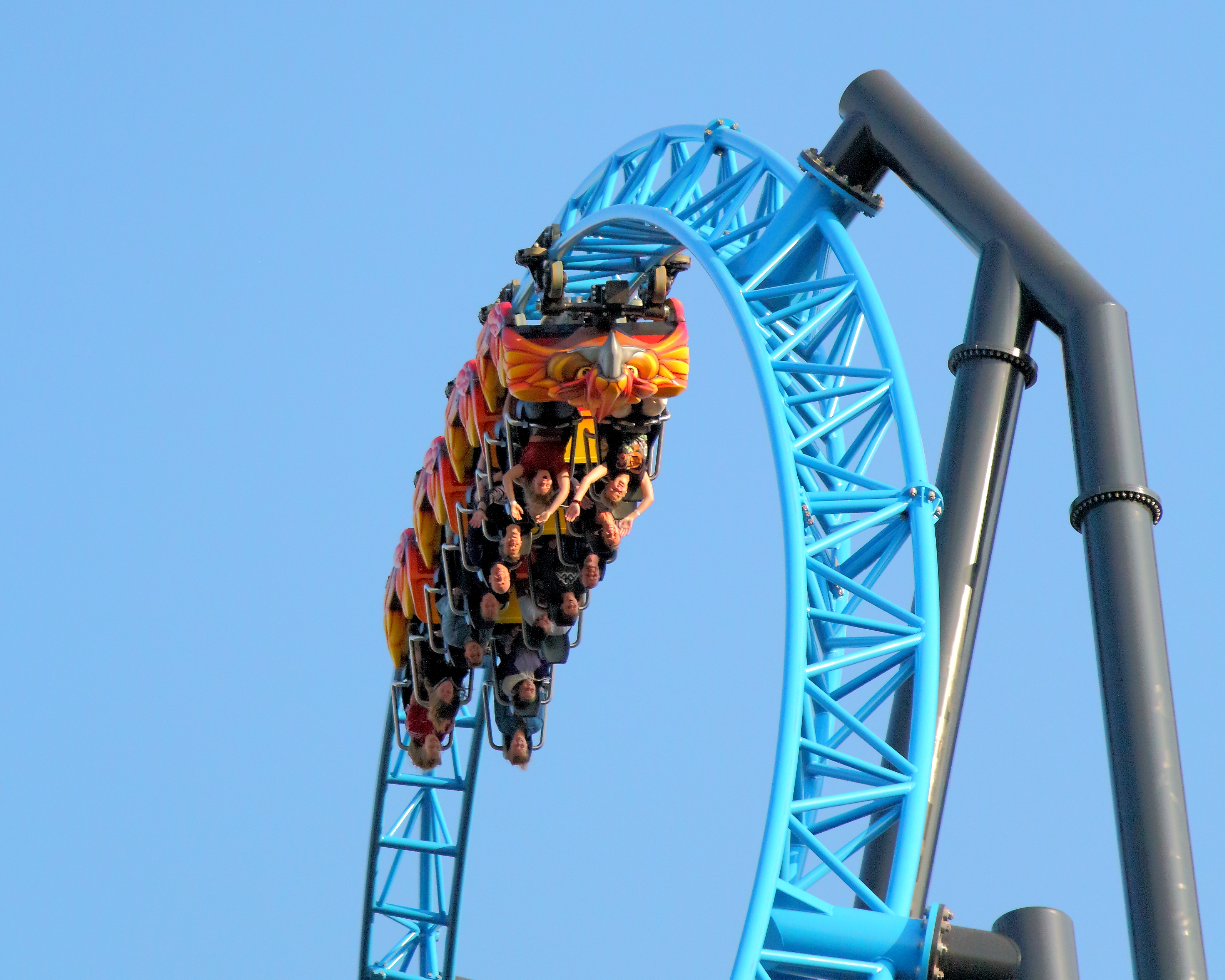 Die Einfahrt in die bei rcdb als Dive Loop bezeichnete Inversion, die ich eher als Zero-G-Stall beschreiben würde.