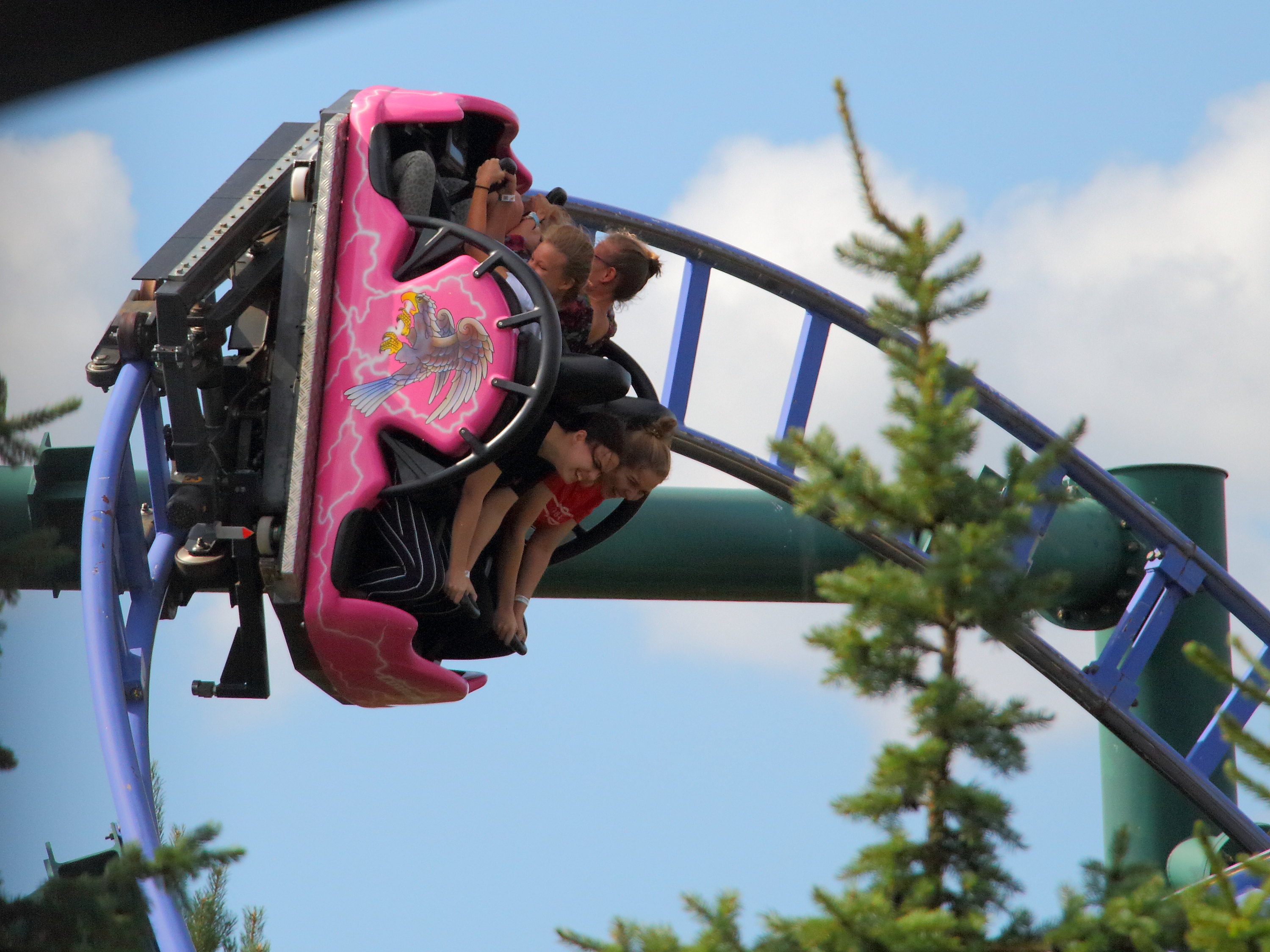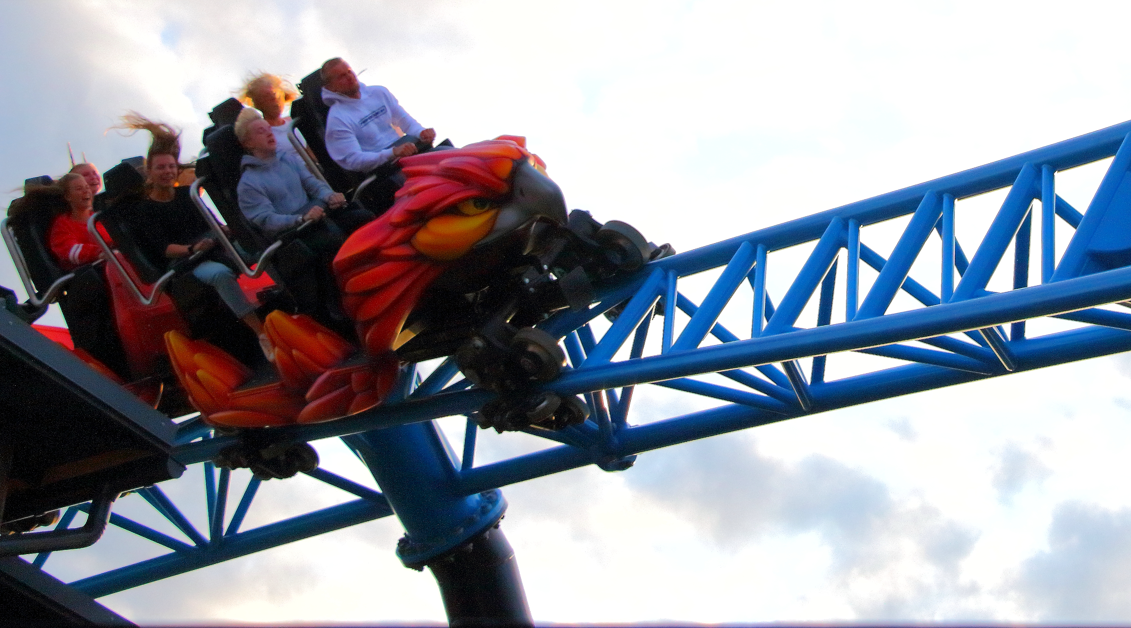 Und dann einen kurzen Schlenker nach rechts, weshalb sich der ein oder andere Fahrgast nach rechts lehnt. Doch dann denkt sich der Vogel: "Überraschung, war nur angetäuscht!"