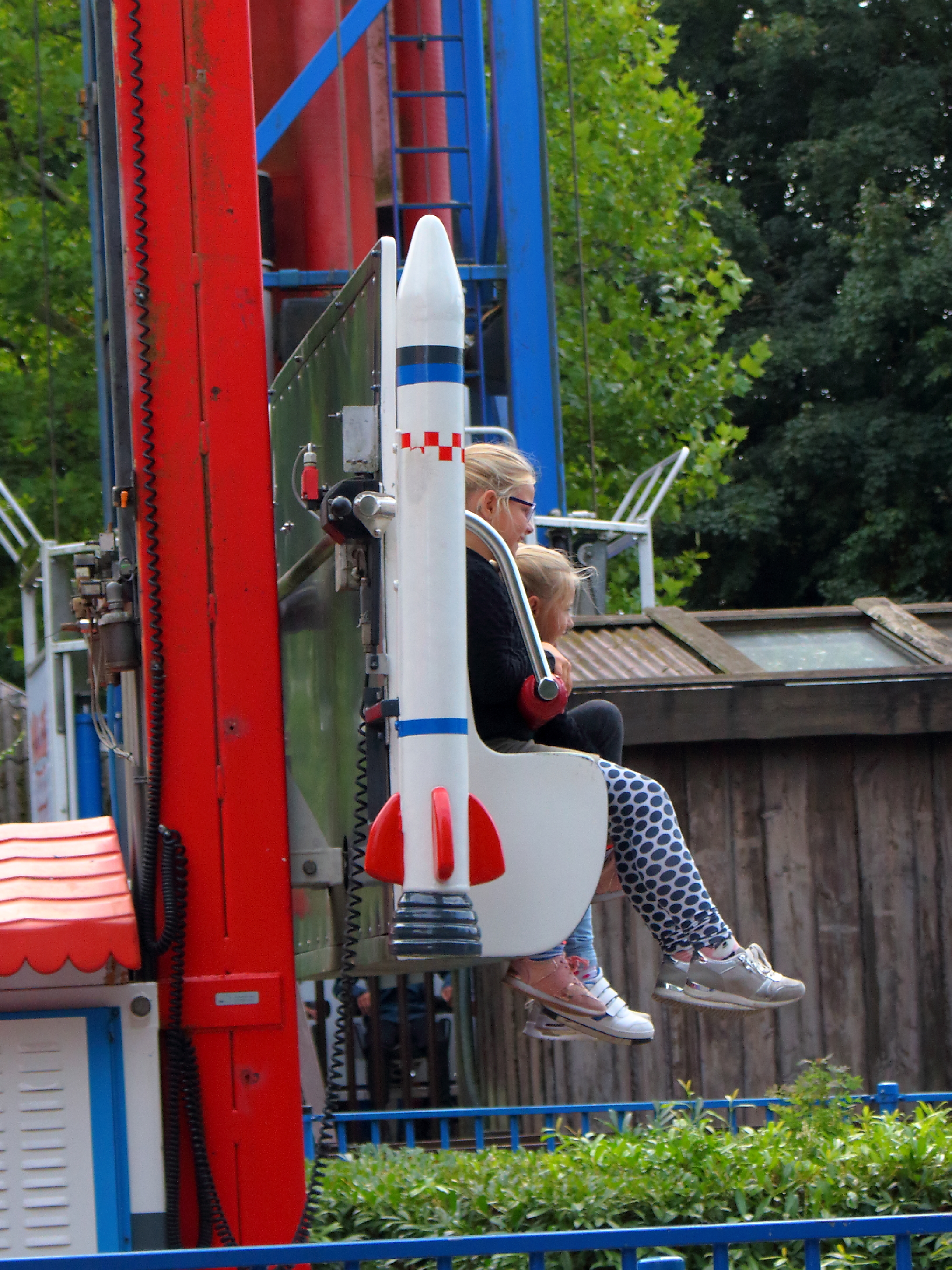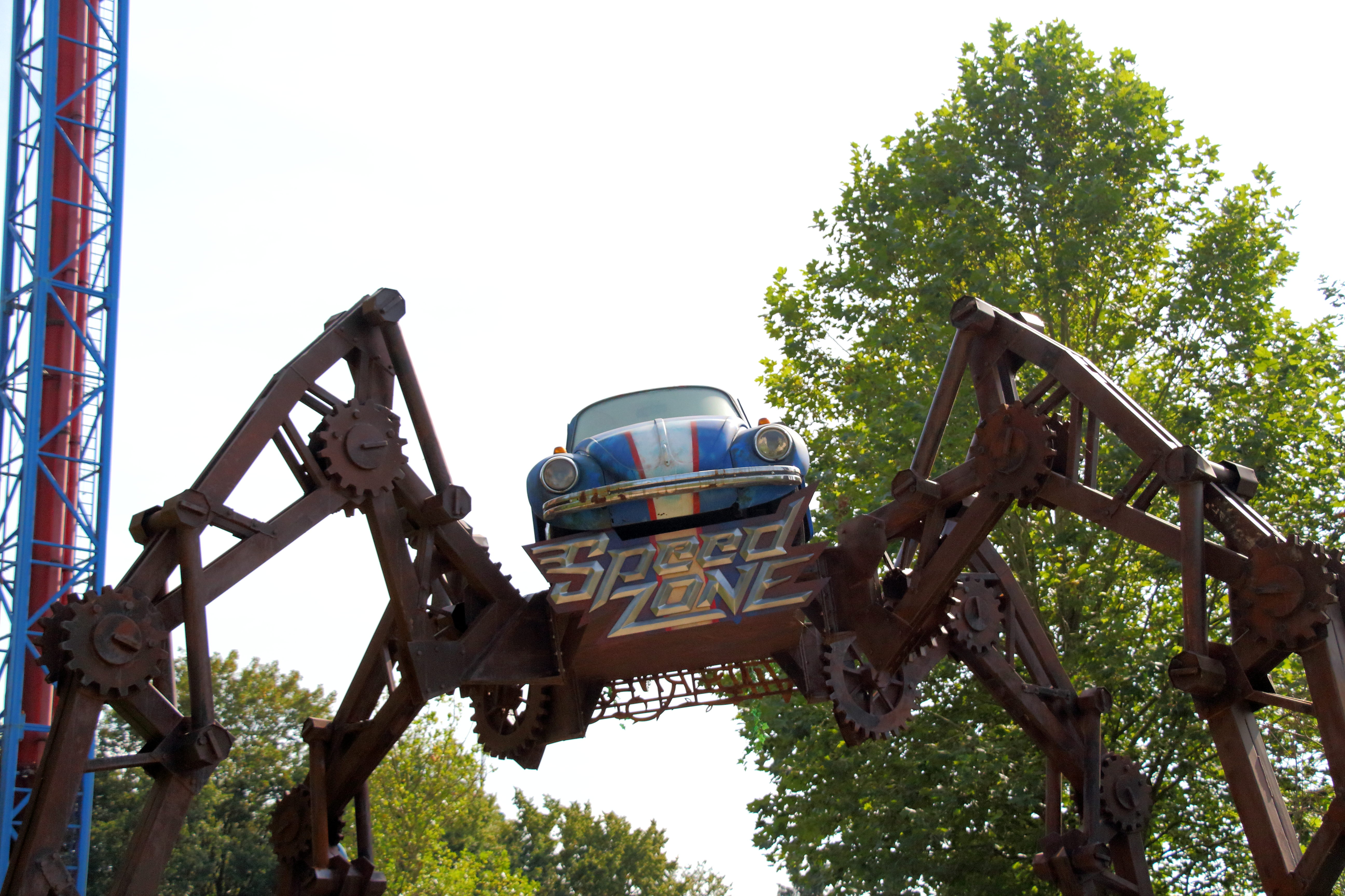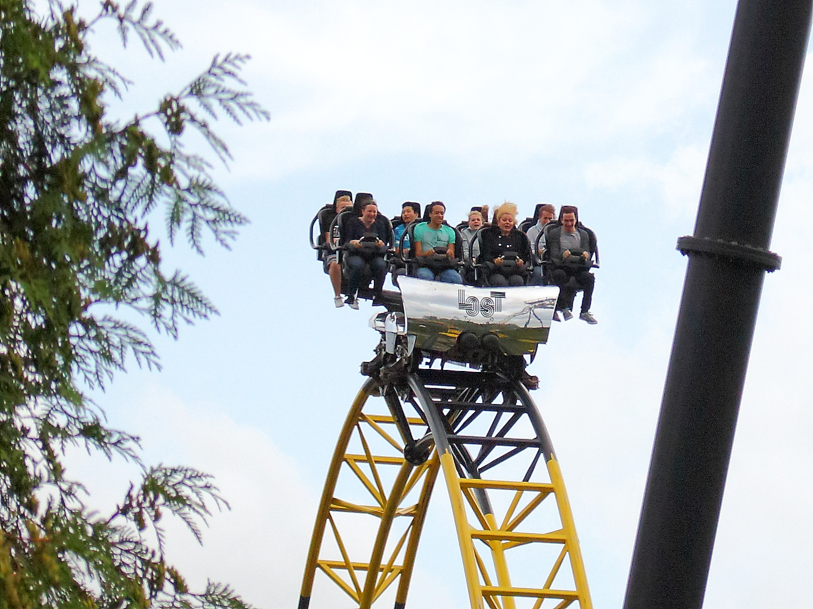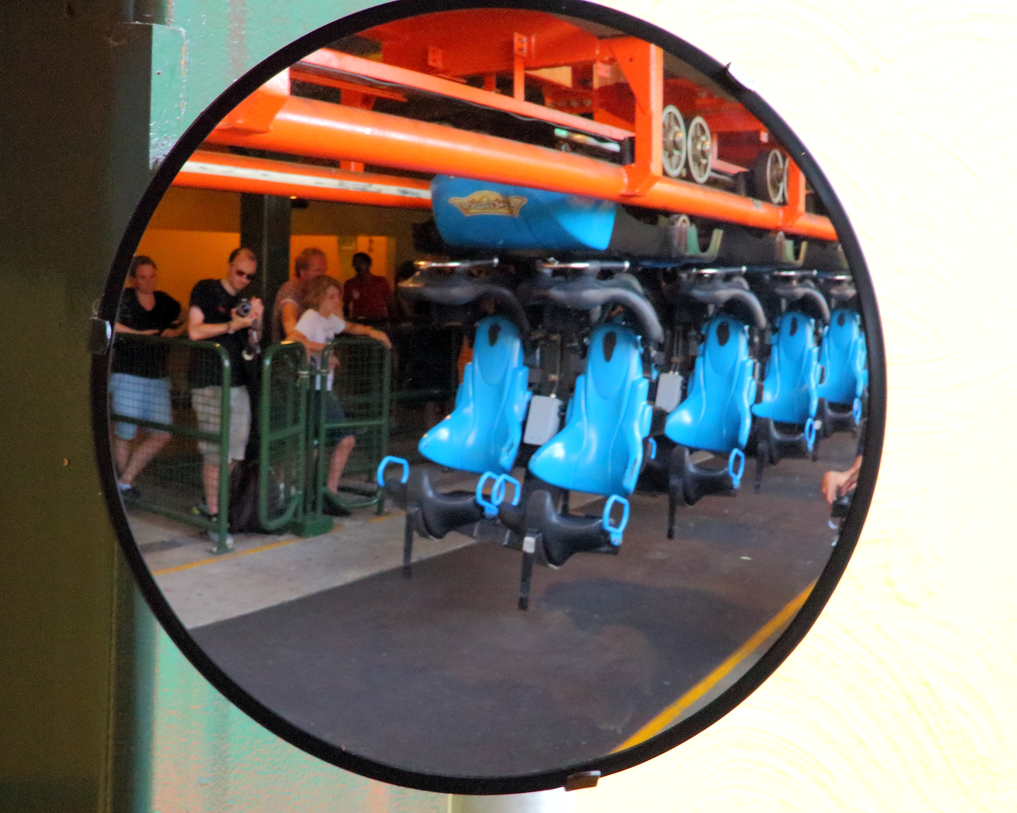 Der Space Shot war Anfang August noch geschlossen, beim zweiten Besuch sind die benötigten Ersatzteile dann wenigstens geliefert gewesen. Die Single Rider Line ist erstaunlich flott voran gegangen.