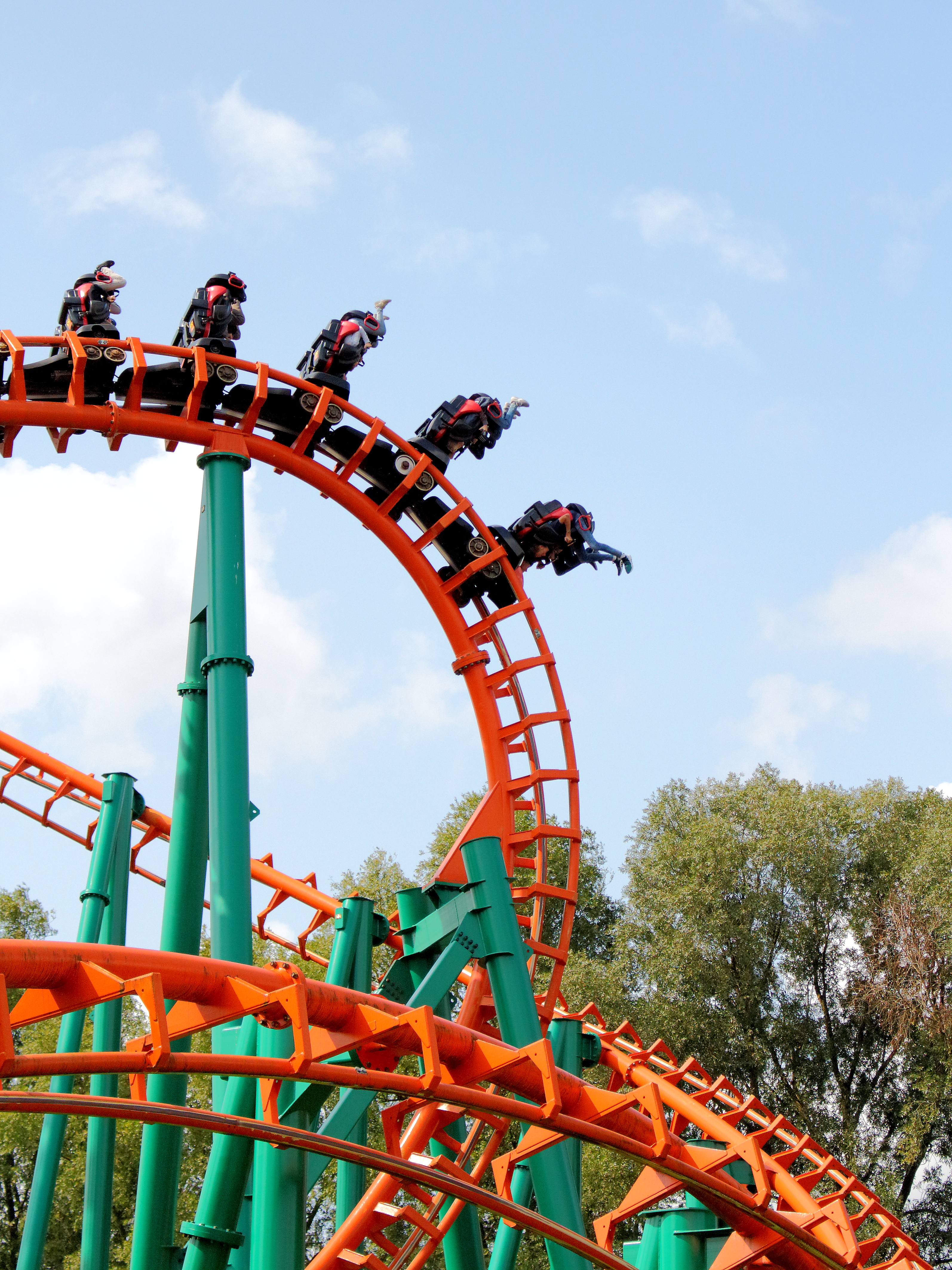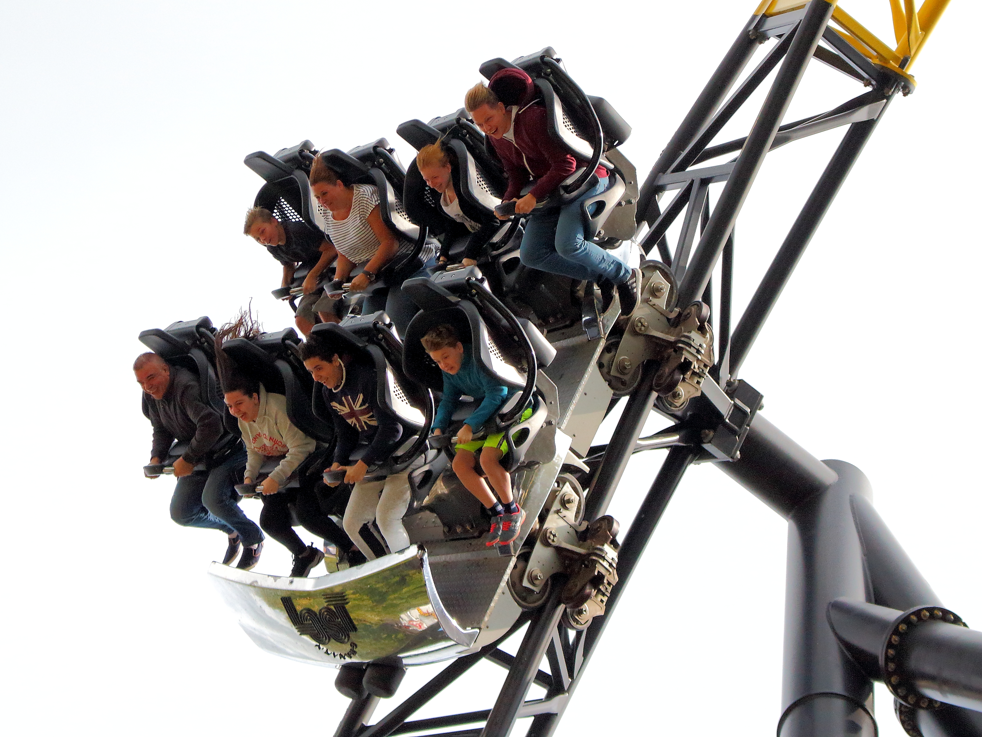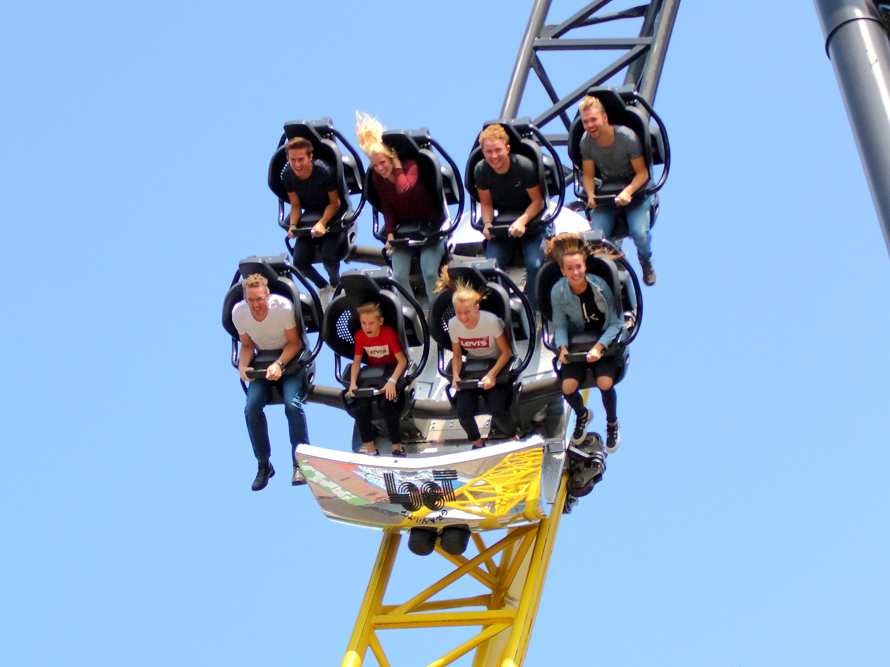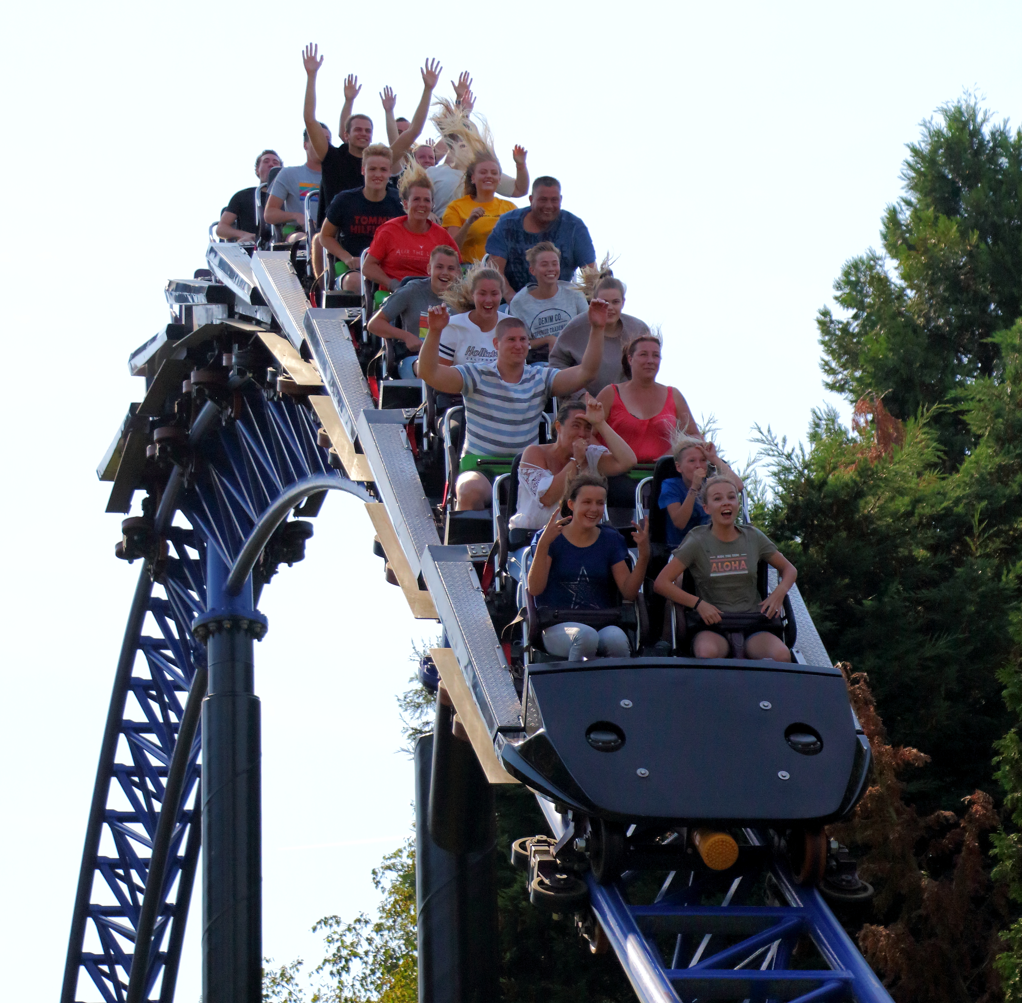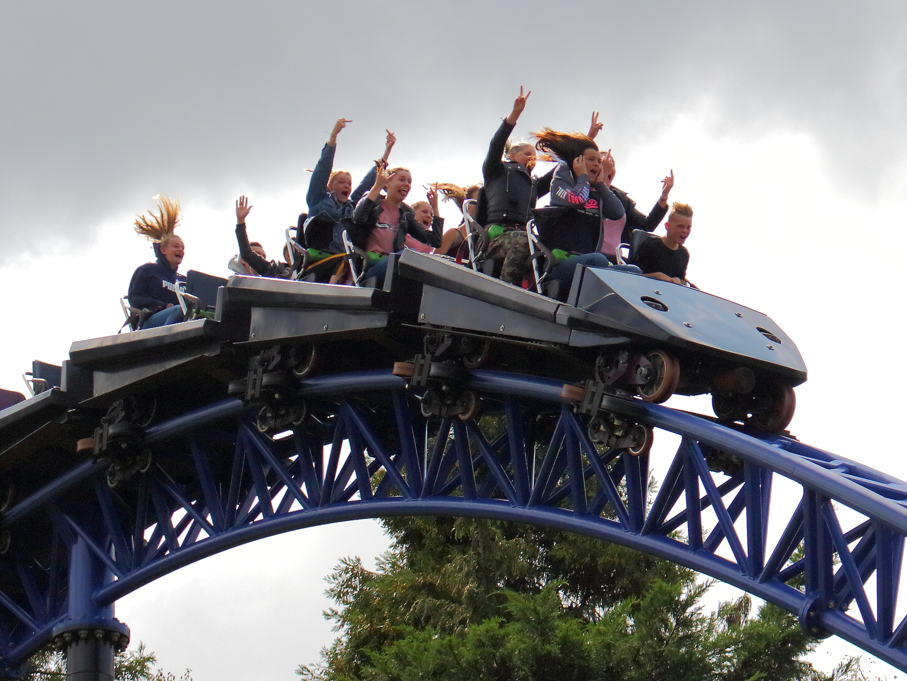 Airtime Mix mit negativer und seitlicher Power, wobei der Bügel einen dabei zurück in die Horizontale zieht, während links einen der Sitz schon etwas früher zurück auf den Hosenboden holt. Dabei fehlt mir aber auf den vorderen Plätzen etwas die Geschwindigkeit.