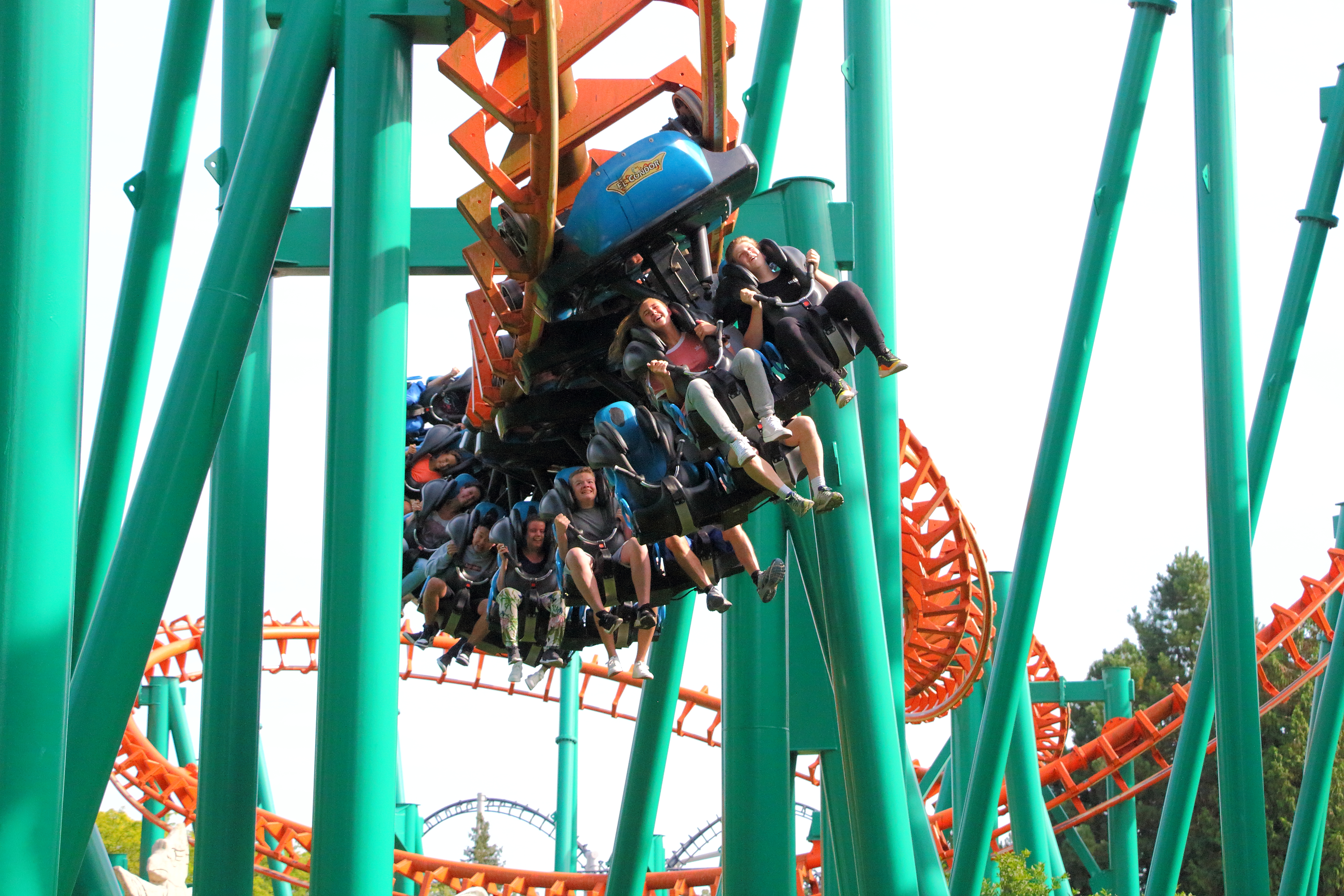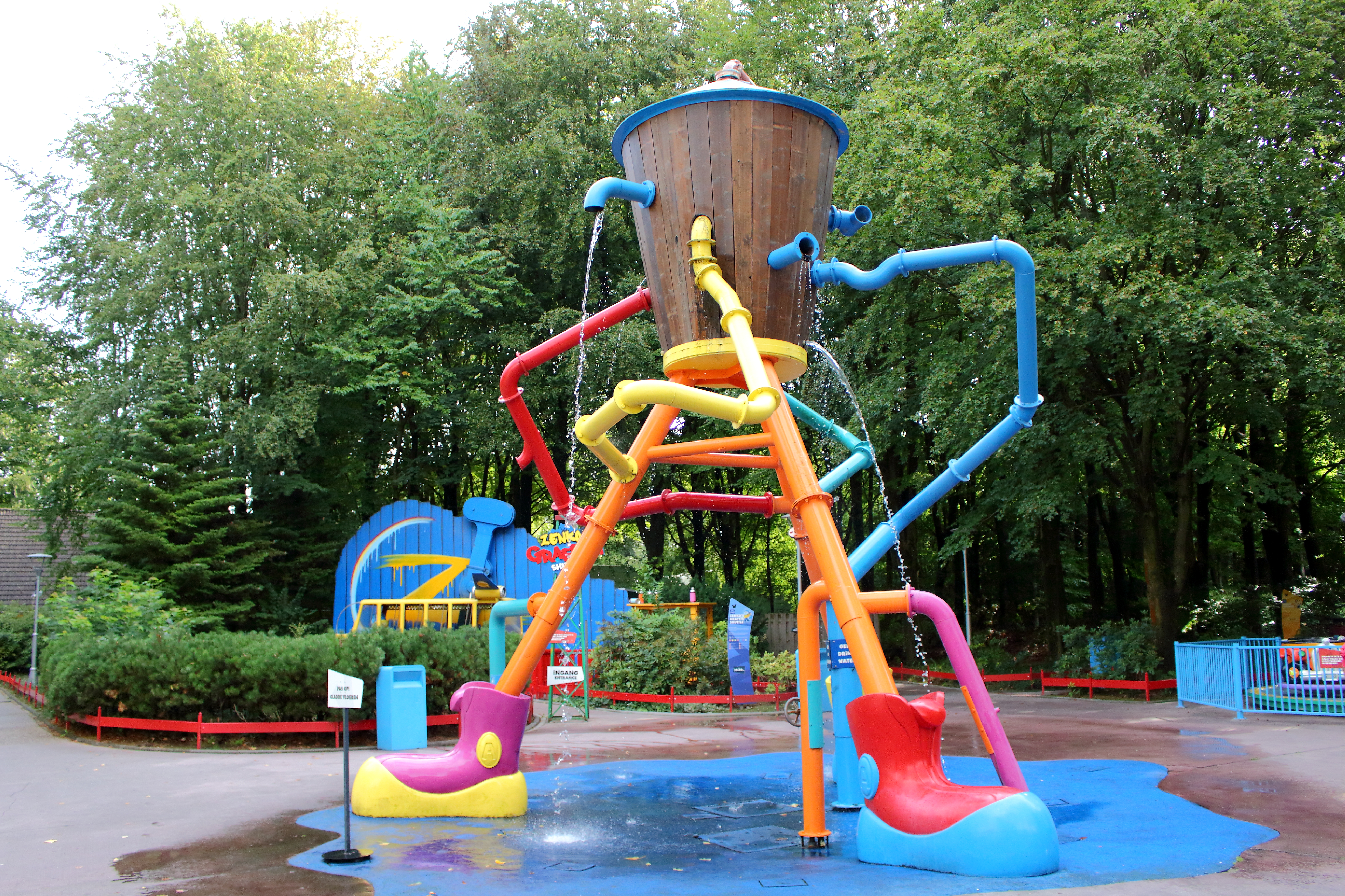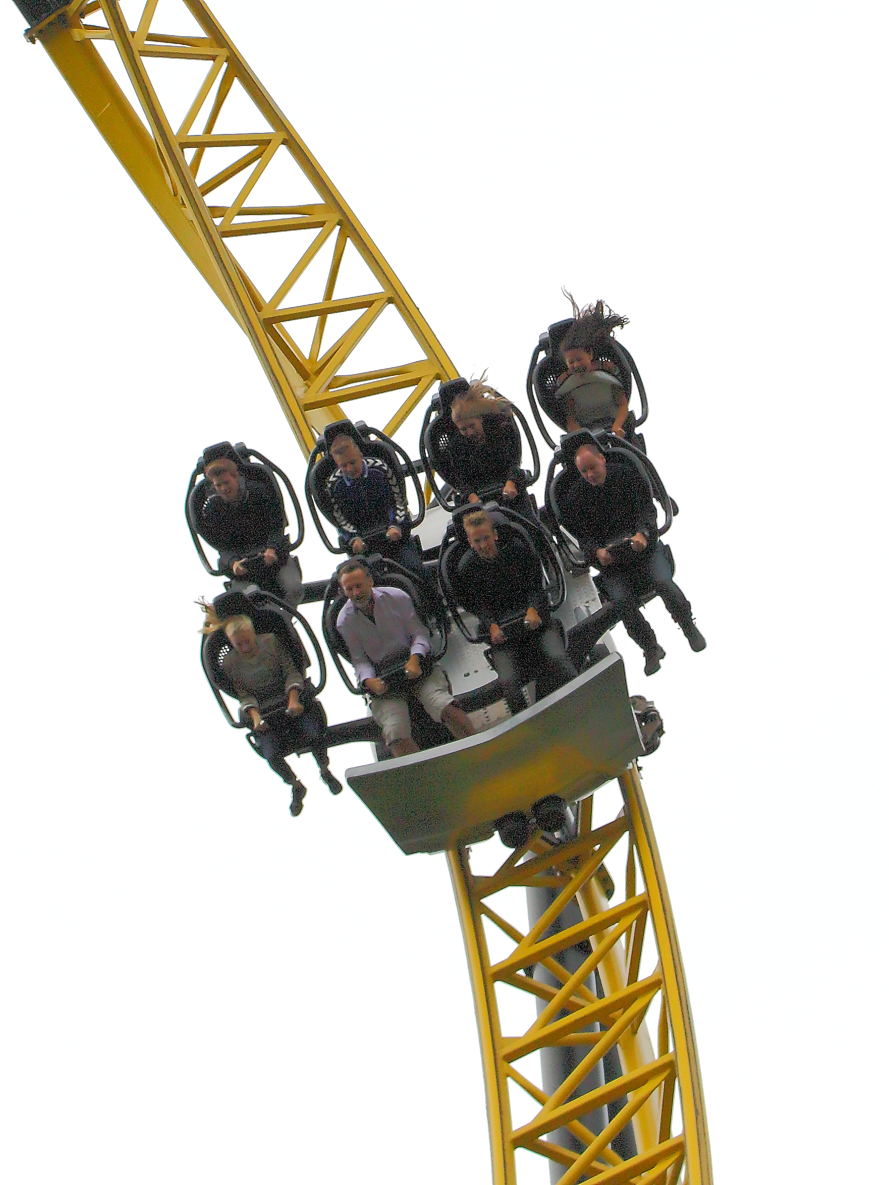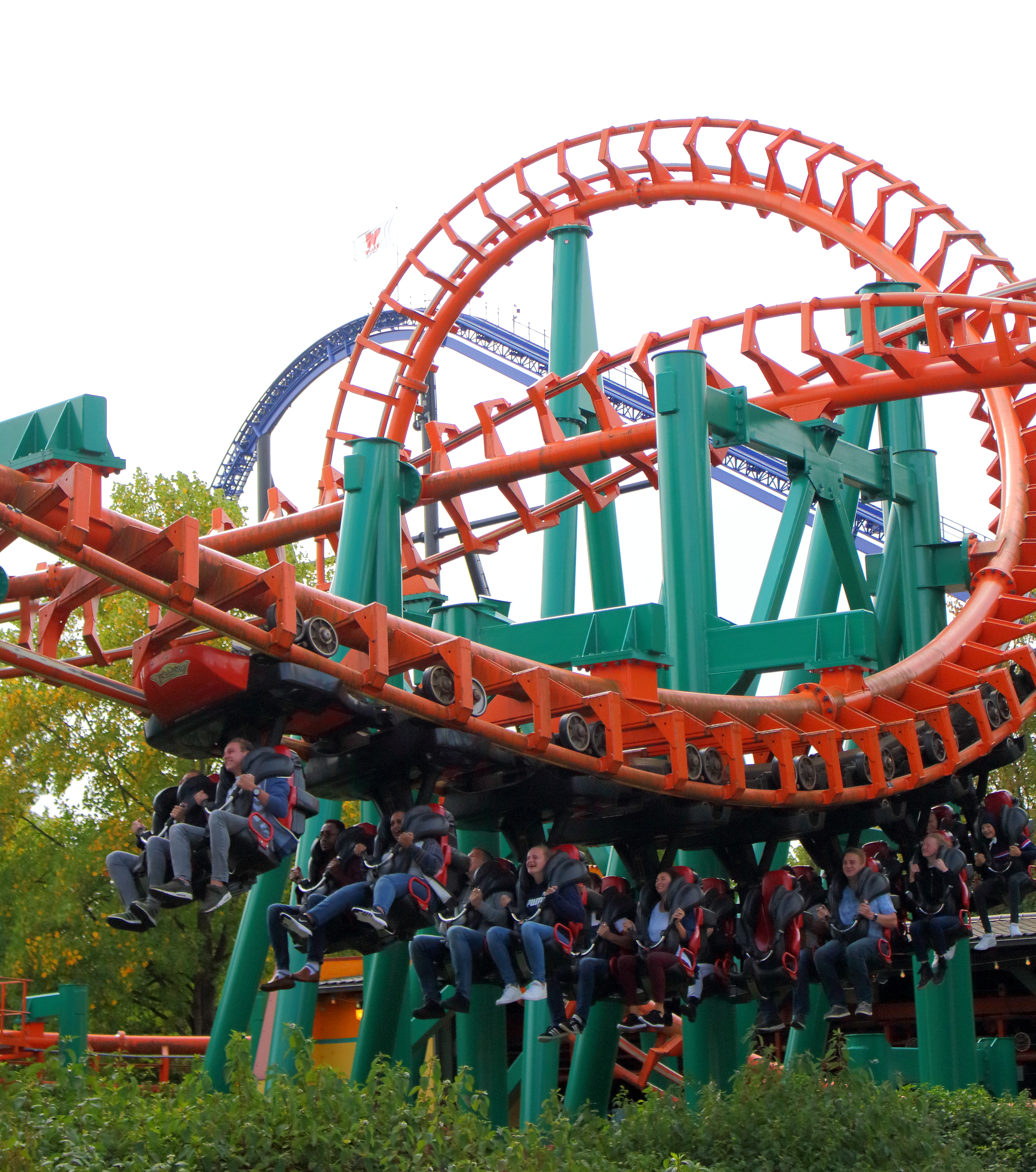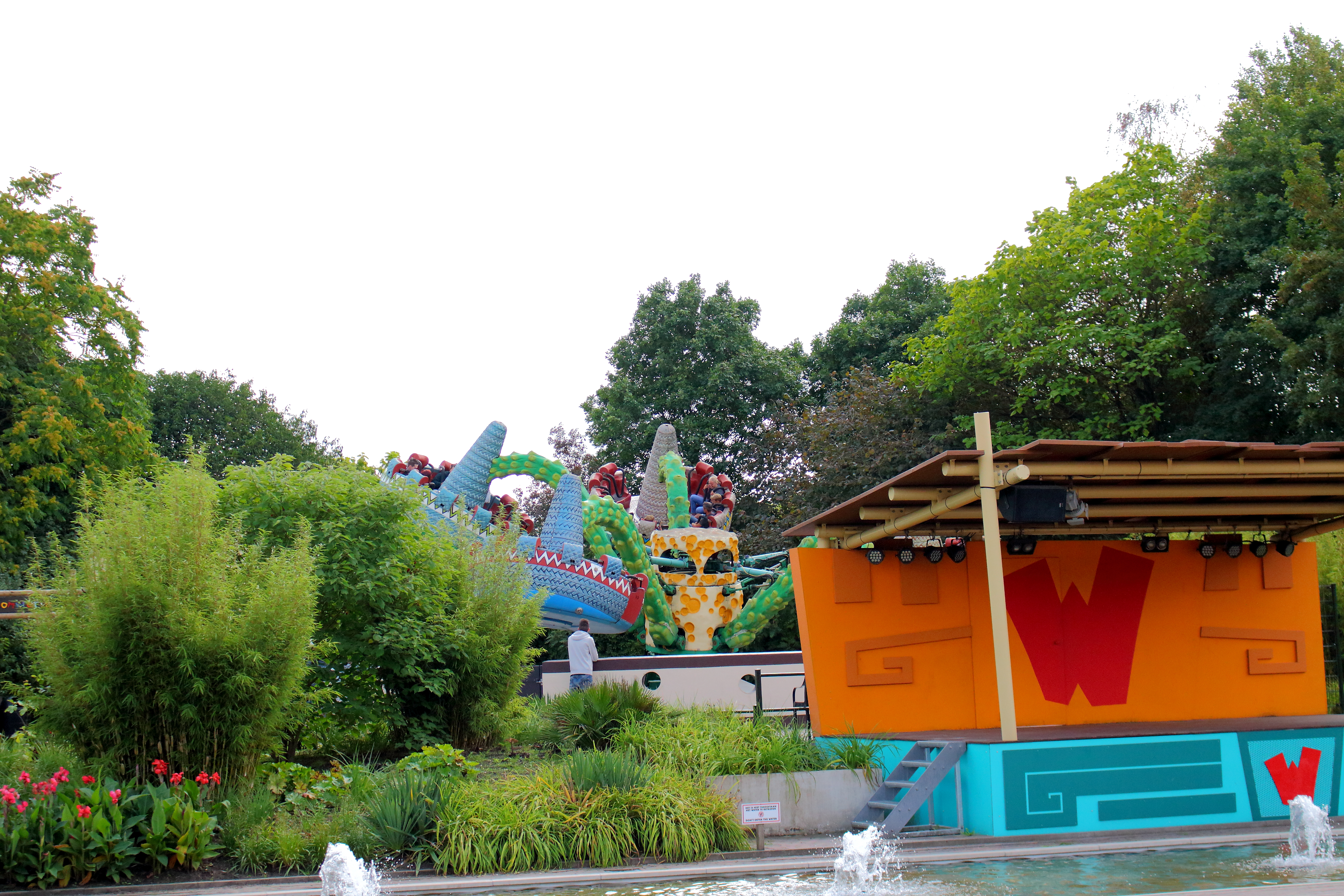 Mack-Bahnen typisch auch passend zur Attraktion daneben ein loss of gravity. Und ein wenig nass wird es auch noch.