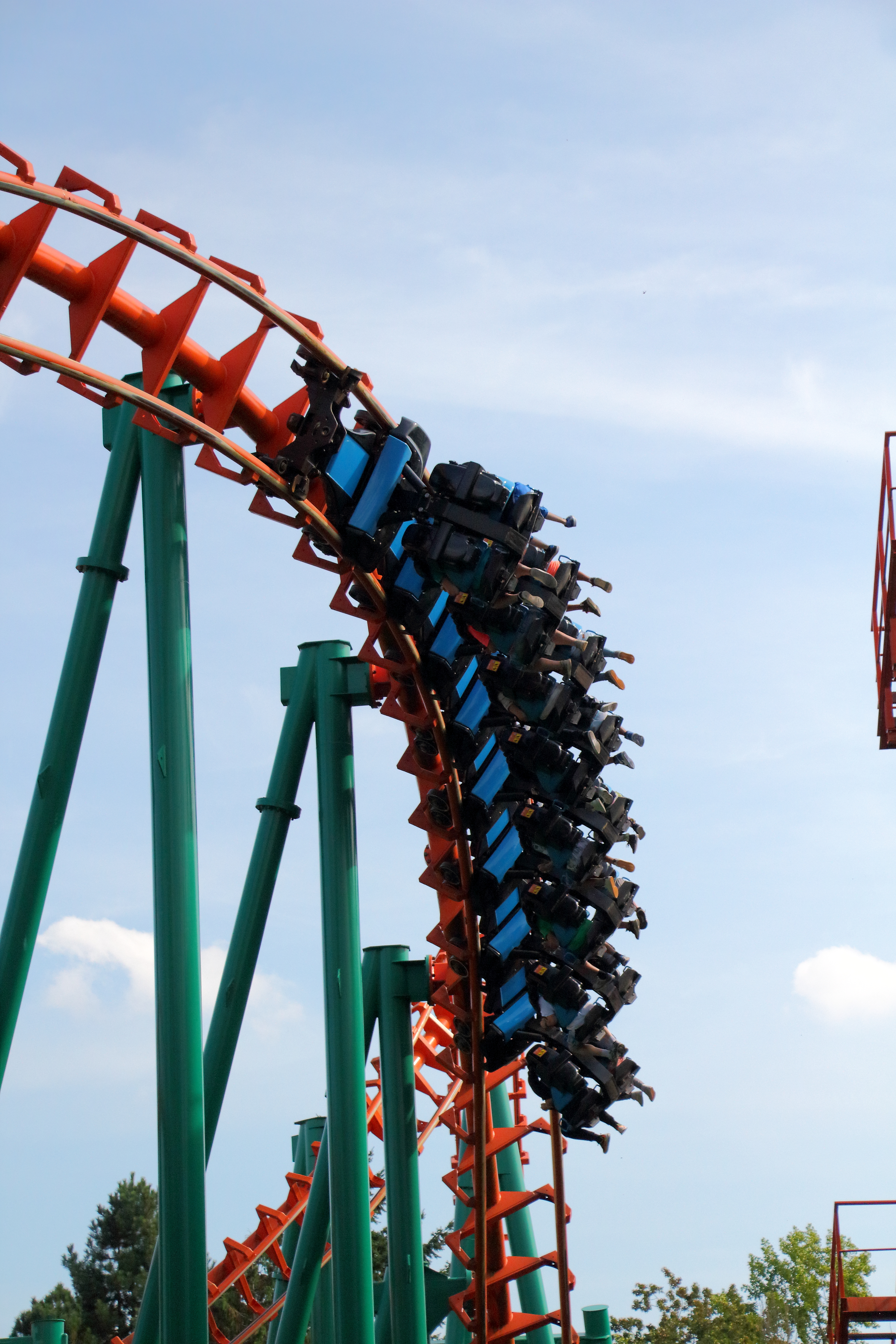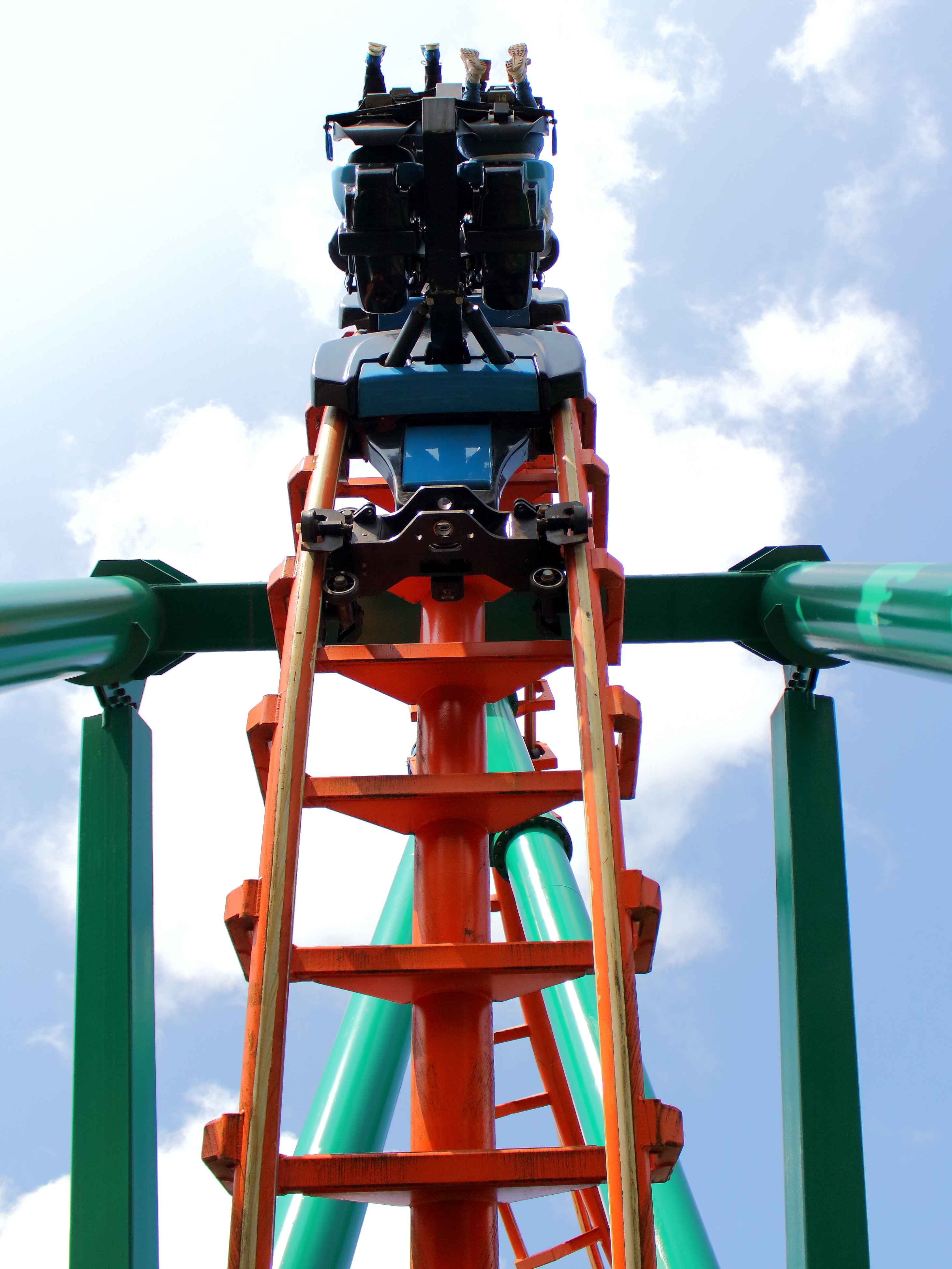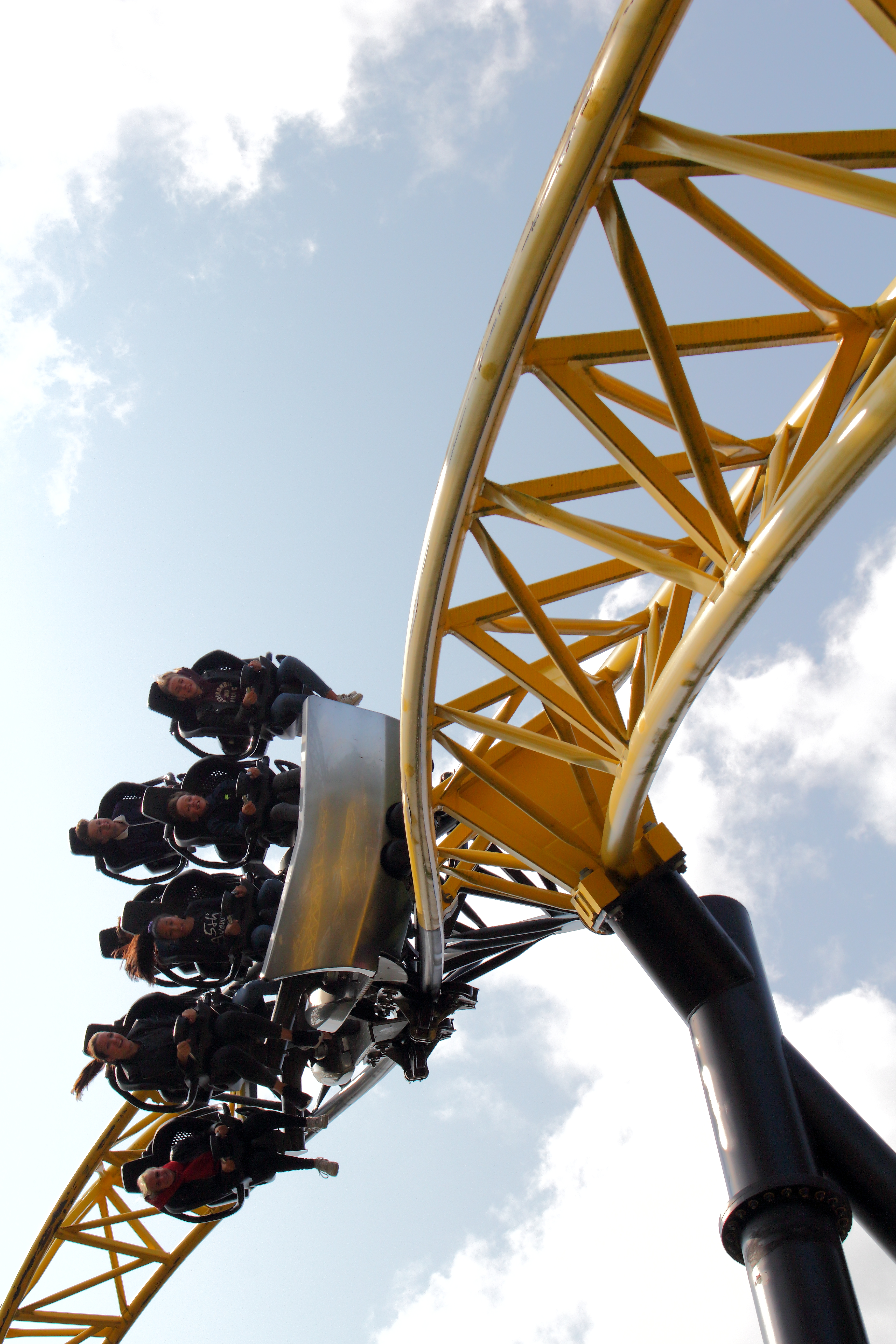 Wie mir von Wildfire bekannt zieht die um 4,5 Meter nach oben verlagerte 1. Abfahrt ab etwa der Mitte des Zuges ordentlich die Mitfahrer in den Bügel.