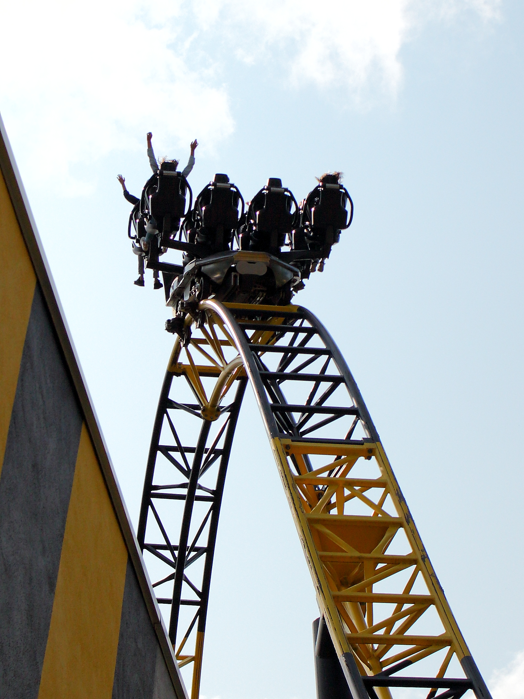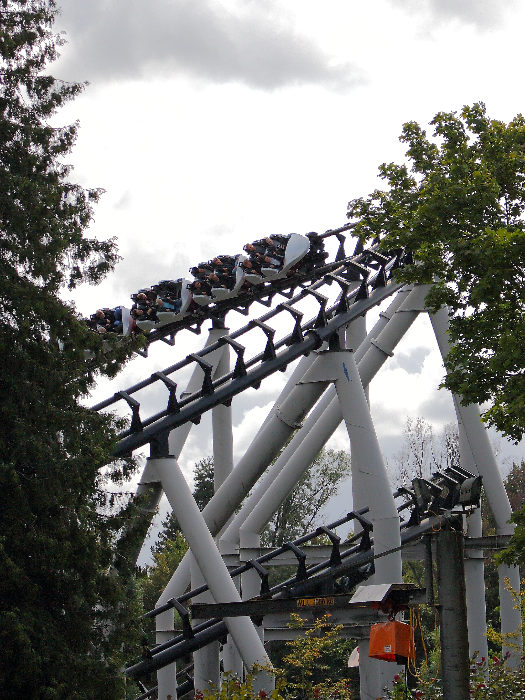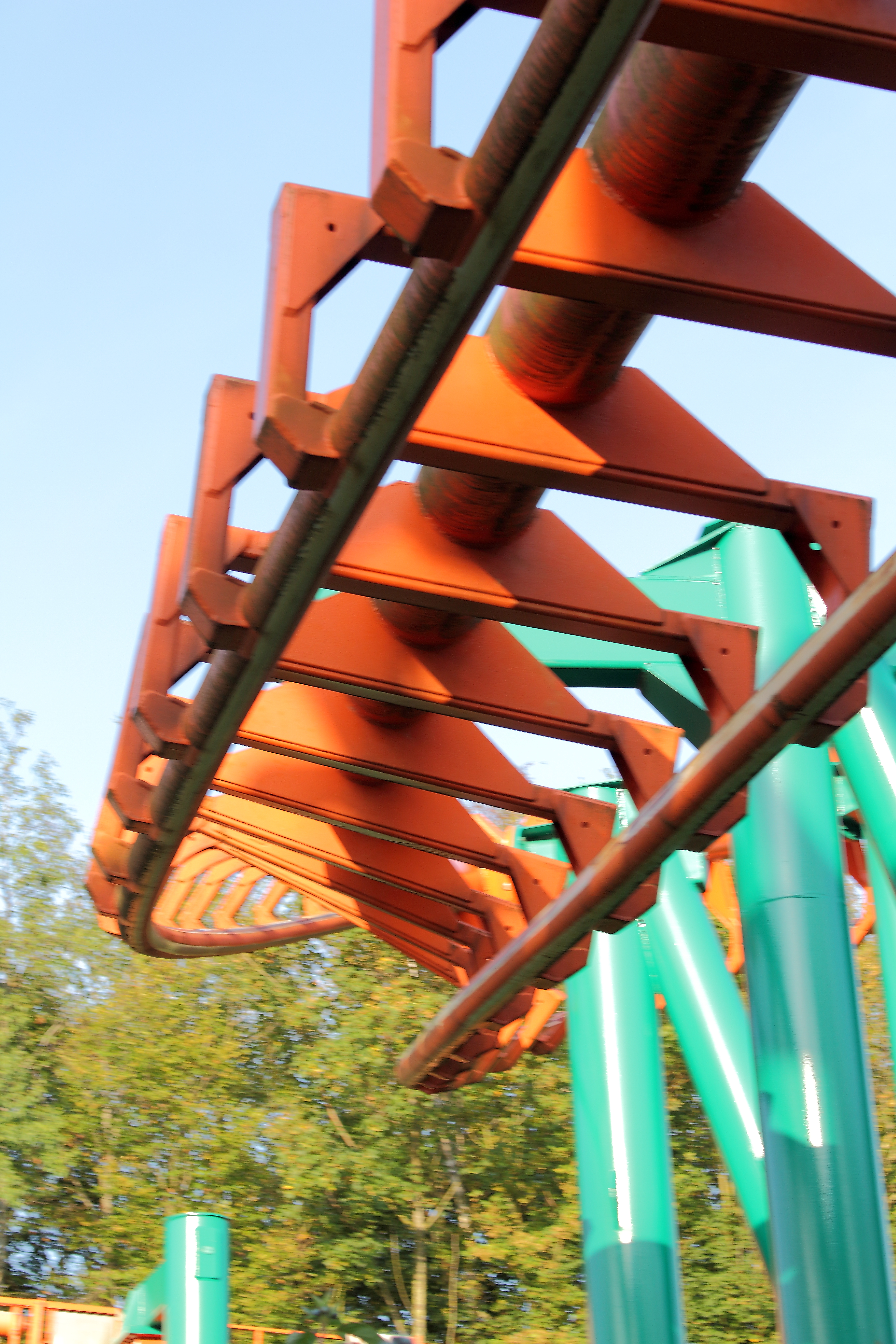 Airtime-Fans. Nur stehe ich auf sowas nicht, v.a. in Anbetracht des Out-of-Shinebone-Feelings. Irgendwie kommt es mir auch so vor, dass das Walibi soviele Elemente wie möglich in die Bahn quetschen wollte.
