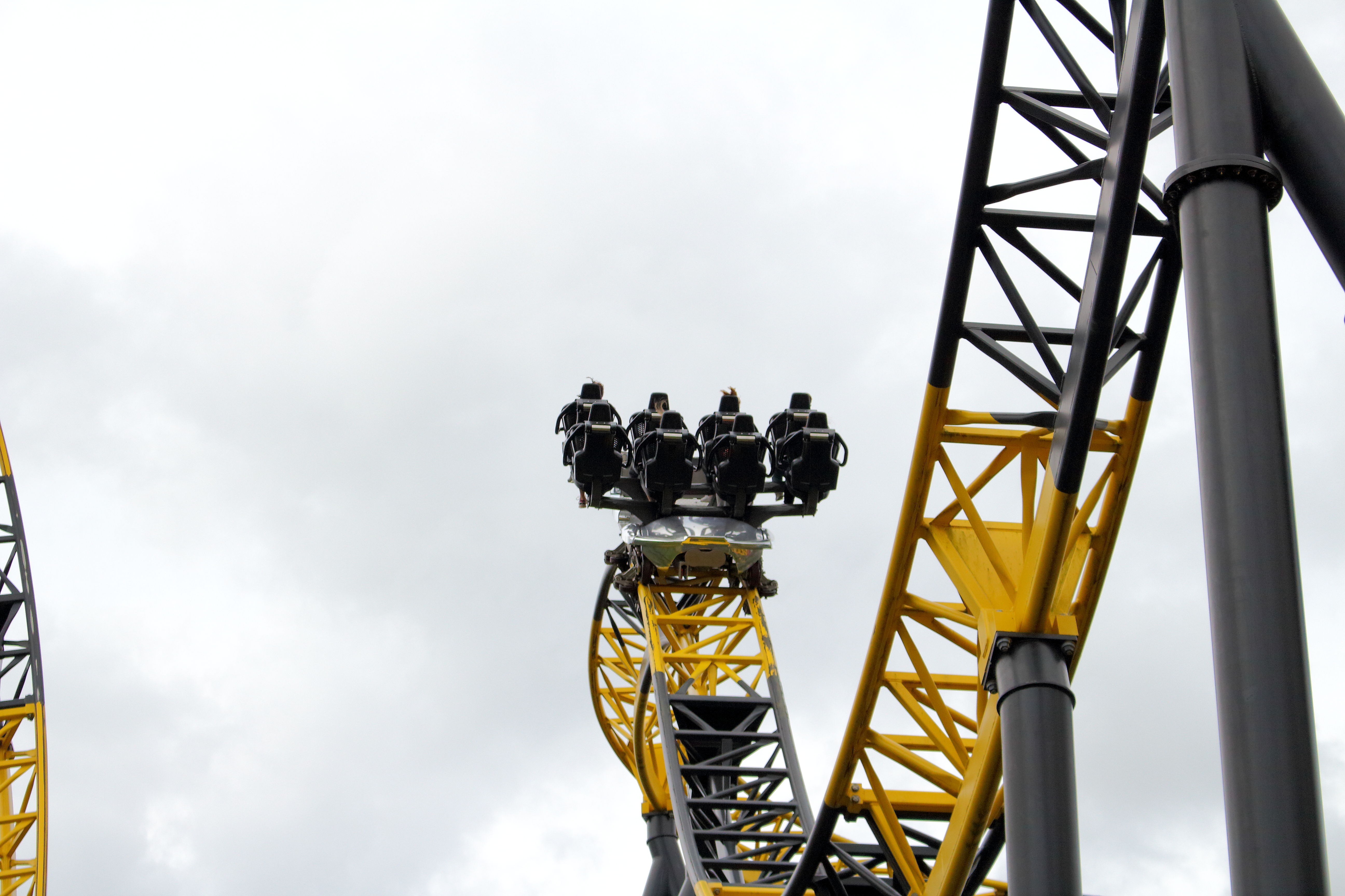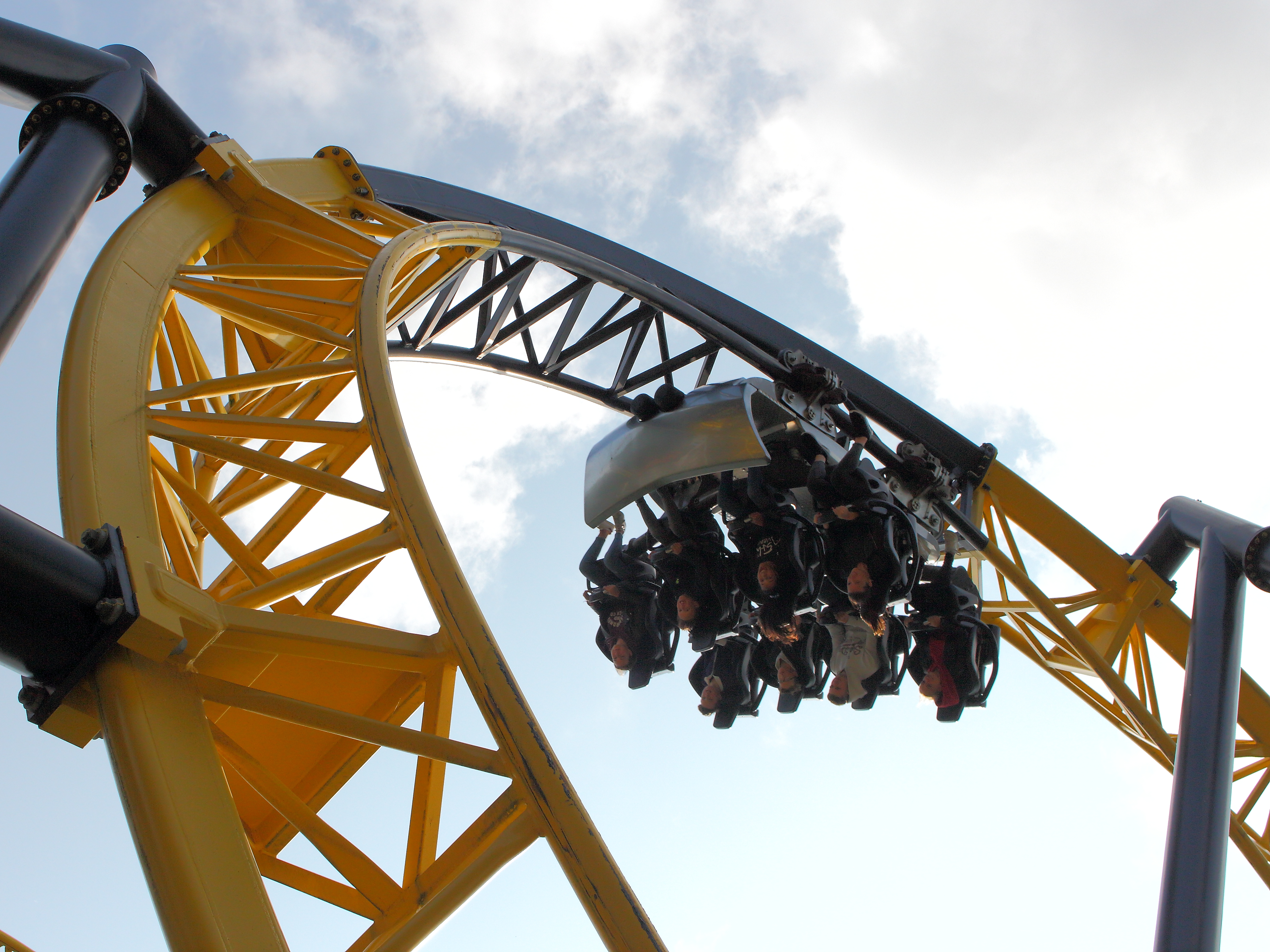 Auch wenn ich die Bahn lieber mit den normalen Bügeln fahre, die den Oberkörper nicht ganz so arg einengen. Der Druck im Looping bei der Rückwärtsfahrt bleibt aber trotzdem ziemlich genial.