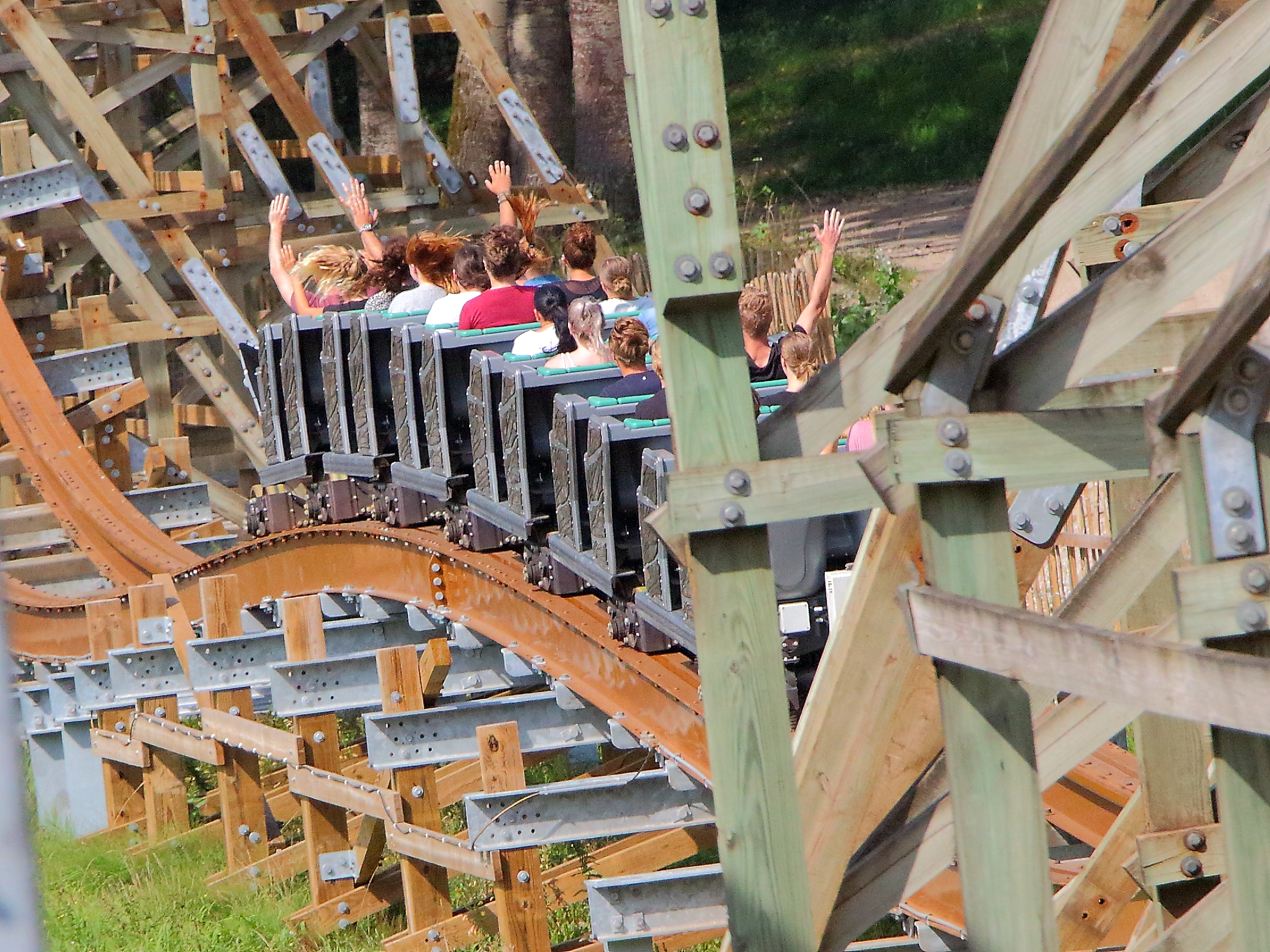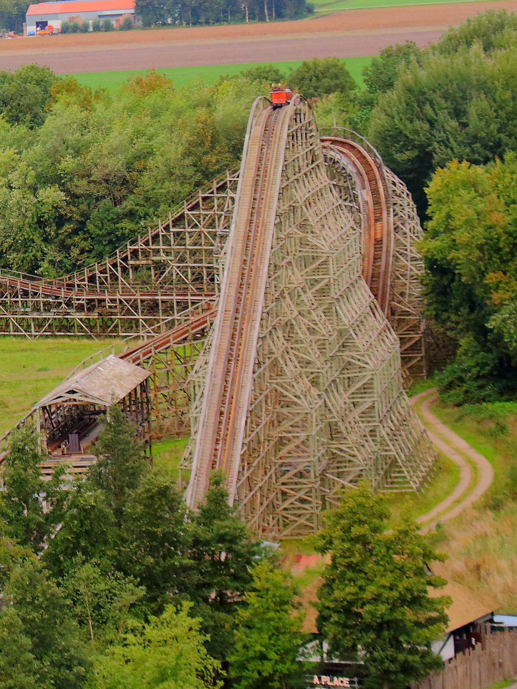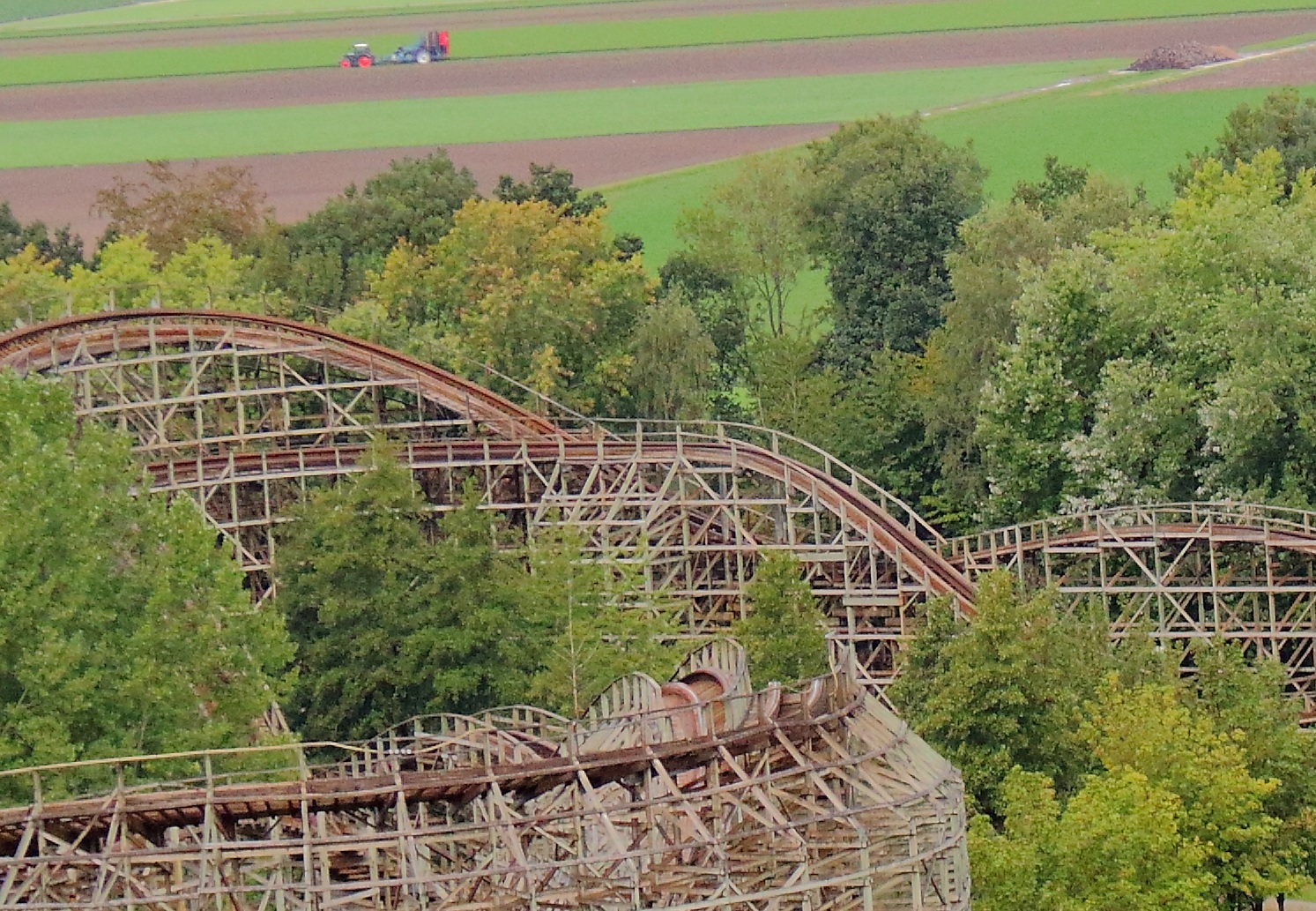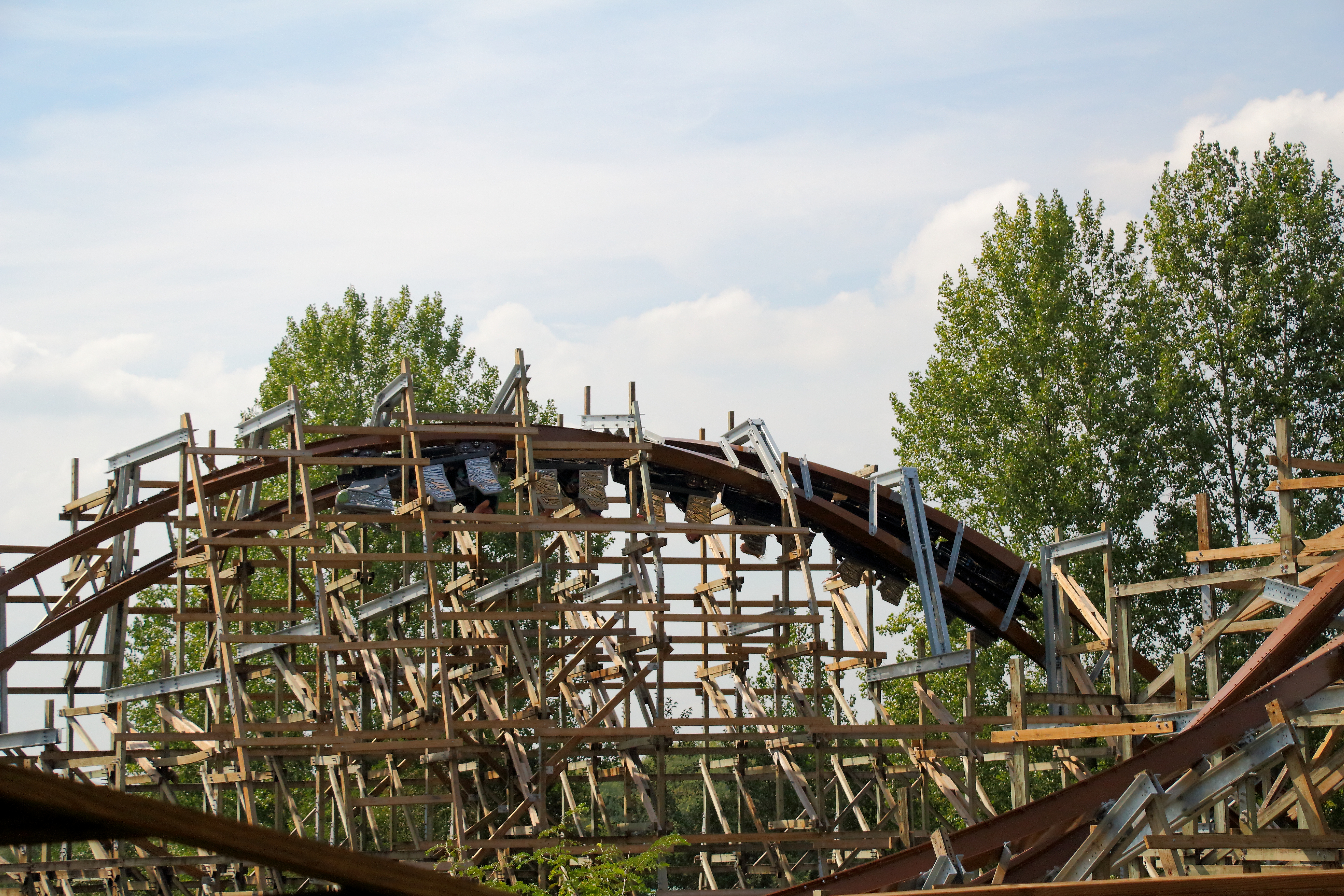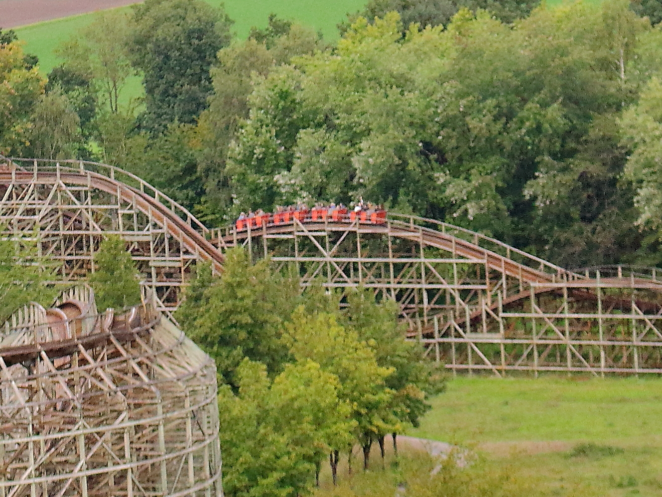 Vekoma, wie sollte es auch anders sein). Wobei ich gestehen muss, dass mir Loup-Garou mit seinem Double Down und etwas mehr Abwechslung noch etwas besser gefällt. Den Thundercoaster nehme ich ohne seine richtigen Züge aus dem Vergleich heraus. Trotzdem tut es weh, dass ich dieses tolle Stück Holz nicht mehr fahren kann und habe ihn Anfang August schmerzlich vermisst, v.a. da das Nachfolgermodell nicht fahrbereit war. Und egal wie toll Untamed in der ersten Hälfte der Fahrt auch sein mag, für mich geht einfach nichts über das Rattern eines Holzachterbahnzuges auf hölzernen Schienen.