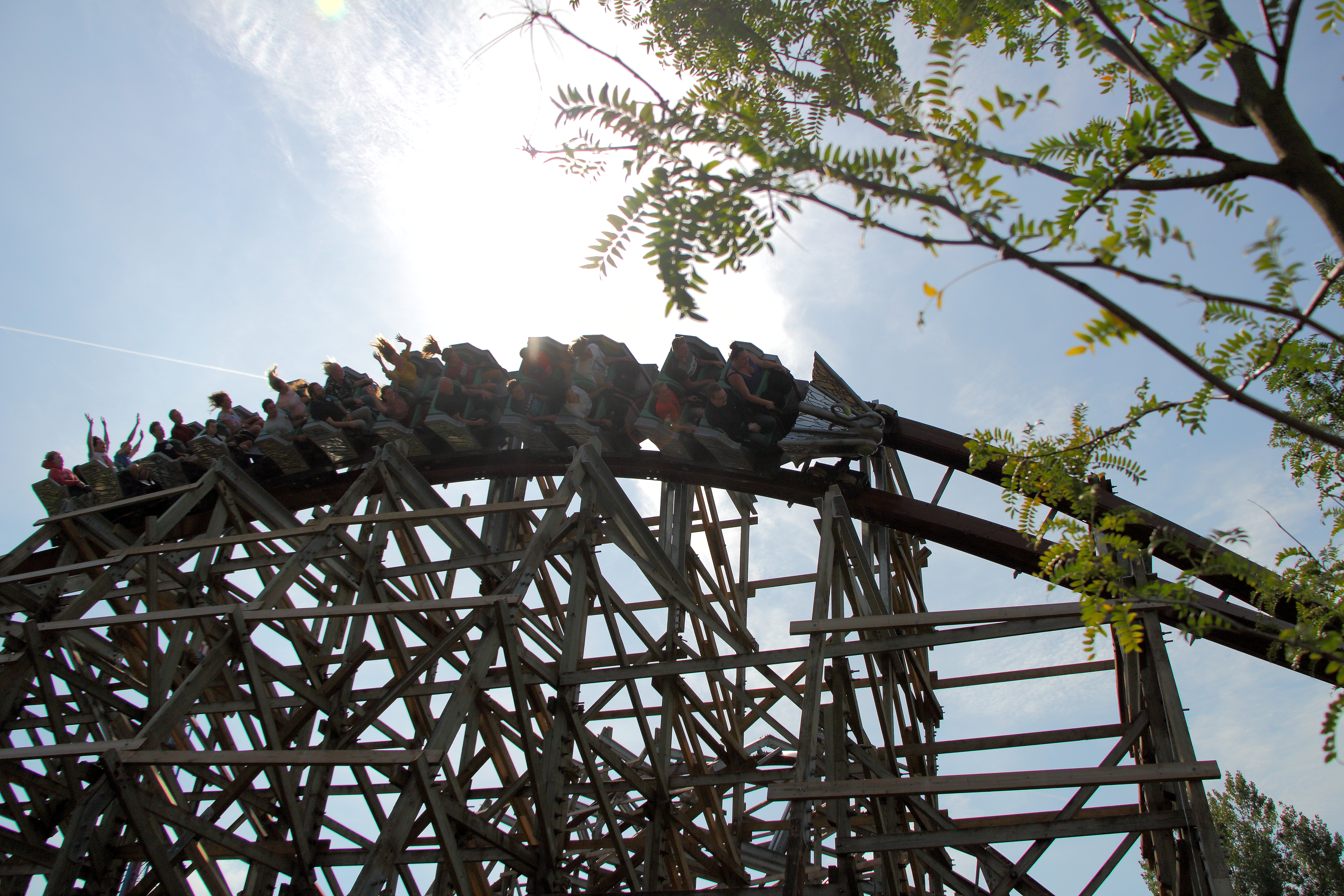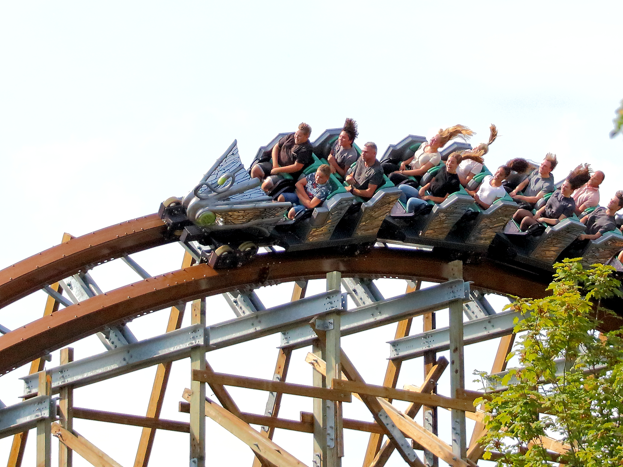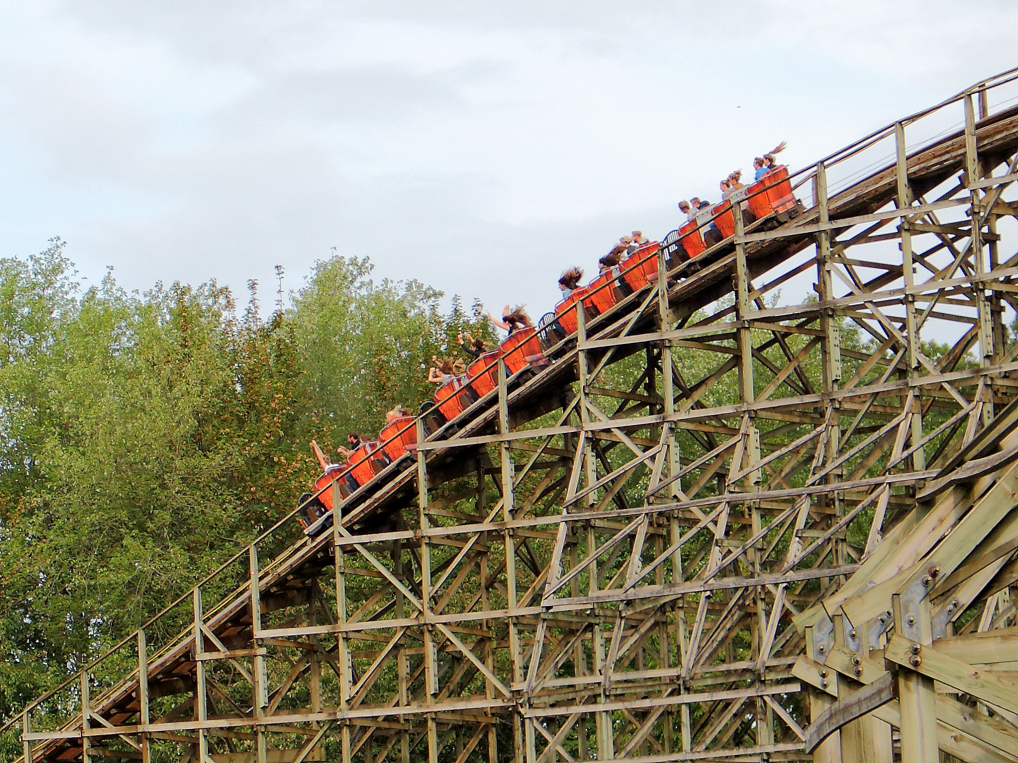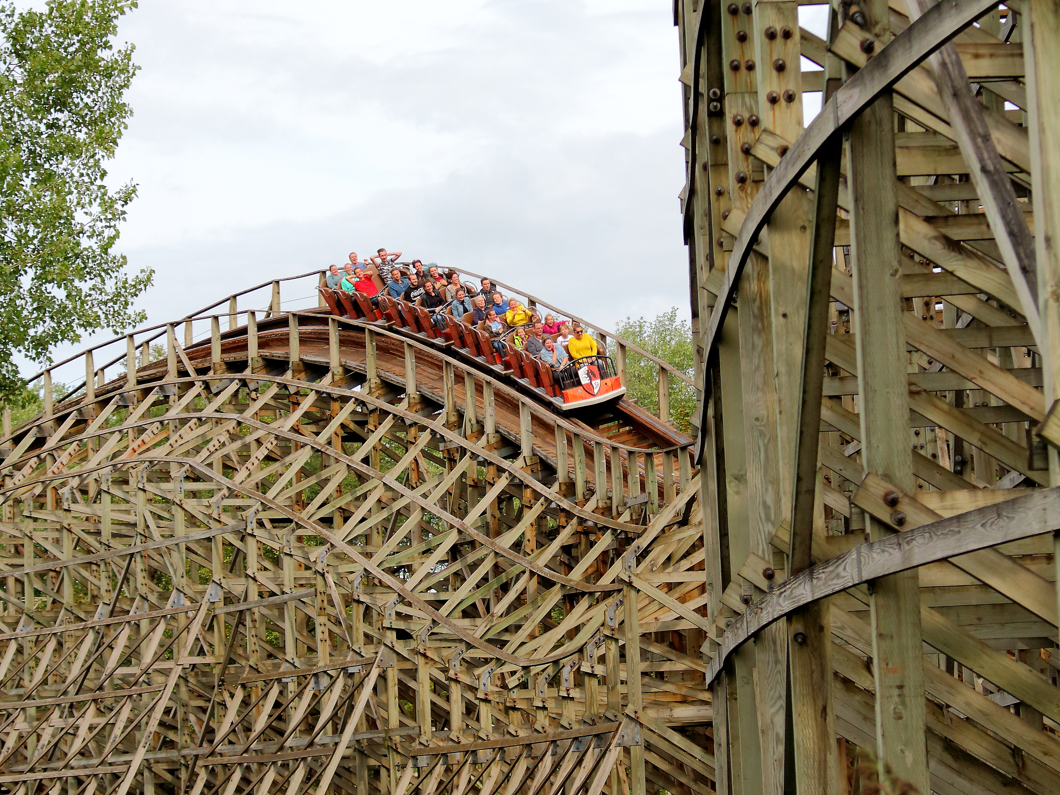 Vekoma, wie sollte es auch anders sein). Wobei ich gestehen muss, dass mir Loup-Garou mit seinem Double Down und etwas mehr Abwechslung noch etwas besser gefällt. Den Thundercoaster nehme ich ohne seine richtigen Züge aus dem Vergleich heraus. Trotzdem tut es weh, dass ich dieses tolle Stück Holz nicht mehr fahren kann und habe ihn Anfang August schmerzlich vermisst, v.a. da das Nachfolgermodell nicht fahrbereit war. Und egal wie toll Untamed in der ersten Hälfte der Fahrt auch sein mag, für mich geht einfach nichts über das Rattern eines Holzachterbahnzuges auf hölzernen Schienen.
