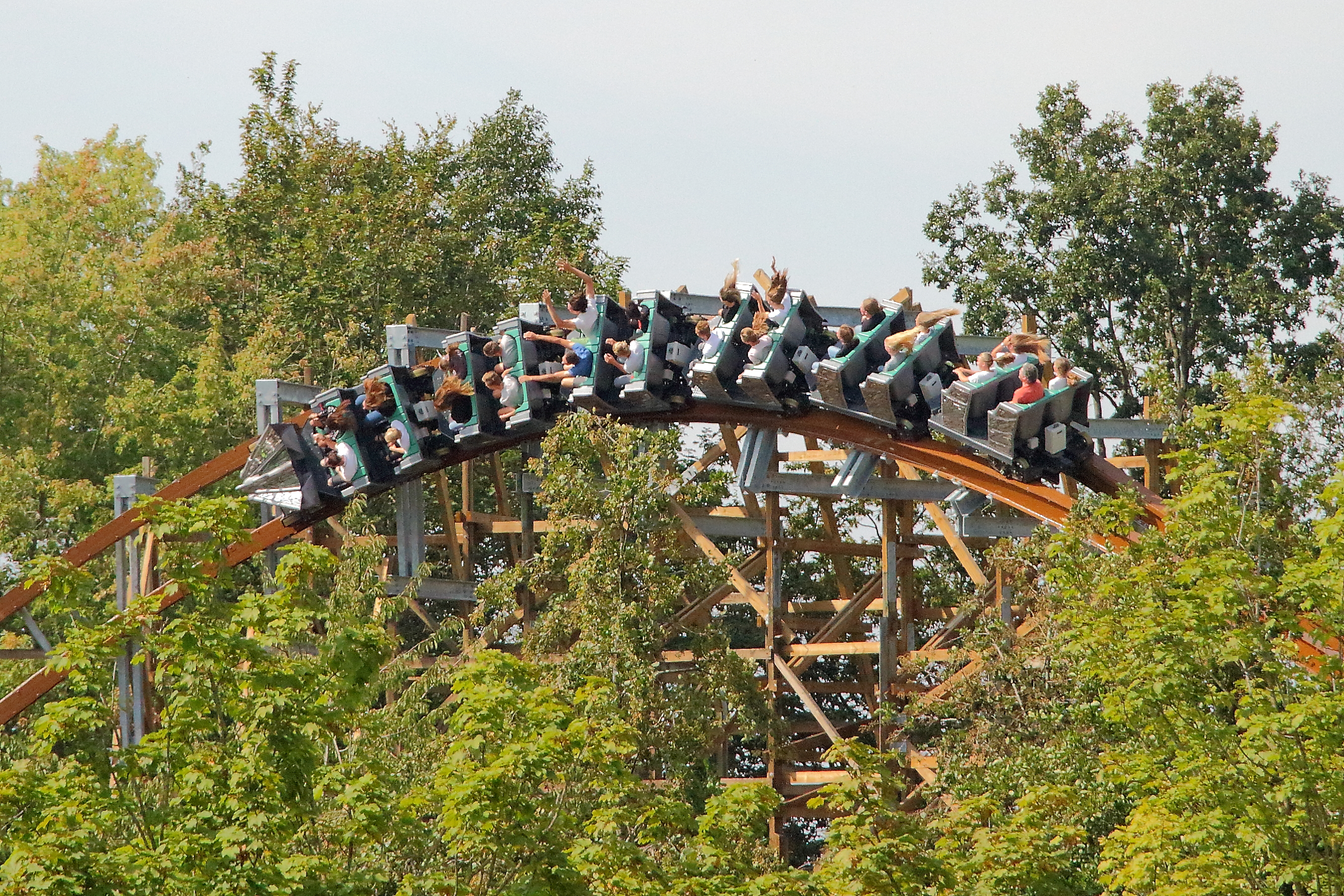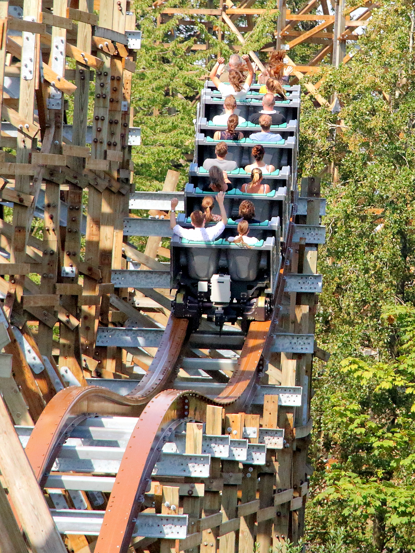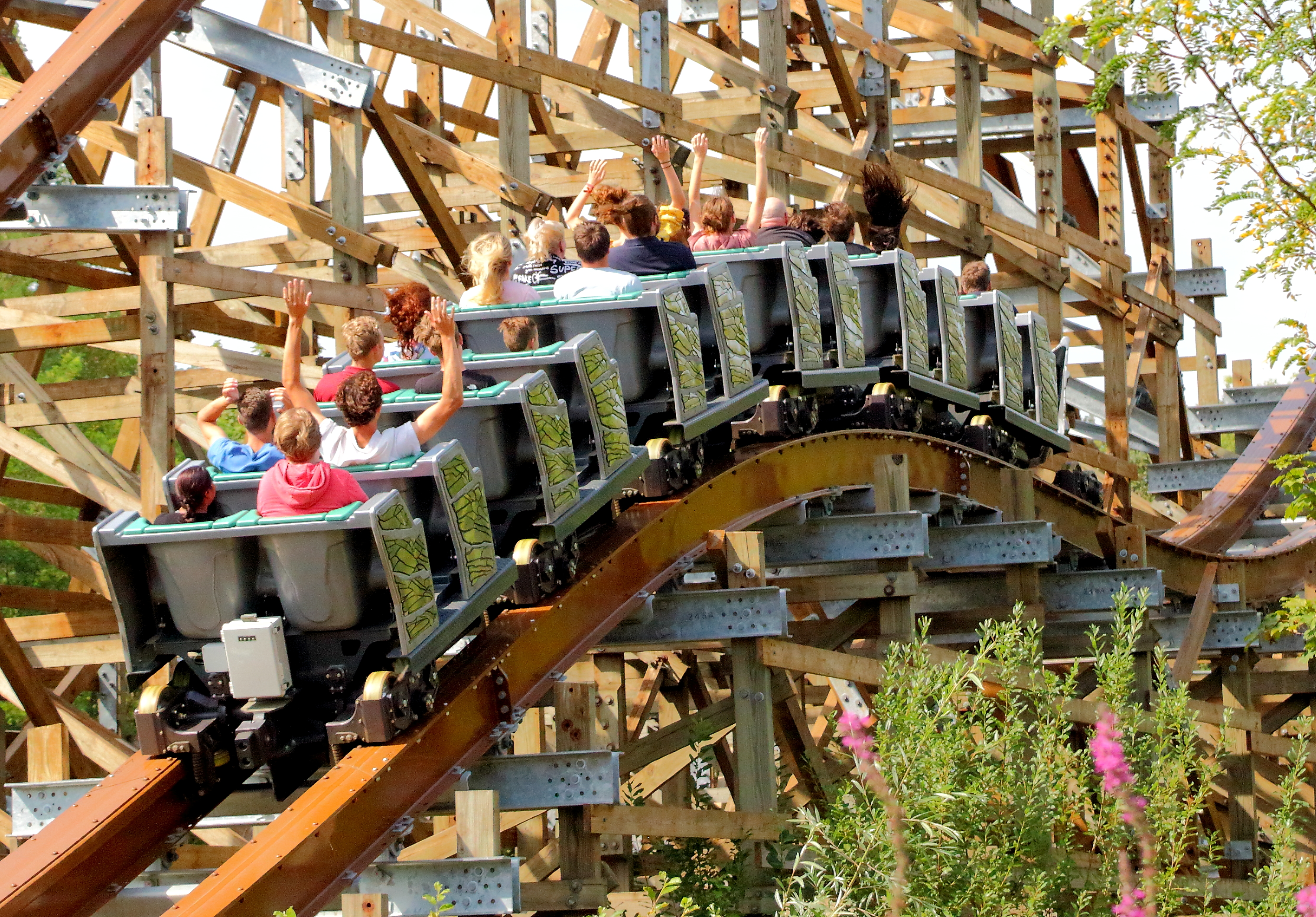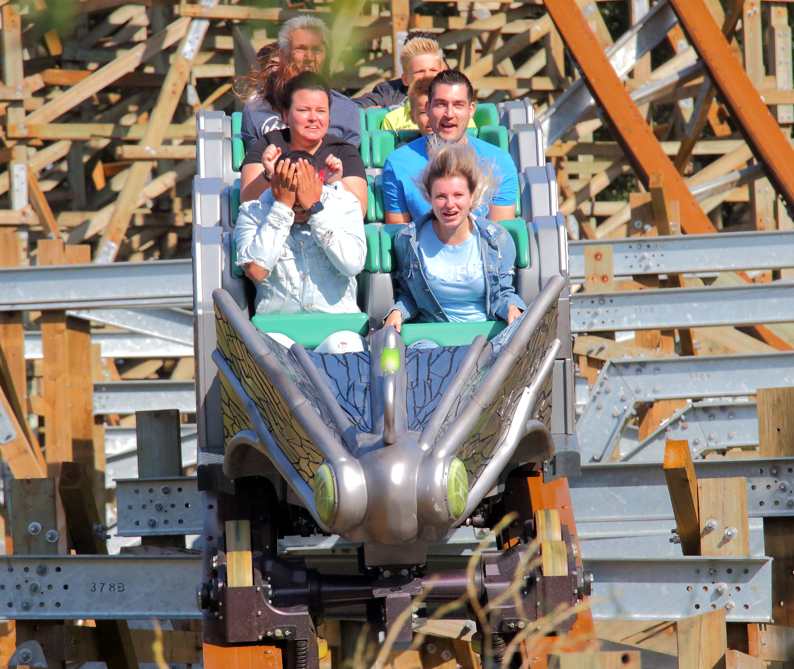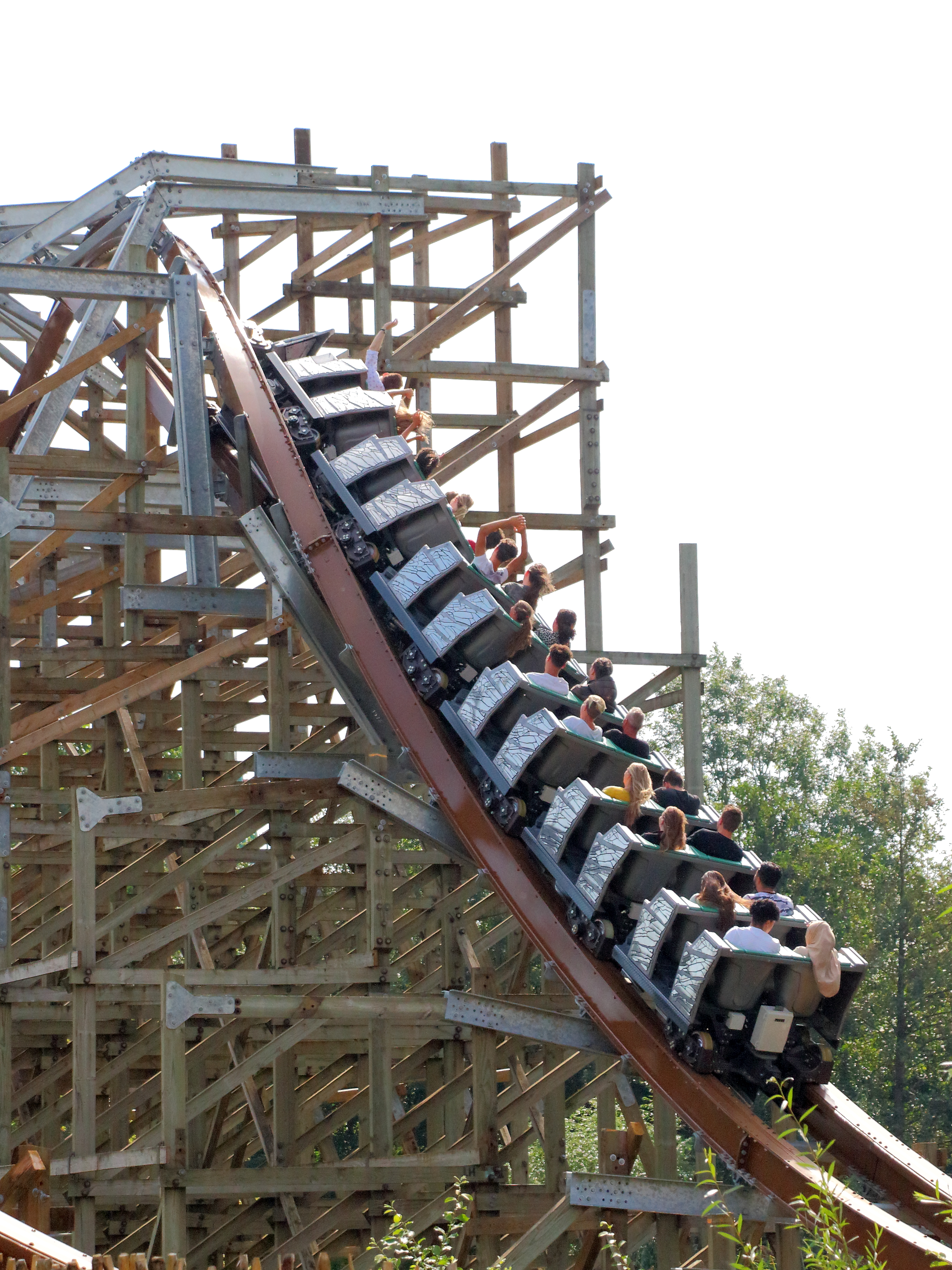 Vekoma, wie sollte es auch anders sein). Wobei ich gestehen muss, dass mir Loup-Garou mit seinem Double Down und etwas mehr Abwechslung noch etwas besser gefällt. Den Thundercoaster nehme ich ohne seine richtigen Züge aus dem Vergleich heraus. Trotzdem tut es weh, dass ich dieses tolle Stück Holz nicht mehr fahren kann und habe ihn Anfang August schmerzlich vermisst, v.a. da das Nachfolgermodell nicht fahrbereit war. Und egal wie toll Untamed in der ersten Hälfte der Fahrt auch sein mag, für mich geht einfach nichts über das Rattern eines Holzachterbahnzuges auf hölzernen Schienen.