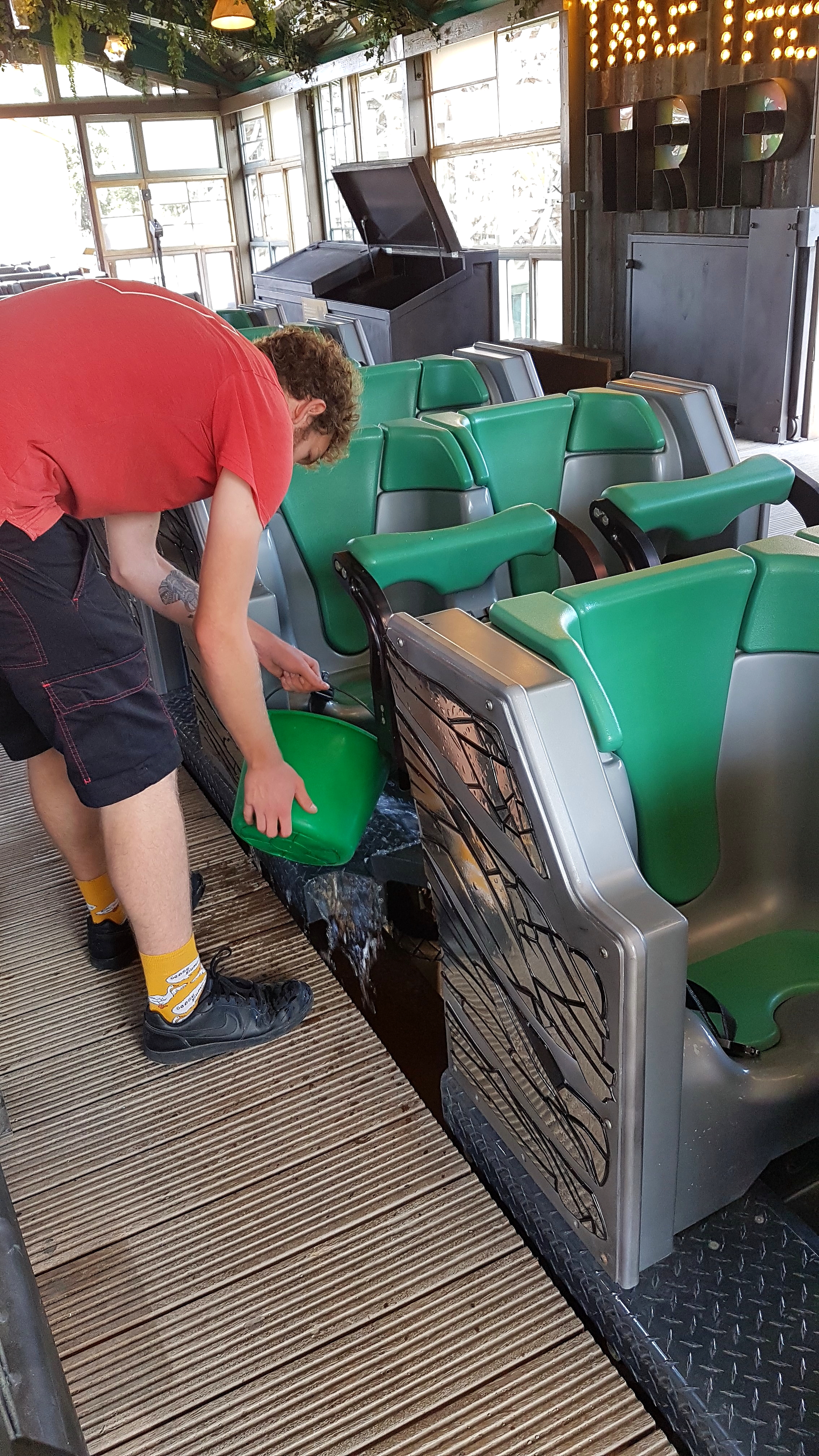 ... dafür noch mit den passenden Vekoma Zügen. Und wie sollte es anders sein: Auch hier wurde zuvor der Mageninhalt in den Zug entleert.