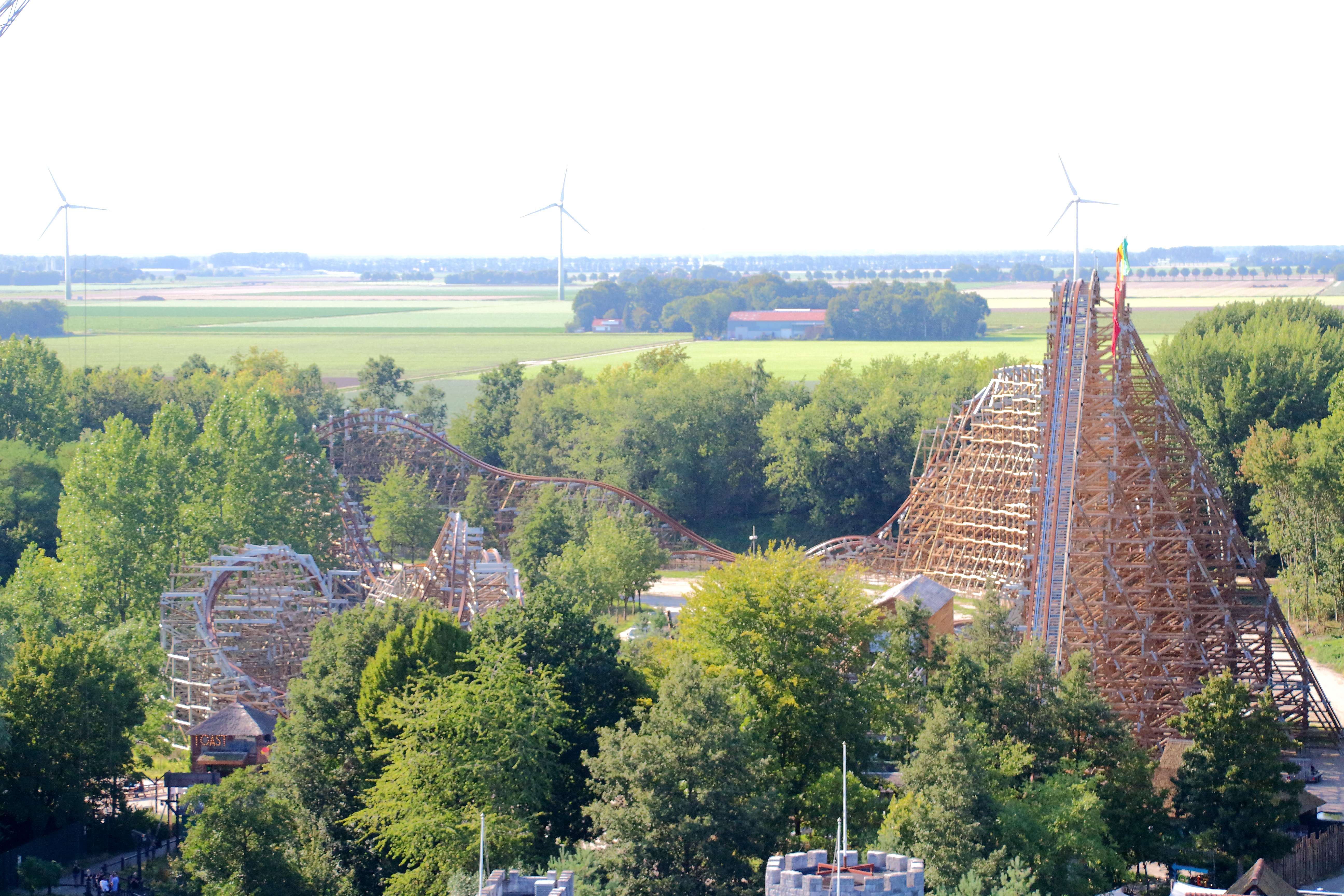 Airtime gespickt und out-of-control Feeling durch die ratternde Fahrweise - für mich gibt es nichts Besseres. So tut es mir immer in der Seele weh, wenn ein Woodie abgerissen wird. Ein besonders komisches Gefühl ist es für mich aber, wenn er zu einem Hybrid umgebaut wird. Meine erste Bahn, die dieses Schicksal erwischt hat, war der weiße Riese White Cyclone. Ein Jahr später erreichte mich dann die Nachricht, dass dieser Liste leider eine zweite Bahn hinzugefügt werden muss. Und da ich vorher noch nicht in Biddinghuizen war, ging es Ende letzten Jahres noch mit äußerster Priorität zu meinem Erstbesuch ...