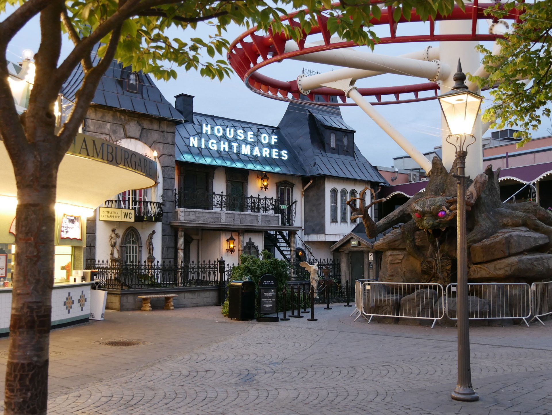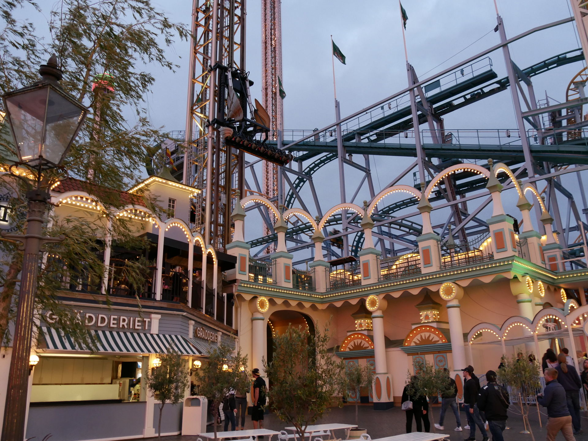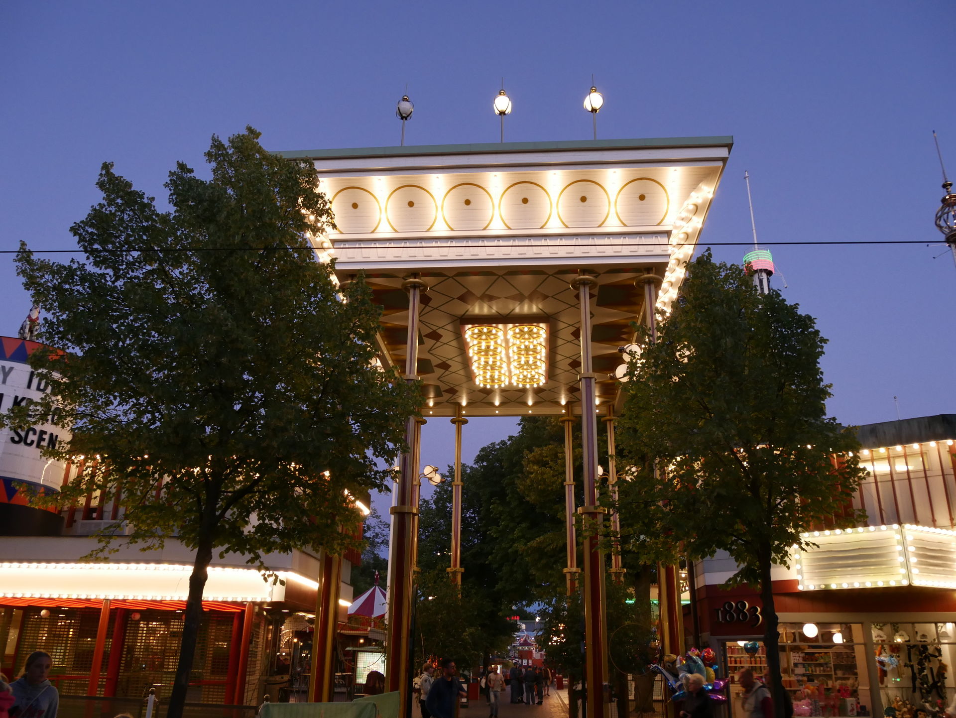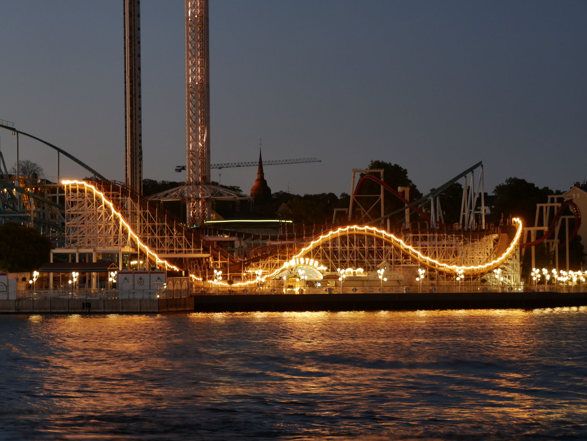 Je dunkler es wurde, umso besser kam die stimmige Beleuchtung des Promenadenbereichs und der Fahrgeschäfte zur Geltung. Es war ein bisschen ärgerlich, nicht direkt in den Park gehen zu können, schließlich war 'Grönan' erst für Tag 3 geplant.