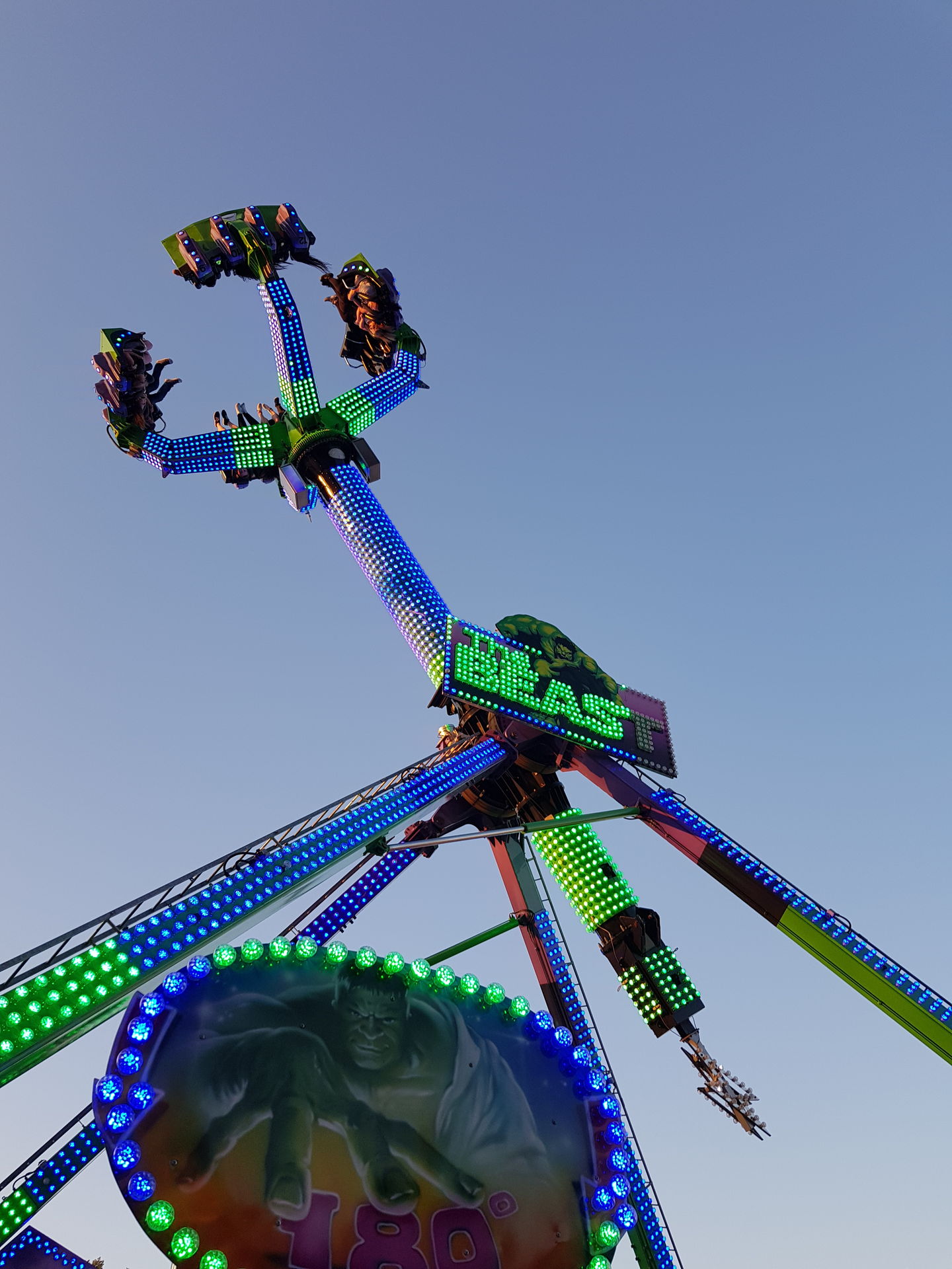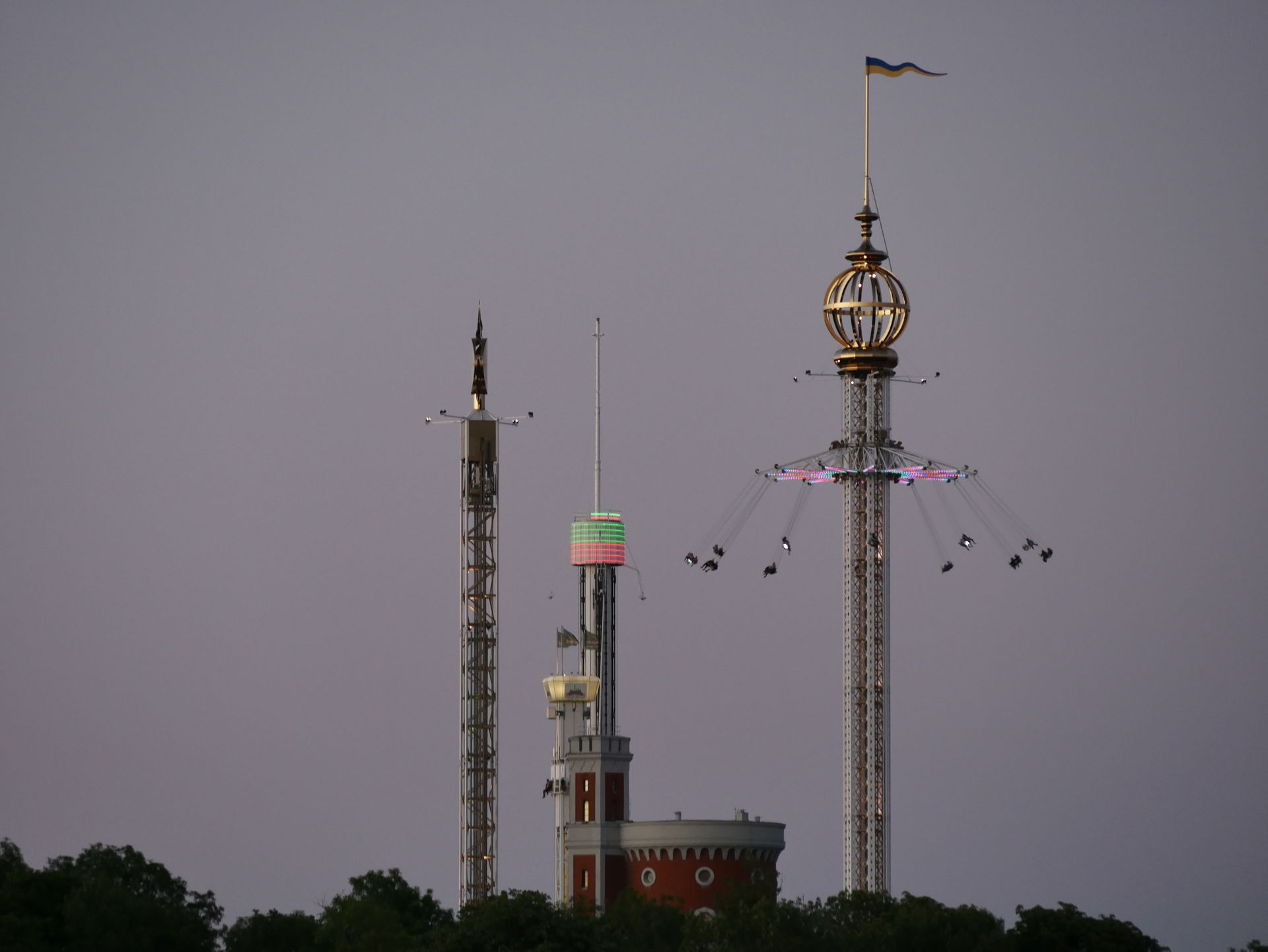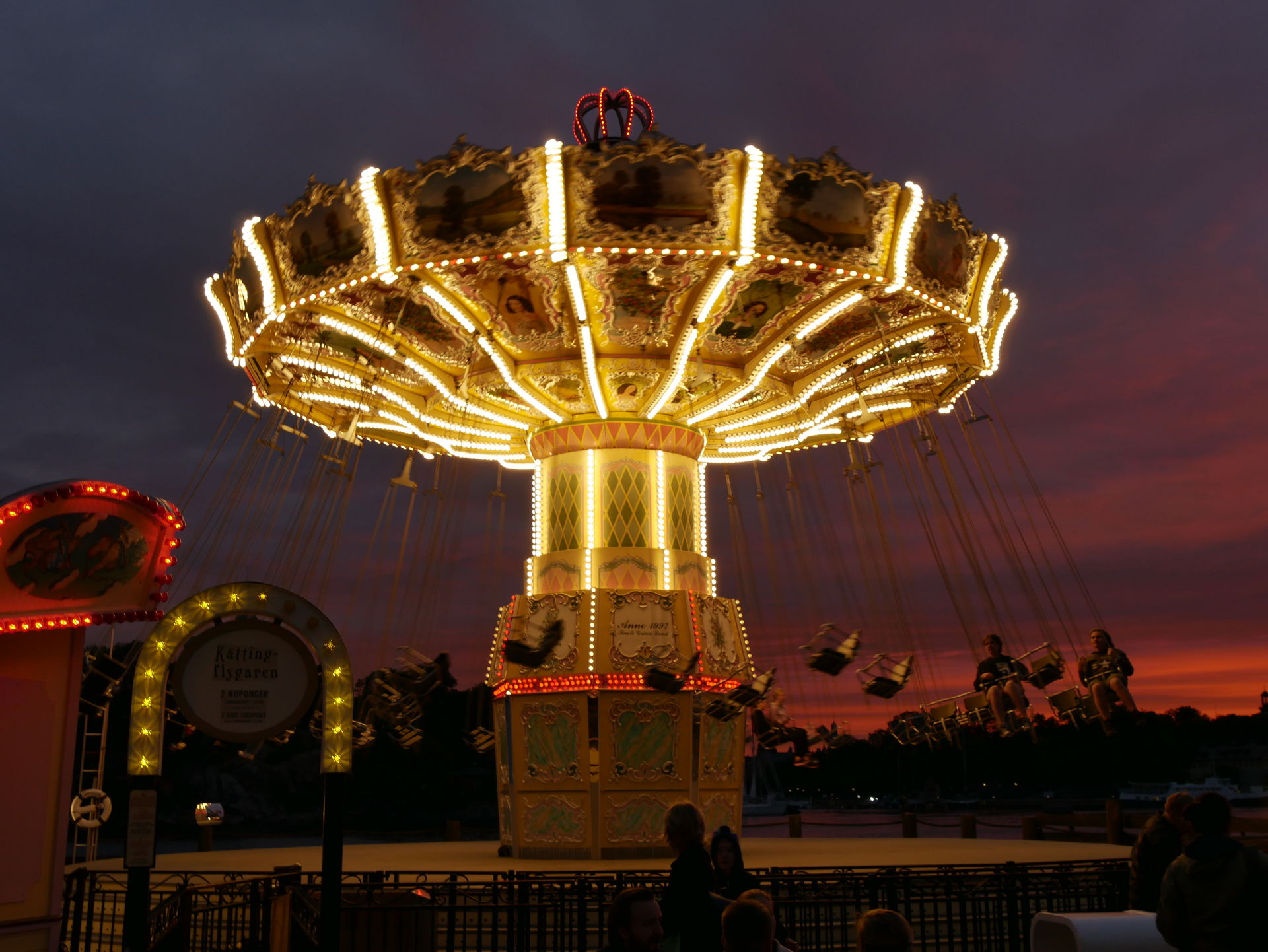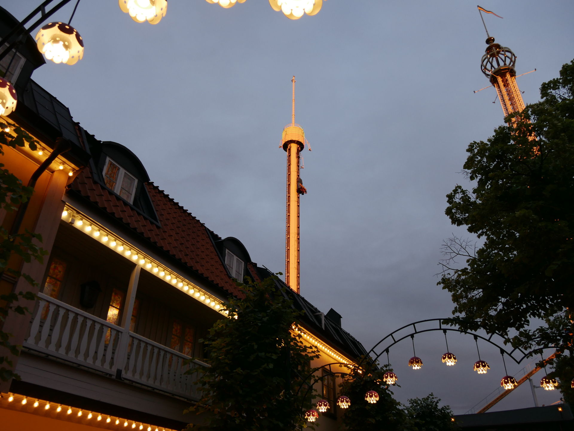 Je dunkler es wurde, umso besser kam die stimmige Beleuchtung des Promenadenbereichs und der Fahrgeschäfte zur Geltung. Es war ein bisschen ärgerlich, nicht direkt in den Park gehen zu können, schließlich war 'Grönan' erst für Tag 3 geplant.