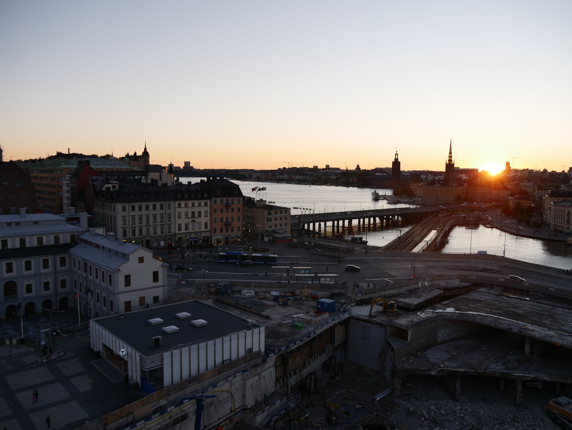 Am ersten Abend in Stockholm machten wir uns noch in Richtung Altstadt auf, um die Umgebung des Parks schonmal etwas kennen zu lernen. In der Nähe des Königpalastes nord-östlich der Altstadt 'Gamla Stan' steht eine Art Aussichtsturm mit Bar auf dem Dach eines angrenzenden Gebäudes.