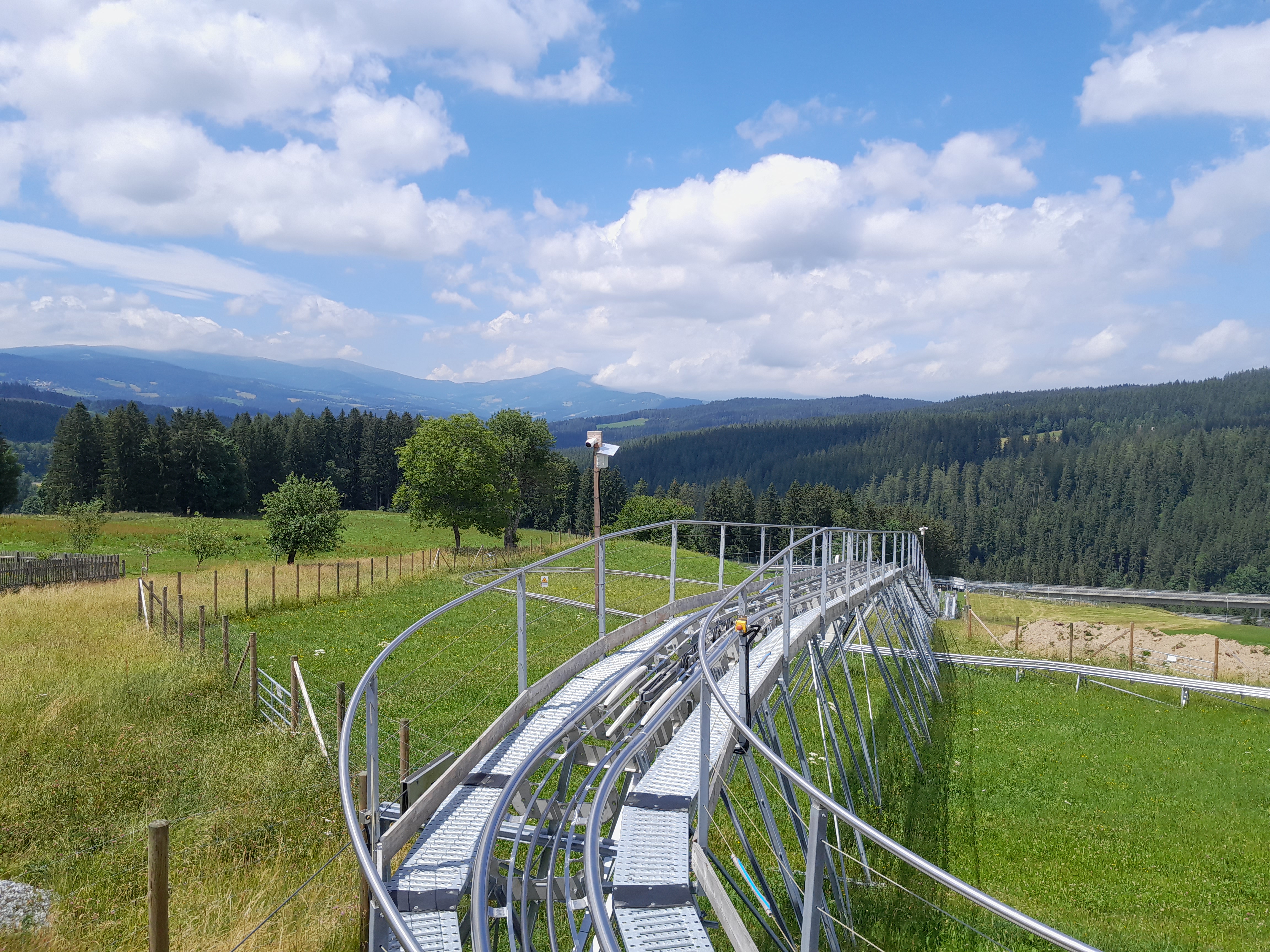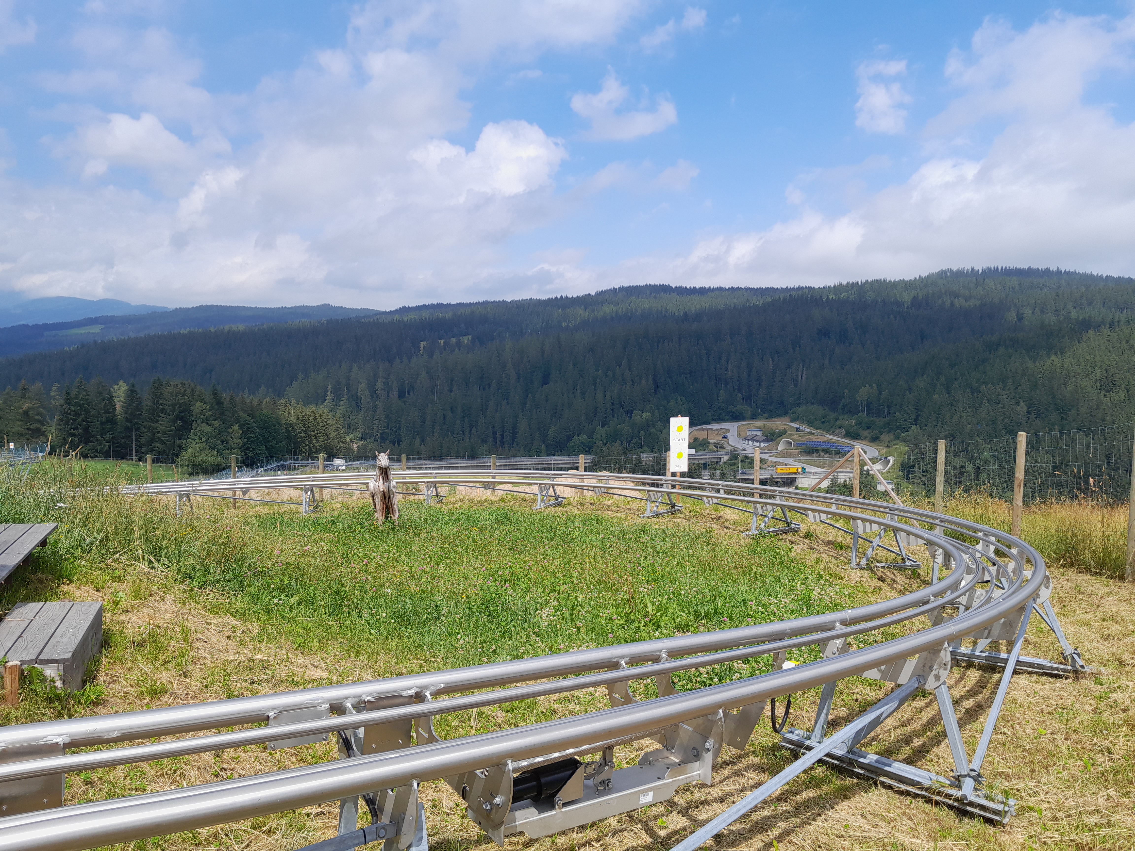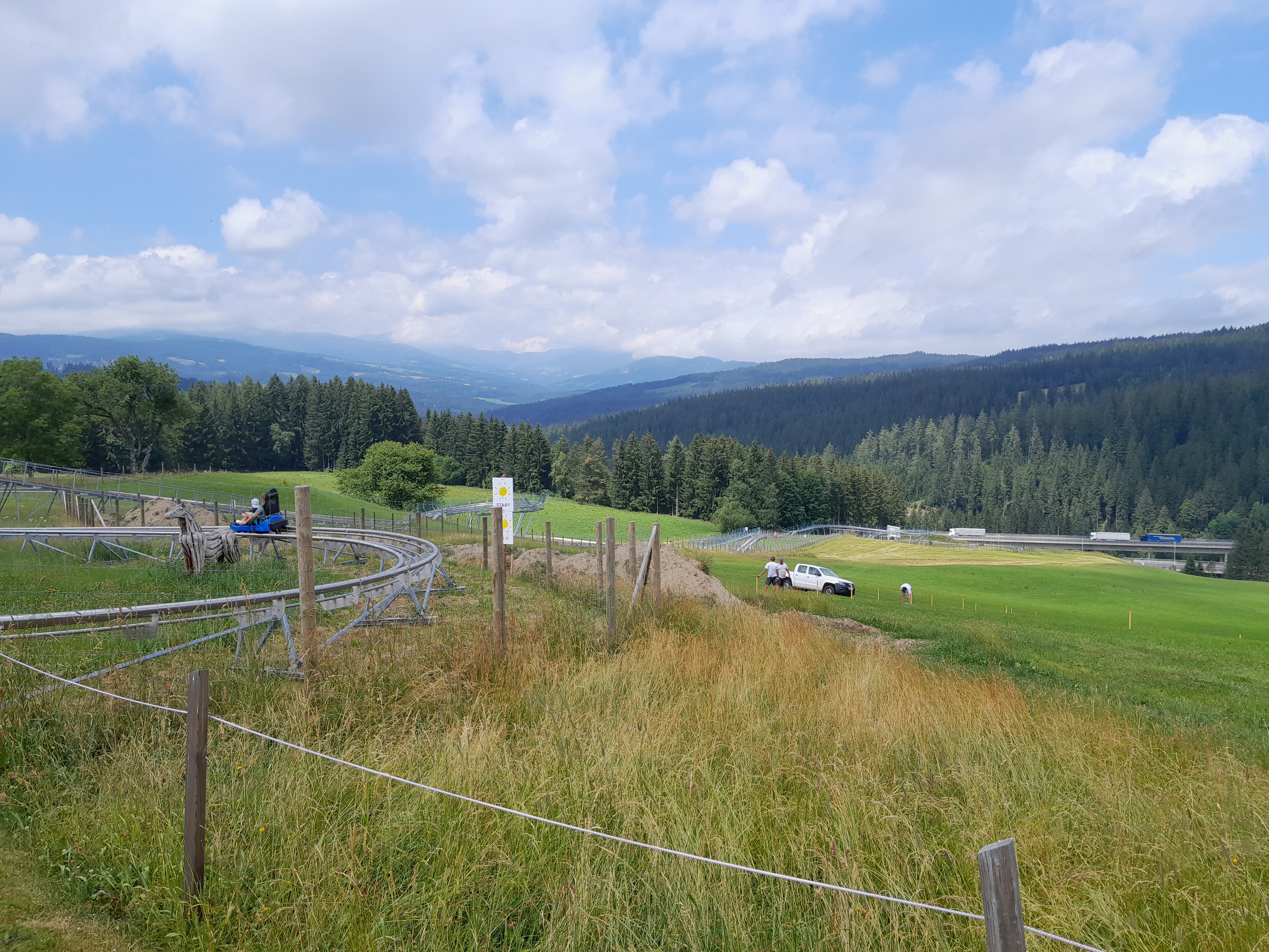 EDELSCHROTT. Die Rahmenbedingungen für den Start der neuen Sommerrodelbahn der Diesel-Brüder in Modriach, Gemeinde Edelschrott, waren coronabedingt nicht einfach. Daher ist es umso bemerkenswerter, dass die "Steirarodl" in den ersten sieben Wochen großartig angenommen wurde. Vor allem bei Schönwetter und an den Wochenenden herrschte ein richtiges G'riß um die neue Attraktion, alle 15 Sekunden startete ein Teilnehmer in Richtung Tal, um dann wieder bequem den Berg hinaufgezogen zu werden.