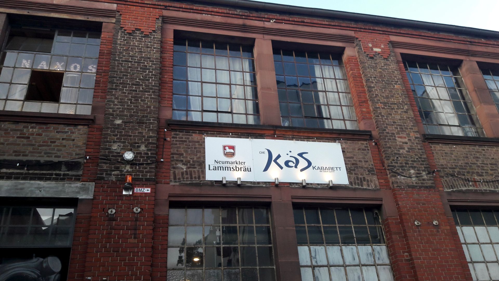 Wir saßen dann noch ein wenig so Cognac... Rum! Wir saßen so rum, ehe wir uns fertigmachten und per Straßenbahn zur Waldschmidtstraße fuhren. Dort im Ostend, nahe des Zoos, wurde 1906/07 die Naxoshalle errichtet, in der dann Schleifmaschinen hergestellt wurden. Die Produktion wurde Ende der 1980er-Jahre eingestellt, einige Nebenhallen inzwischen längst zugunsten von Neubauten abgerissen. 1992 wurde die Haupthalle aber unter Denkmalschutz gestellt, woraufhin sie sich zu einem wichtigen Bestandteil der Frankfurter Kunst- und Kulturszene entwickelte. Unter anderem durch die Kabarett Änderungsschneiderei, oder kurz "die KÄS". Ein hübscher, kleiner Saal. Einige Plätze sogar mit Tischen, dafür sitzen dann halt auch manche mit dem Rücken zur Bühne. Ausgebucht war der Saal nicht, wir zogen uns aber dennoch in die vorletzte Reihe zurück, dort saßen wir bequem in gut gepolsterten Kino-Sesseln. Ein Großteil des Programms war natürlich bekannt, so live auf der Bühne war es aber eben doch nochmal etwas anderes. Und HaJo Heist machte seine Sache als Erhardt-Double wirklich gut - auch wenn ich das Original ja leider nur aus dem Fernsehen kenne. Und mit Florian Malicke saß sogar ein Enkel des großen Wortverdrehers im Publikum. Mehr Erhardt geht wohl kaum, solange man keine Zeitmaschine sein Eigen nennt.