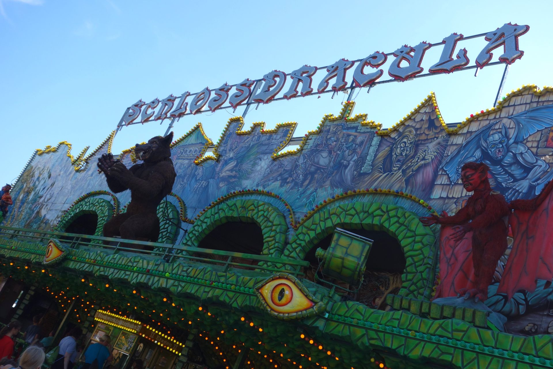 Die längste Warteschlange auf dem Platz hatte sich bei der Geisterbahn Schloss Dracula gebildet. Ansonsten war nämlich quasi nix los.