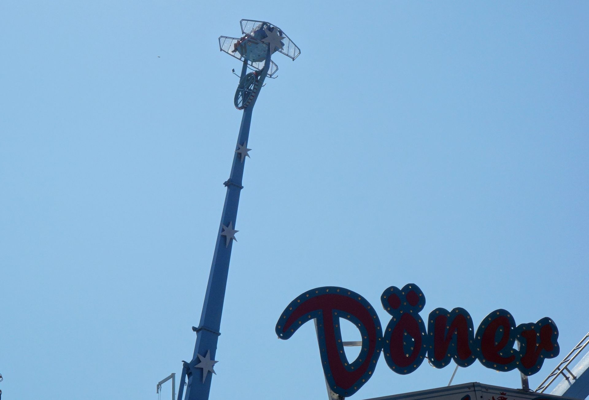 Vorbei am dritten Autoscooter (wiederum für Große) steuerten wir auf einen nicht ganz originalgetreuen Eiffelturm zu.