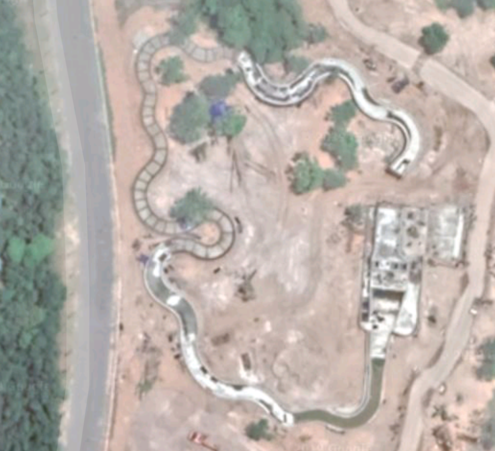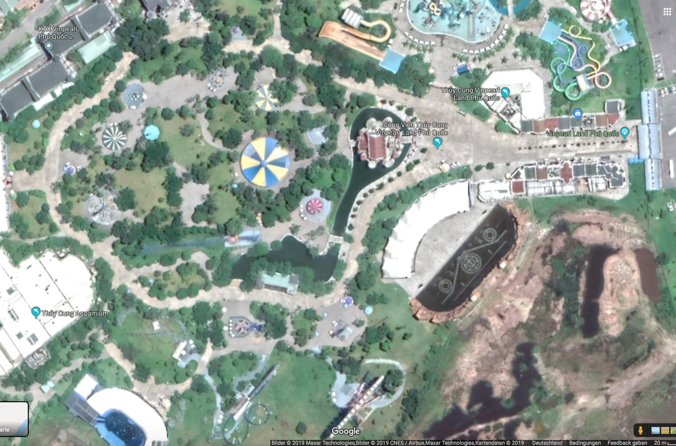 Auf dem Satelliten-Foto erkennt man den neuen (zweiten?) Parkteil, in dem scheinbar ein Spillwater, ein Rapid, ein Wellenbad und der